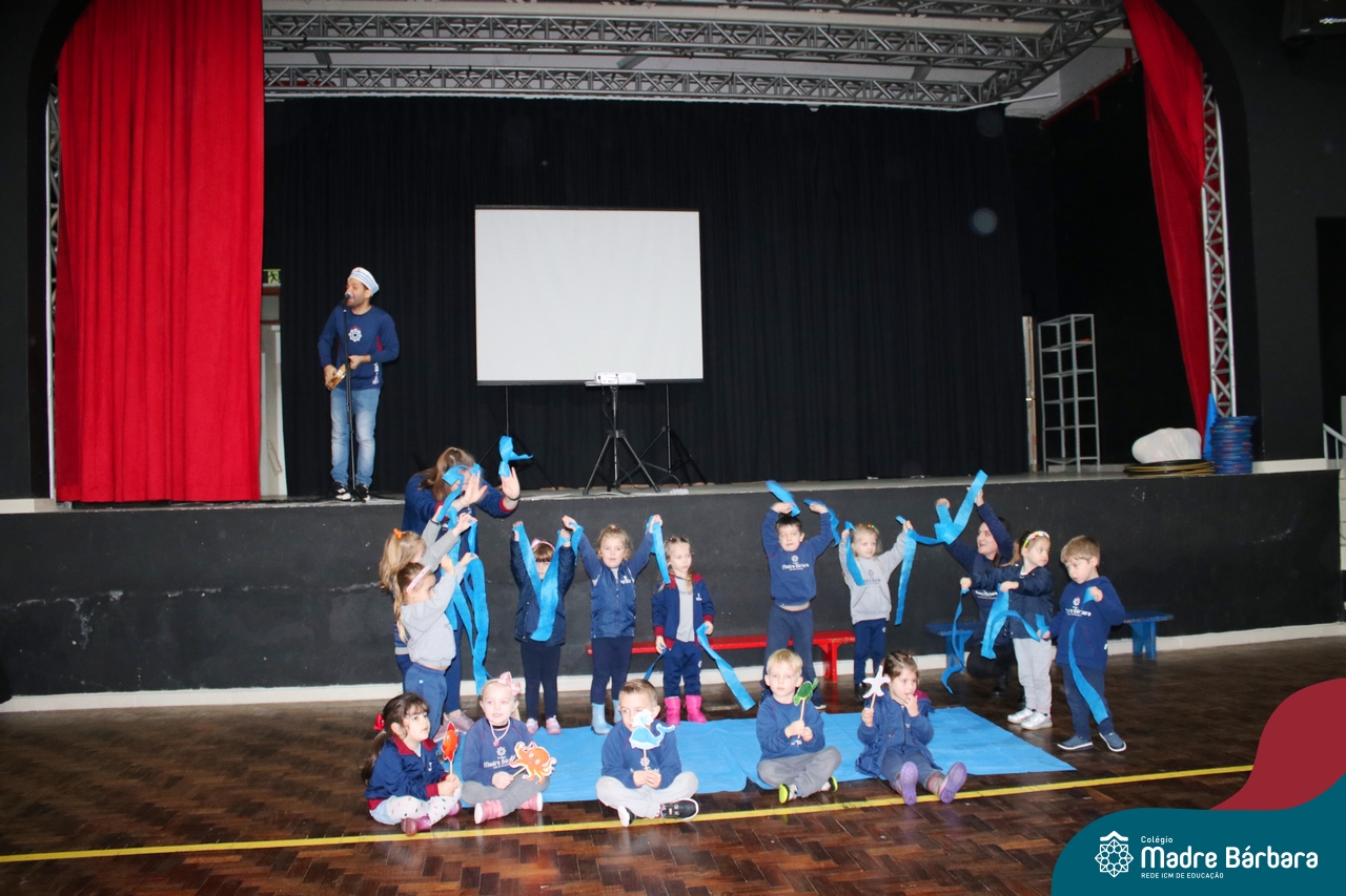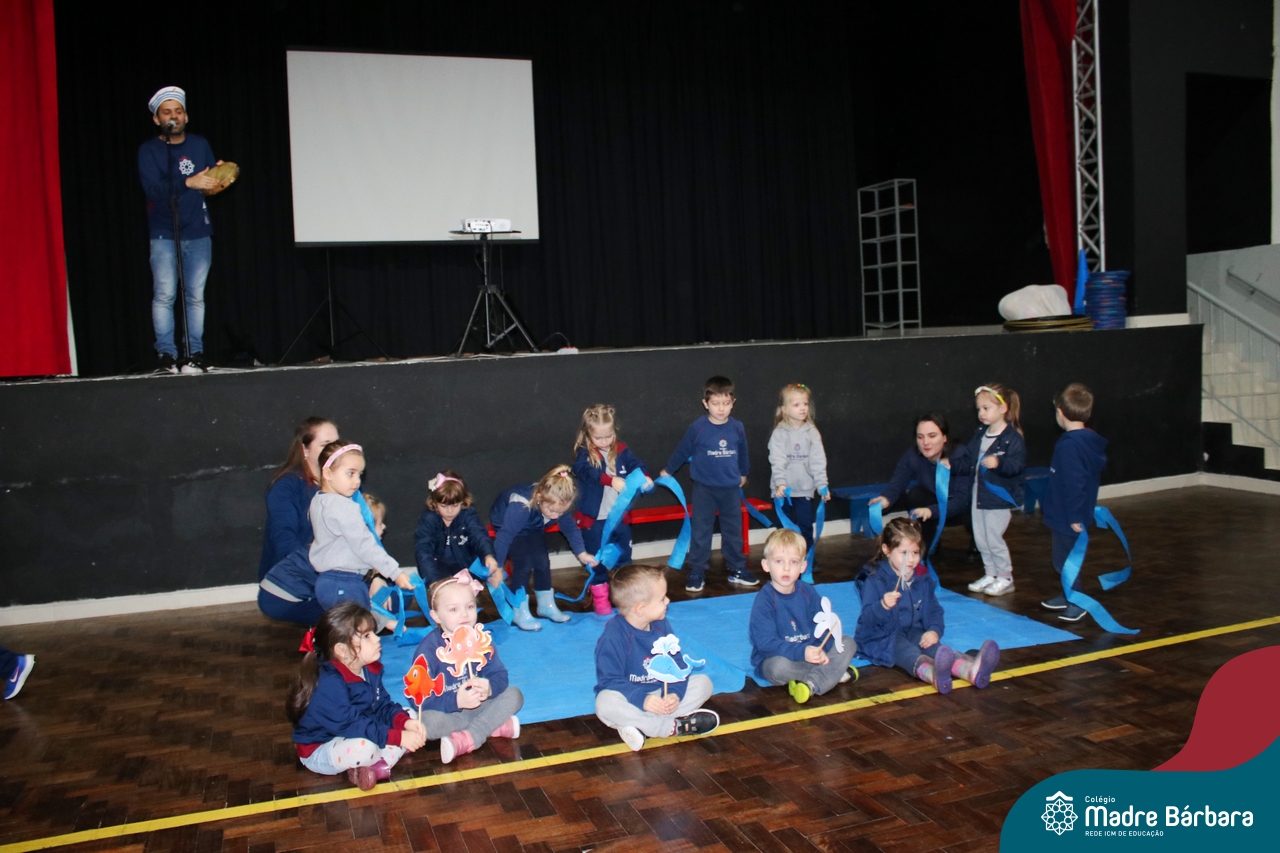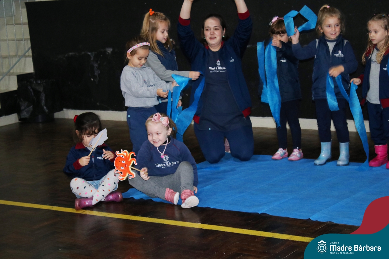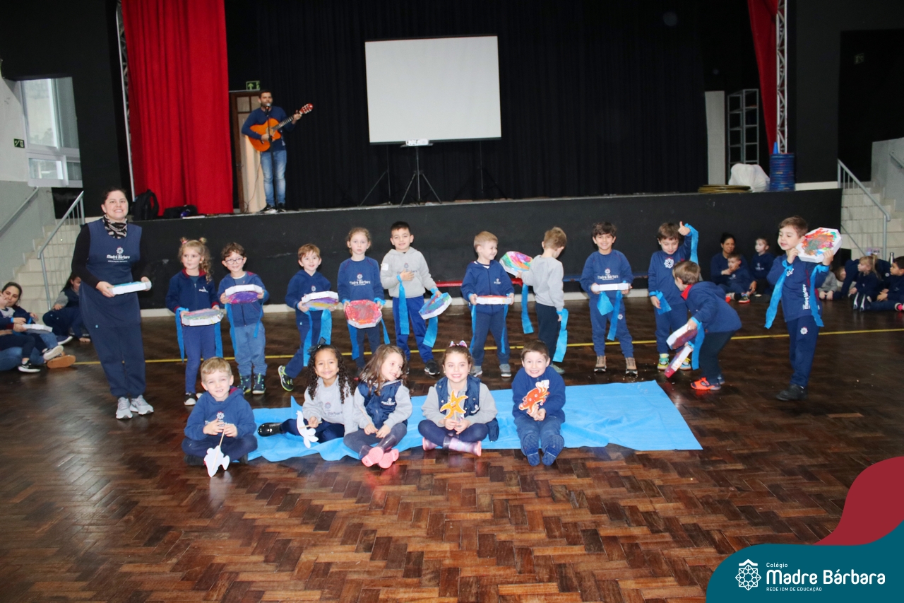 Muita imaginação e um imenso mar de fantasia marcaram a semana da Educação Infantil. As crianças mergulharam na aventura para descobrirem e compartilharem: “O que temos nesse mar?” …Além de peixes, baleia e estrelas do mar, foram encontrados nessa aventura: submarinos, barcos, marinheiro e muita música e diversão. A atividade ocorreu em conjunto com as professoras e o professor de música, Gilson Chacon. Através de um “faz de conta que estavam no mar”, puderam cantar e interpretar as músicas: “A maré está cheia”, “Marinheiro” e “Yellow submarine” . A situação ocorreu nos turnos da manhã e da tarde e os protagonistas foram os pequenos dos Níveis 4B (manhã), 4D (tarde), 5A, 5B e 5D. A professora de Inglês Marcela Fischer, preparou os alunos do 5A para cantarem a música em inglês. A maioria das turmas da Educação Infantil esteve prestigiando, brincando e se divertindo nessa aventura de música e alegria!