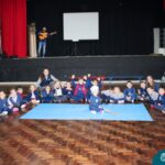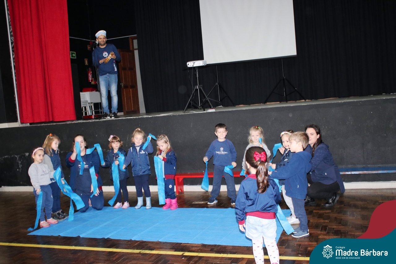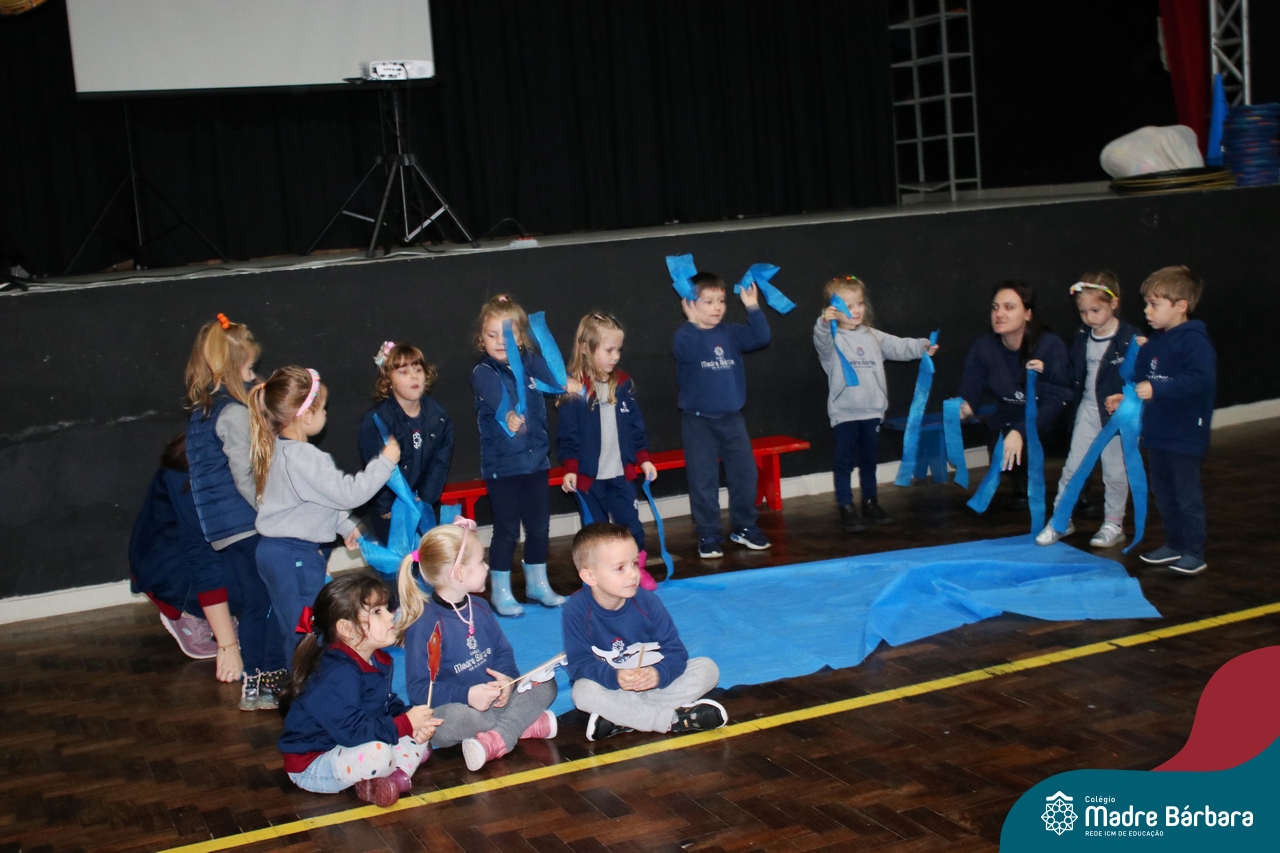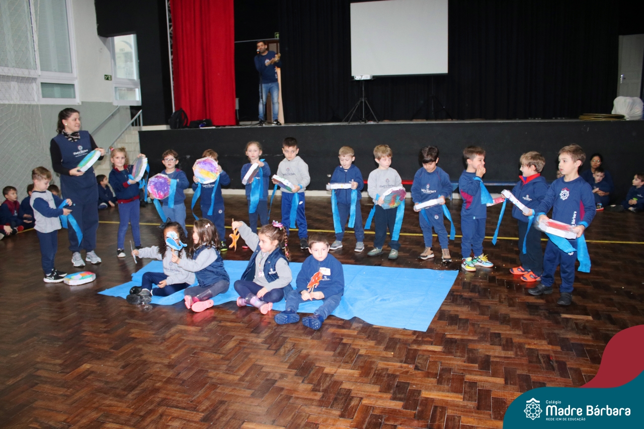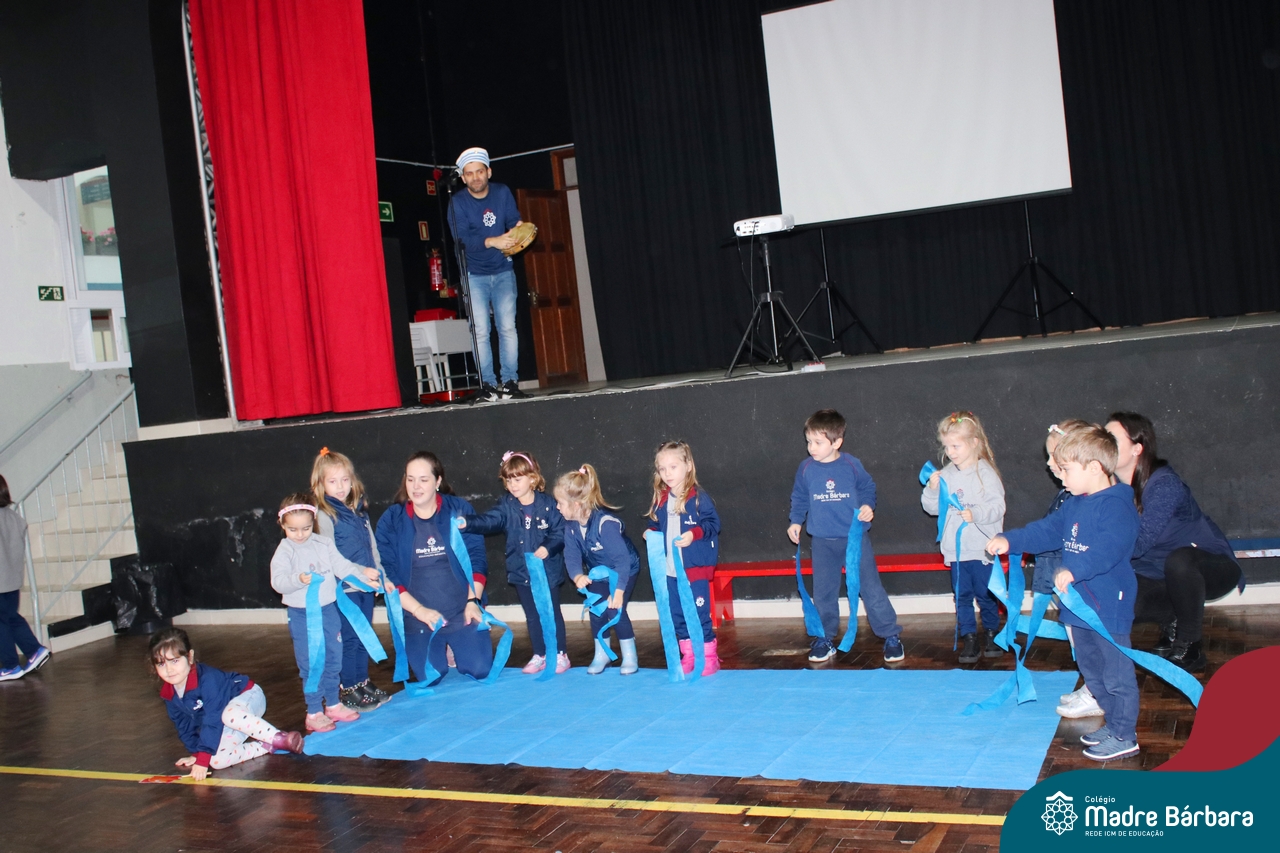 Muita imaginação e um imenso mar de fantasia marcaram a semana da Educação Infantil. As crianças mergulharam na aventura para descobrirem e compartilharem: “O que temos nesse mar?” …Além de peixes, baleia e estrelas do mar, foram encontrados nessa aventura: submarinos, barcos, marinheiro e muita música e diversão. A atividade ocorreu em conjunto com as professoras e o professor de música, Gilson Chacon. Através de um “faz de conta que estavam no mar”, puderam cantar e interpretar as músicas: “A maré está cheia”, “Marinheiro” e “Yellow submarine” . A situação ocorreu nos turnos da manhã e da tarde e os protagonistas foram os pequenos dos Níveis 4B (manhã), 4D (tarde), 5A, 5B e 5D. A professora de Inglês Marcela Fischer, preparou os alunos do 5A para cantarem a música em inglês. A maioria das turmas da Educação Infantil esteve prestigiando, brincando e se divertindo nessa aventura de música e alegria!