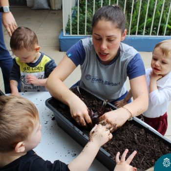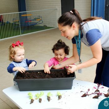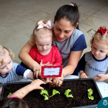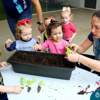 Dentre os objetivos pretendidos a partir do projeto “Oba, hoje tem salada!” que o Nível 1B está desenvolvendo juntamente com as professoras Luana Bianchini e Angélica Koch, podemos citar o estímulo para uma alimentação saudável para uma melhor qualidade de vida, conhecimento da origem do alimento e conscientização para os cuidados com a natureza, desenvolvendo atitudes que seguirão durante toda a vida das crianças. Sendo assim, hoje (18.10) as crianças plantaram mudas de alface, beterraba e sementes de cenoura. Desta forma, as crianças acompanharão o desenvolvimento e crescimento das mesmas, sendo responsáveis diretos pelo cuidado da horta criada hoje.