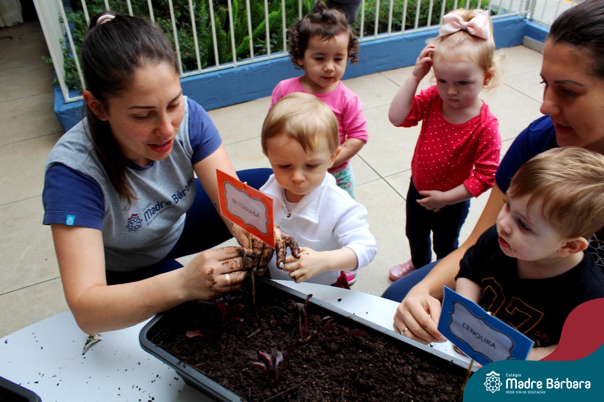 Dentre os objetivos pretendidos a partir do projeto “Oba, hoje tem salada!” que o Nível 1B está desenvolvendo juntamente com as professoras Luana Bianchini e Angélica Koch, podemos citar o estímulo para uma alimentação saudável para uma melhor qualidade de vida, conhecimento da origem do alimento e conscientização para os cuidados com a natureza, desenvolvendo atitudes que seguirão durante toda a vida das crianças. Sendo assim, hoje (18.10) as crianças plantaram mudas de alface, beterraba e sementes de cenoura. Desta forma, as crianças acompanharão o desenvolvimento e crescimento das mesmas, sendo responsáveis diretos pelo cuidado da horta criada hoje.