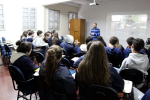 Nessa quarta-feira (11.07) o jornalista Marcus Staudt retornou ao Colégio Madre Bárbara para realizar a Oficina Audiovisual em preparação ao Festival de Cinema, aos alunos do 2º ano do Ensino Médio, que produzirão um curta-metragem, a partir de contos da Literatura Brasileira. Staudt conversou com os jovens sobre técnicas de produção audiovisual, dicas e possibilidades de construir um vídeo de qualidade, passando por questões de postura, enquadramentos, iluminação e composição de vídeo.
