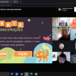 De forma interativa os alunos foram desafiados pela orientadora, a pensarem sobre suas emoções como: medo, alegria, raiva, tristeza, nojo e perceberem como reagem quando sentem tais emoções. Foi um momento muito importante, bacana e divertido. Uma forma das crianças terem um espaço para falarem sobre suas emoções e ouvirem o que os colegas sentem. As crianças participaram com entusiasmo do jogo das emoções e reações e realizaram o exercício da Estrela da respiração.