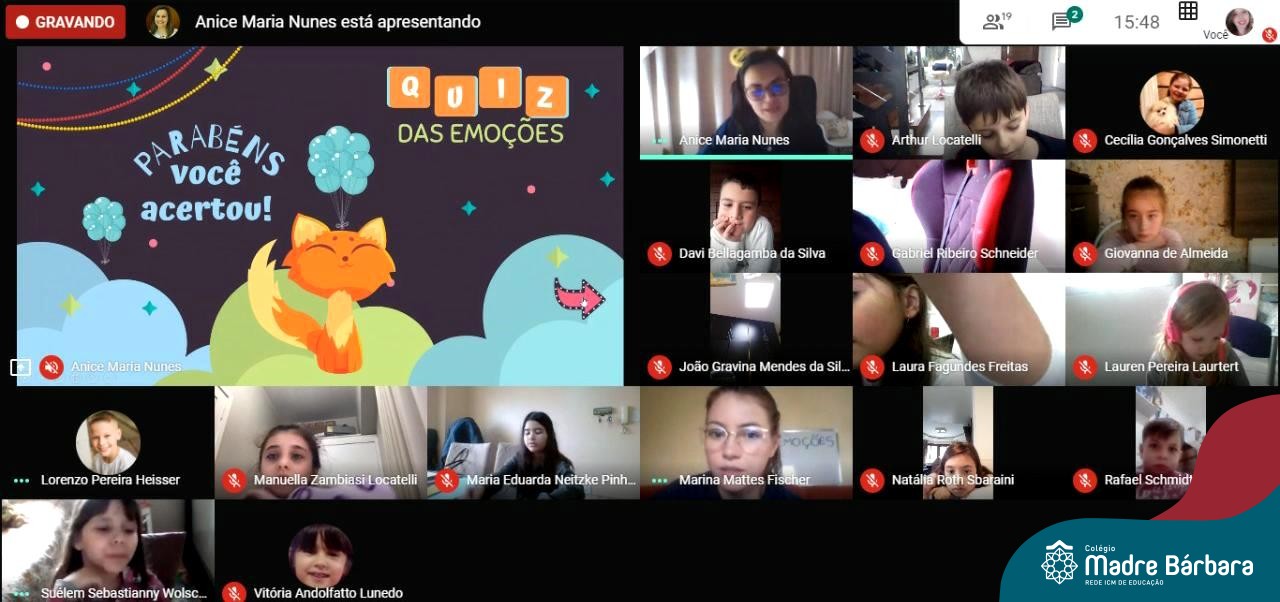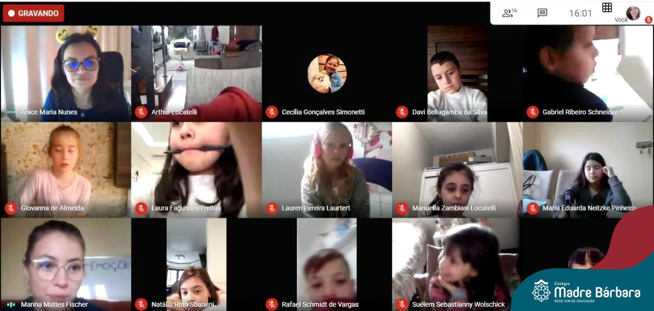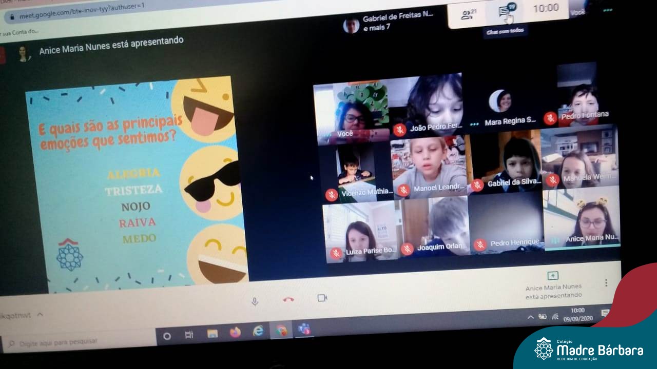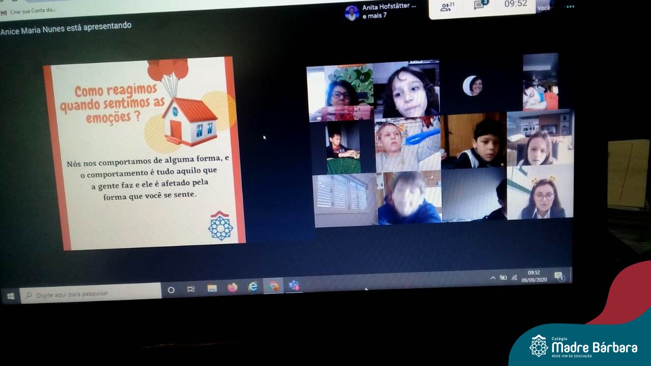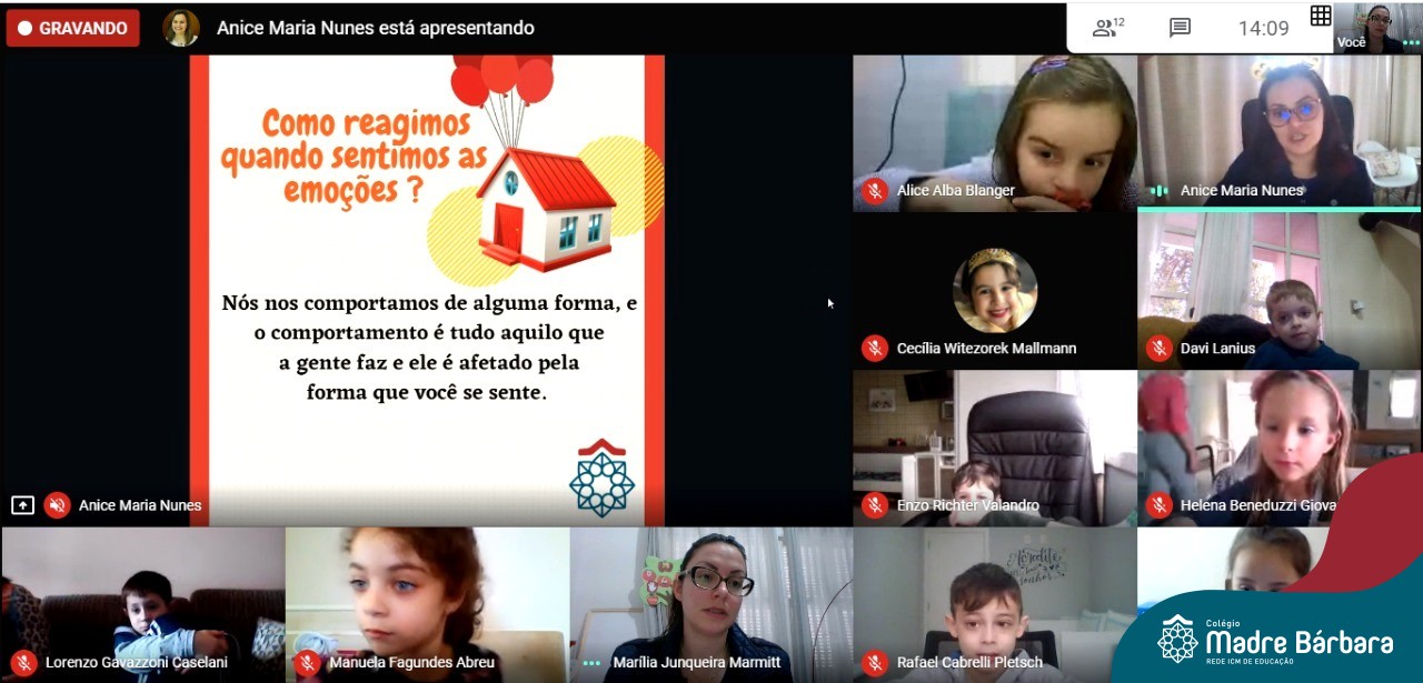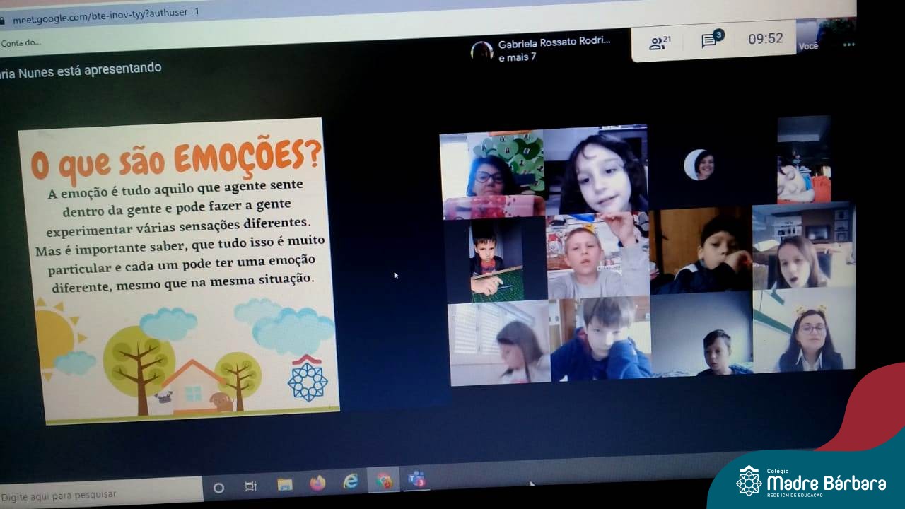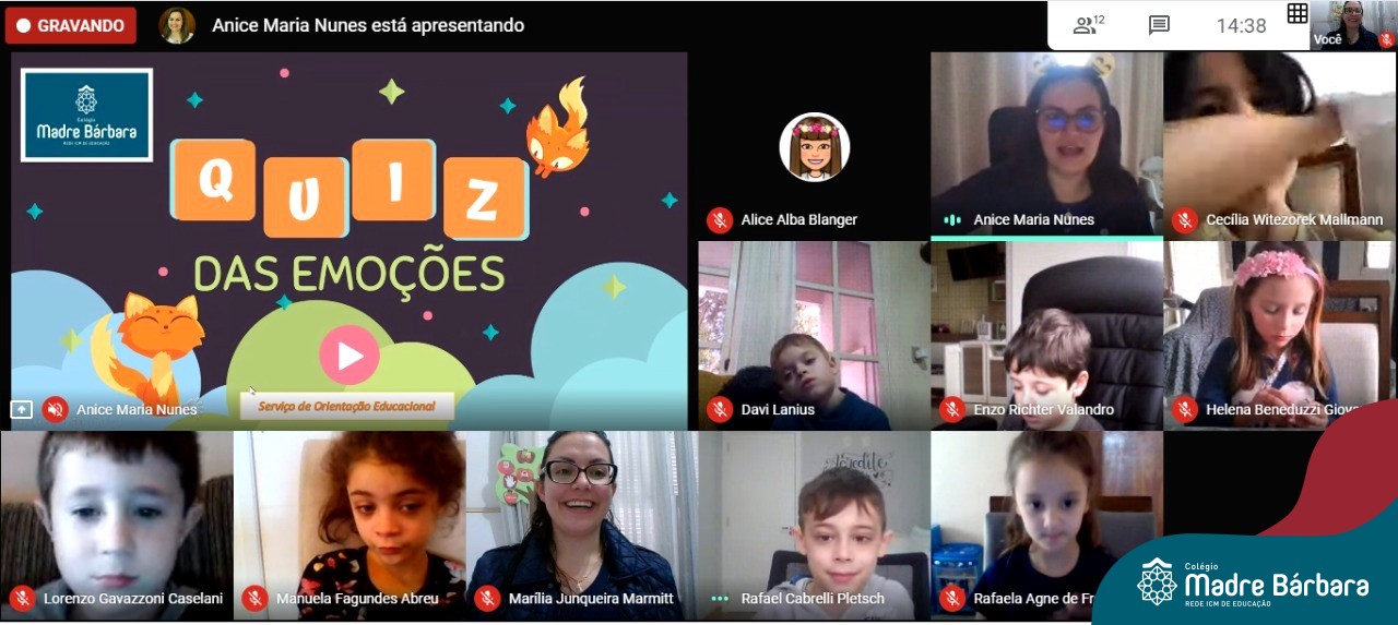 Foi com muita alegria, que os alunos dos Primeiros e Segundos anos do Colégio Madre Bárbara, juntamente com suas professoras, receberam esta semana, nas suas salas de aula Google Classroom, a visita da Orientadora Educacional da escola Anice Nunes, que desenvolveu a “oficina das emoções”.