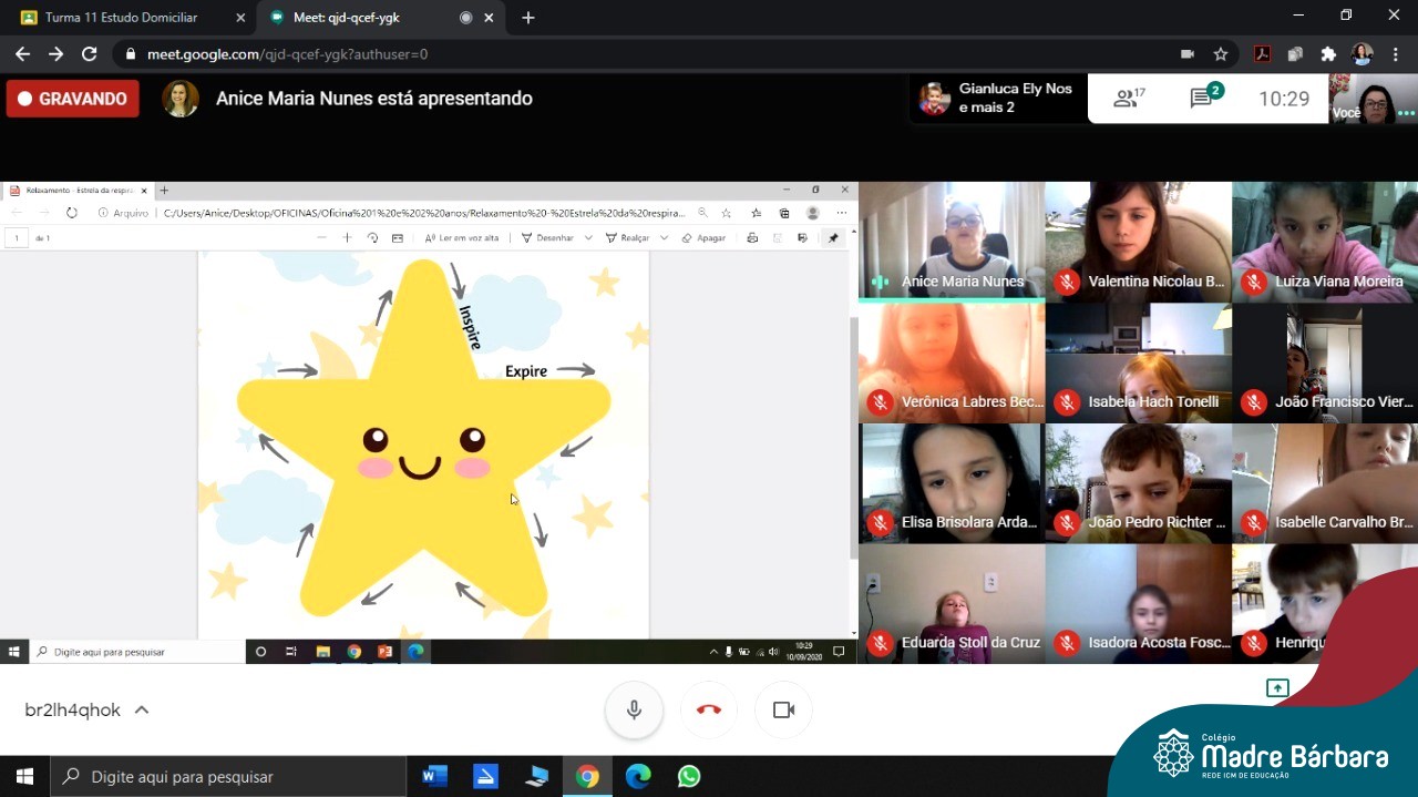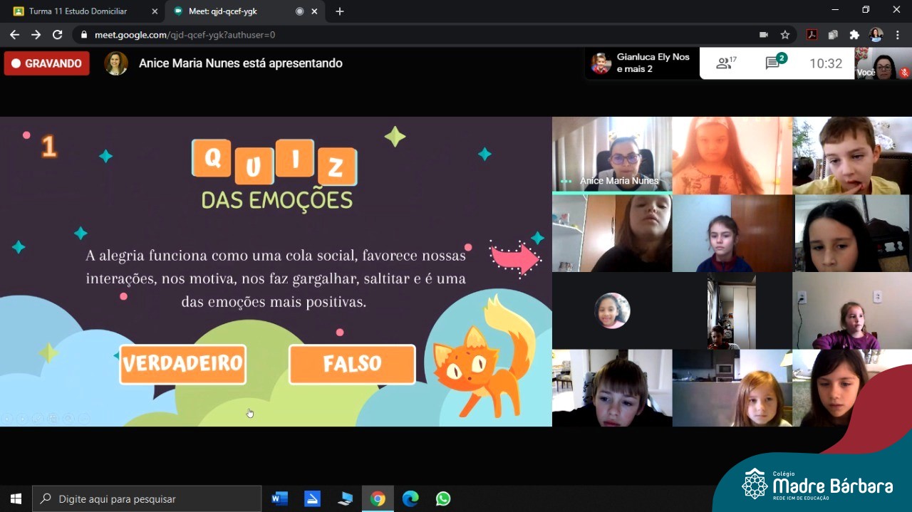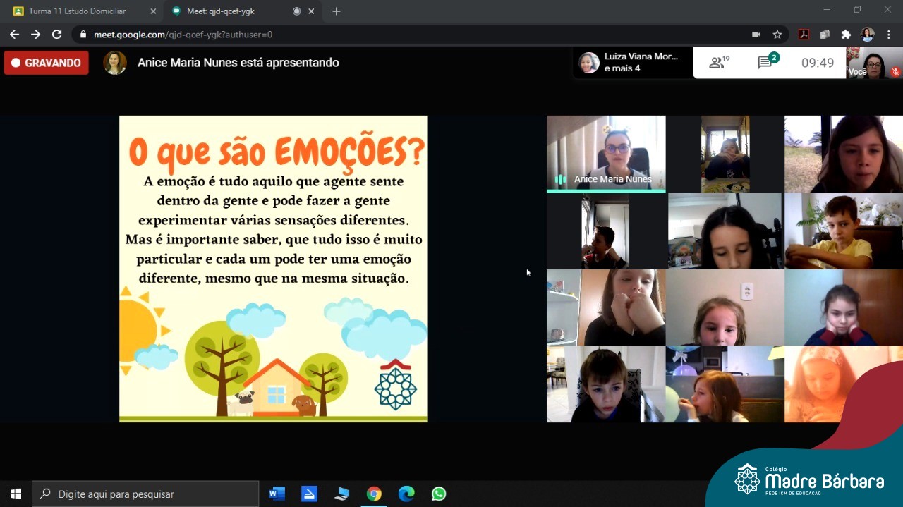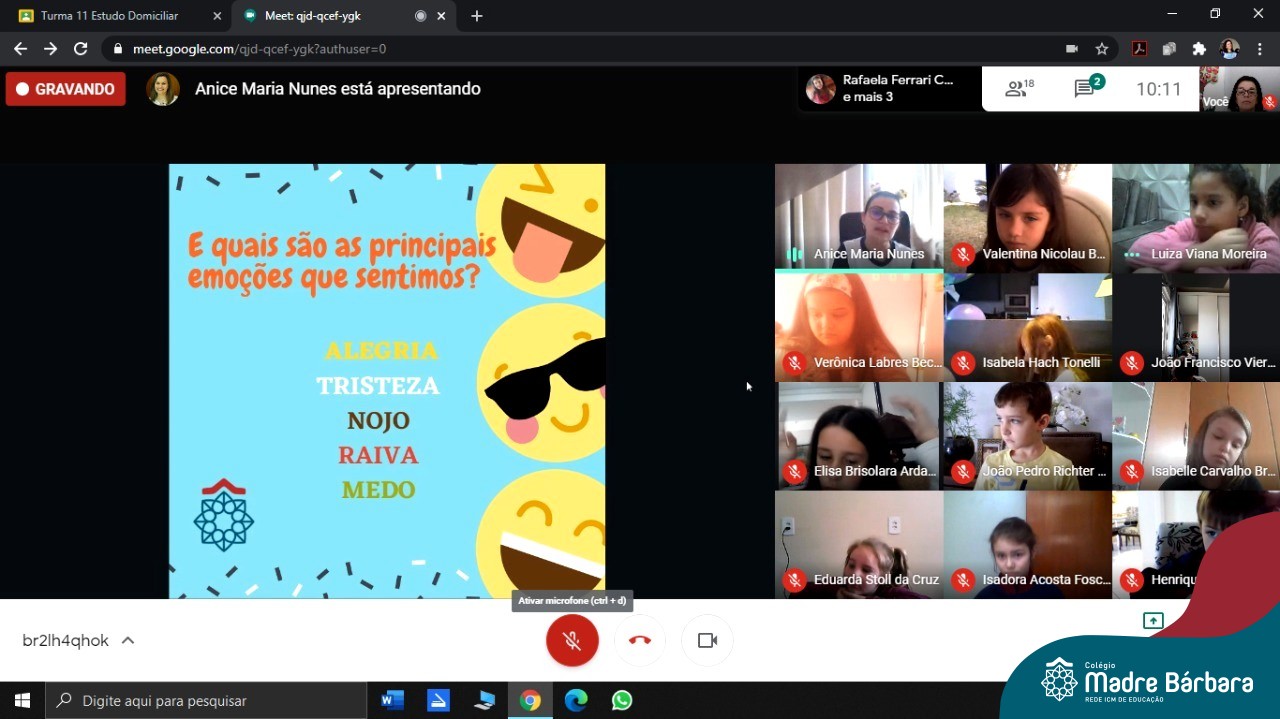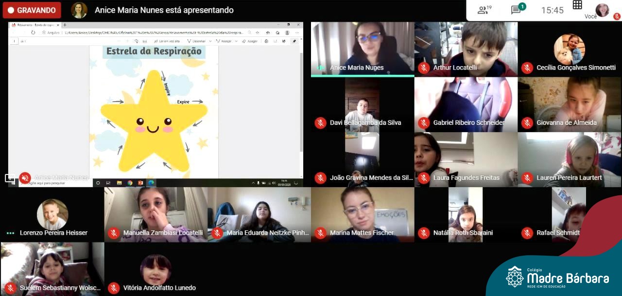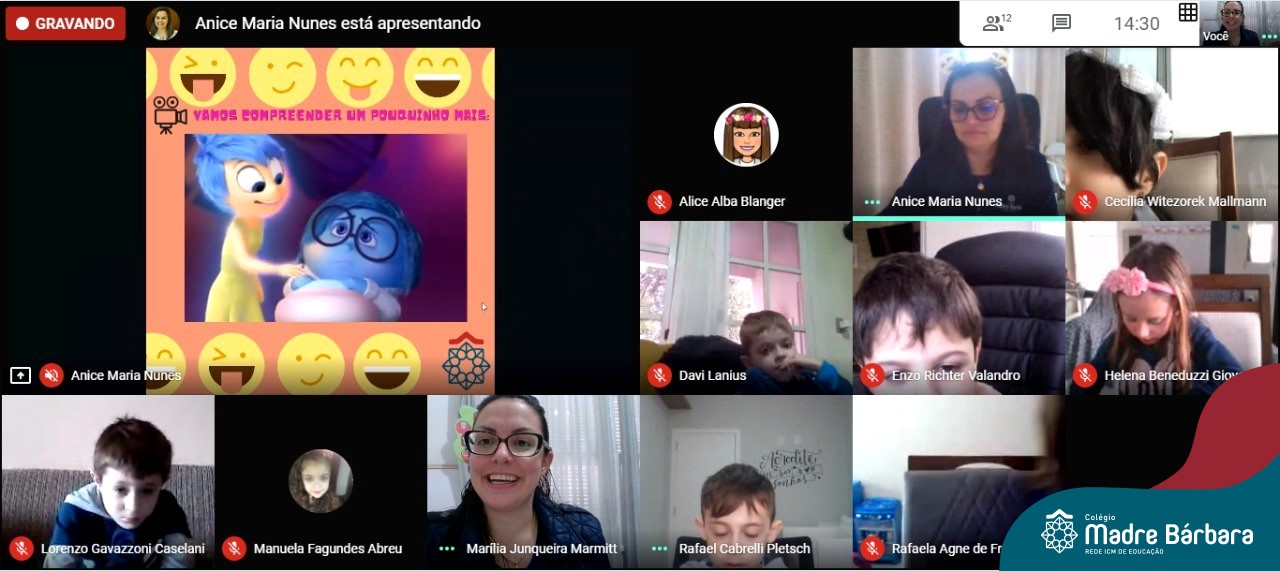 Foi com muita alegria, que os alunos dos Primeiros e Segundos anos do Colégio Madre Bárbara, juntamente com suas professoras, receberam esta semana, nas suas salas de aula Google Classroom, a visita da Orientadora Educacional da escola Anice Nunes, que desenvolveu a “oficina das emoções”.
