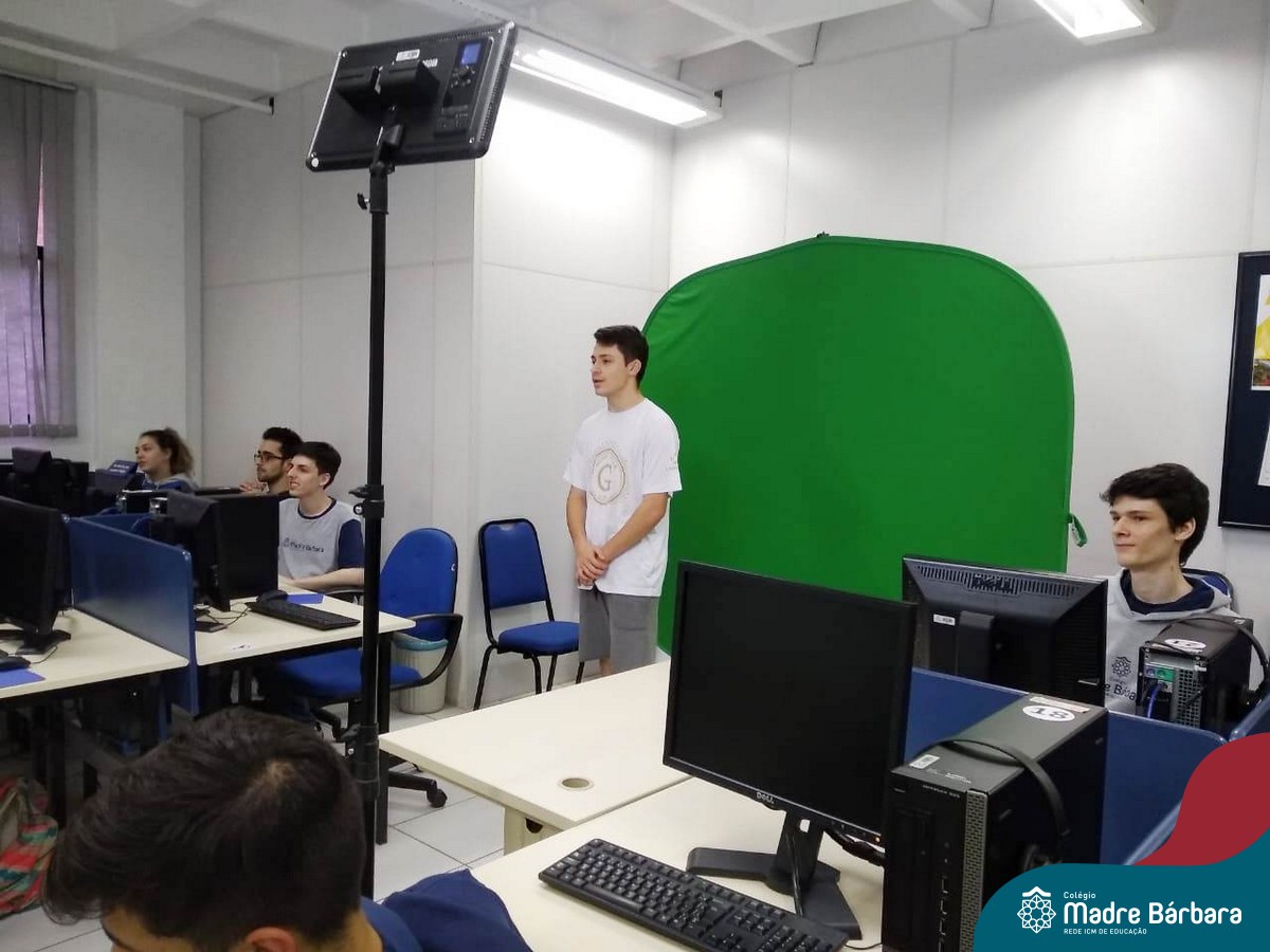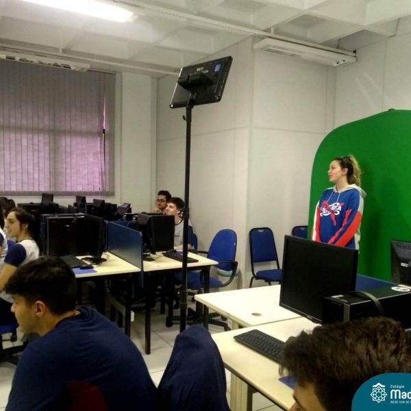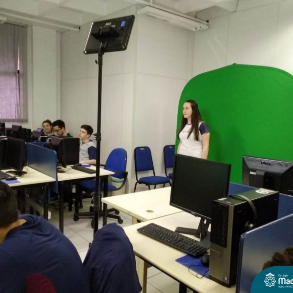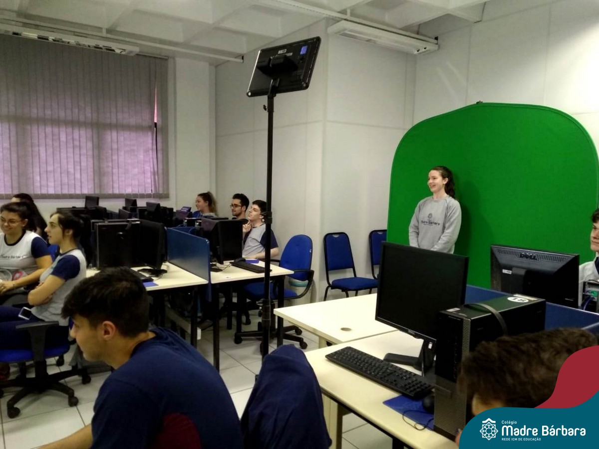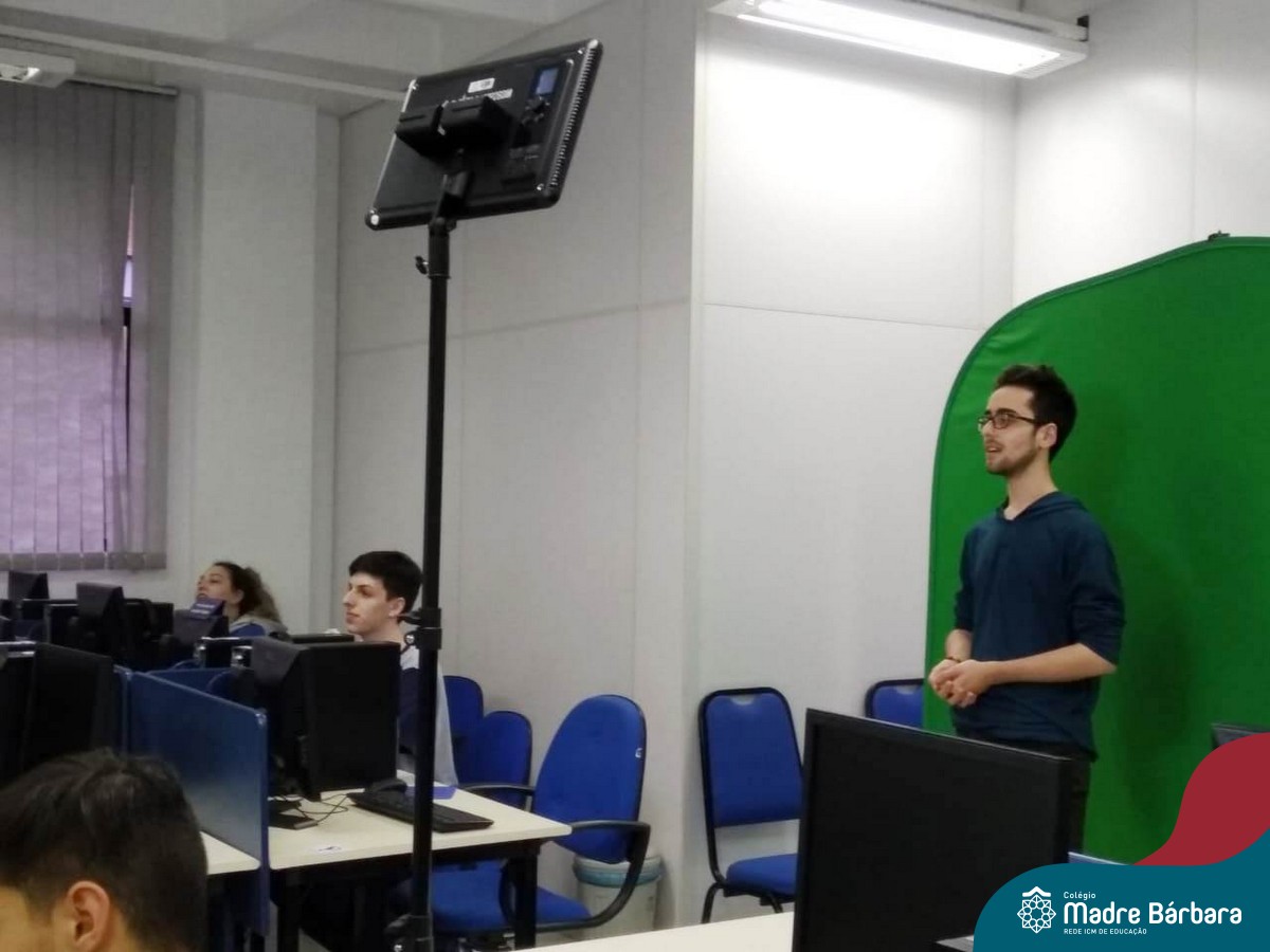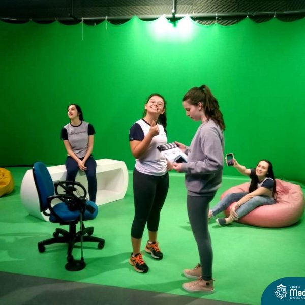 Na tarde de quinta-feira (03), alguns alunos do 2º ano do Ensino Médio, acompanhados pela professora Francieli Winck, participaram da oficina de audiovisual, ministrada pelo jornalista e professor do curso de Comunicação Marcus Staudt, na Univates. Os estudantes puderam experimentar e vivenciar um pouco sobre produção audiovisual, além de conhecerem mais sobre o curso de Comunicação Social e os bastidores da TV Univates.