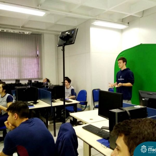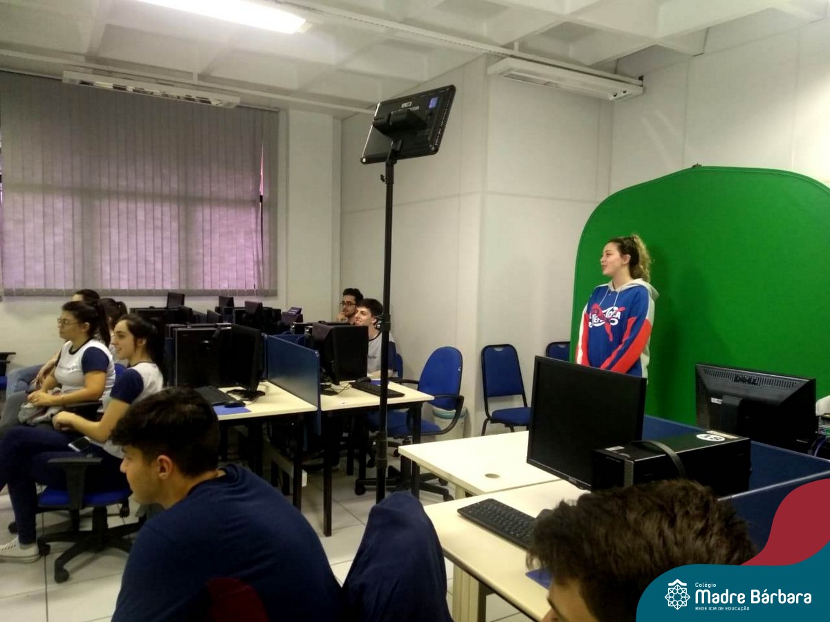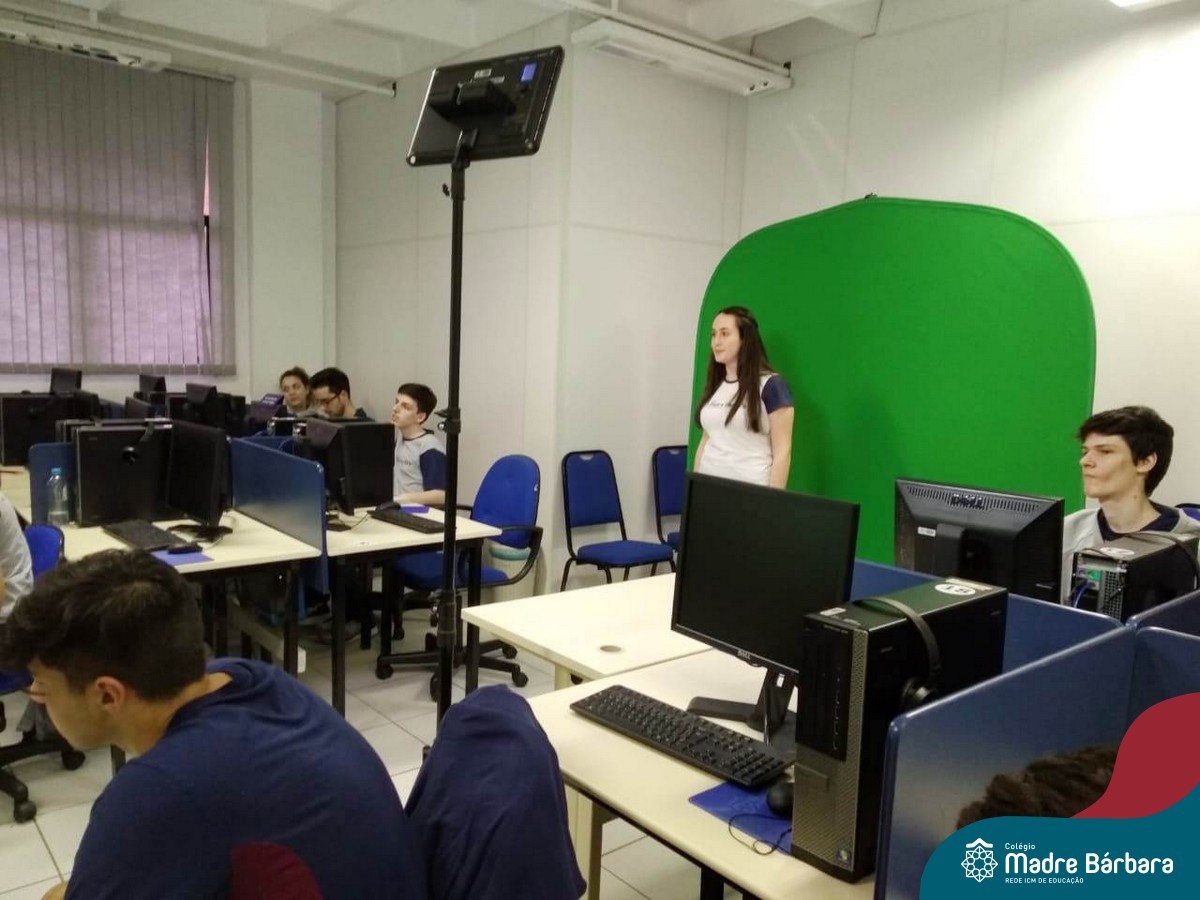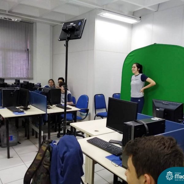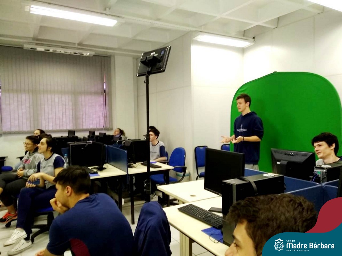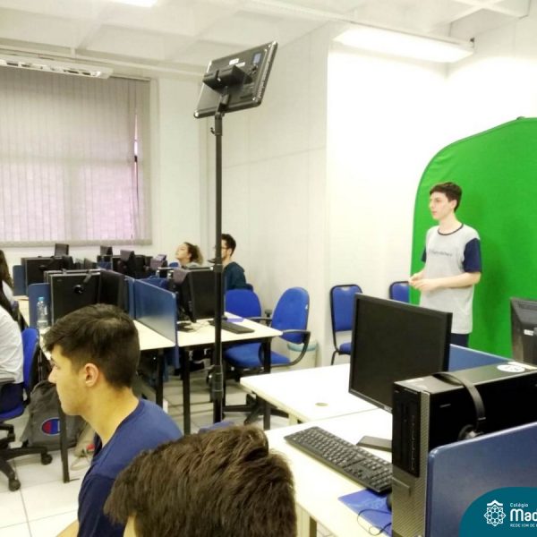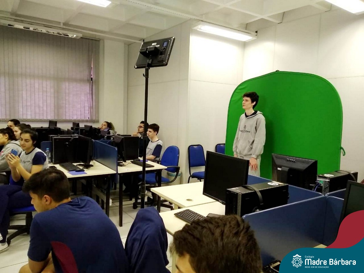 Na tarde de quinta-feira (03), alguns alunos do 2º ano do Ensino Médio, acompanhados pela professora Francieli Winck, participaram da oficina de audiovisual, ministrada pelo jornalista e professor do curso de Comunicação Marcus Staudt, na Univates. Os estudantes puderam experimentar e vivenciar um pouco sobre produção audiovisual, além de conhecerem mais sobre o curso de Comunicação Social e os bastidores da TV Univates.