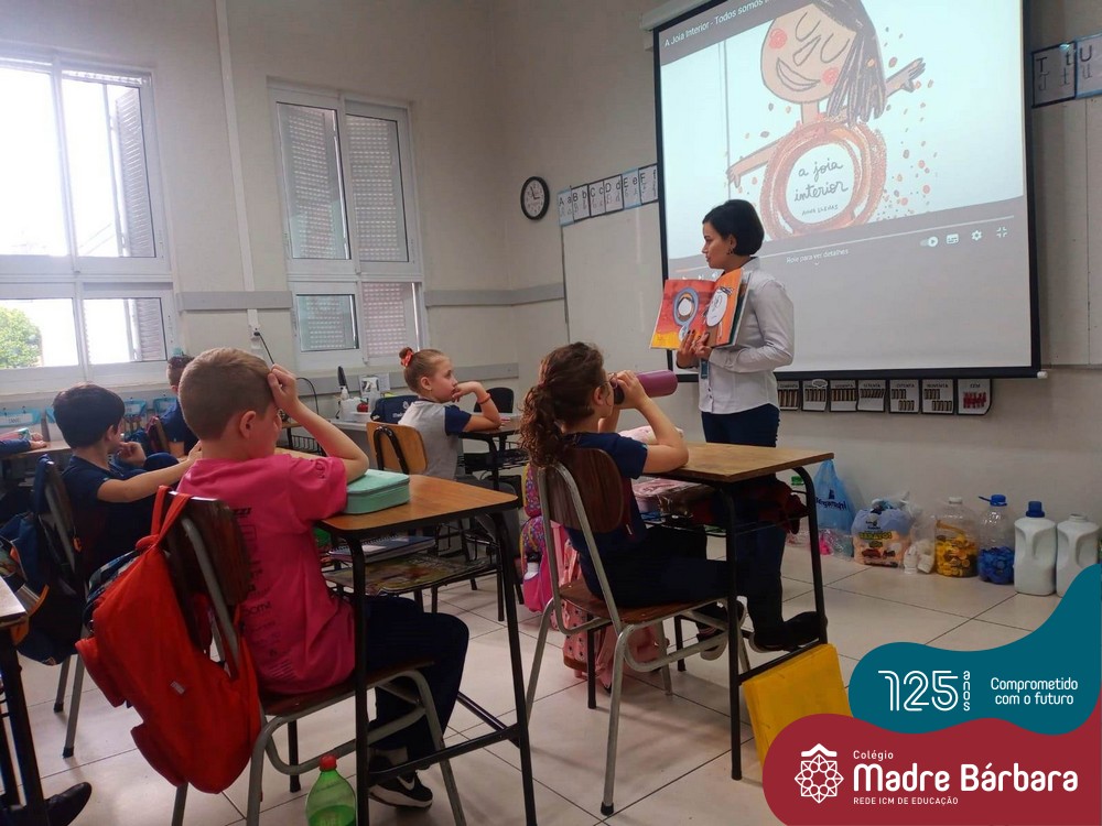 Nas últimas semanas deste mês, a orientadora educacional realizou uma oficina de educação socioemocional com as turmas dos 2º anos dos Anos Iniciais. O planejamento foi desenvolvido a partir da exploração do livro “A Joia Interior” da autora Anna Lennas. A orientadora Anice Nunes abordou com as turmas, a joia interior que acompanha cada um desde o nascimento, auxiliando e despertando nas crianças que identifiquem elementos que fortaleçam sua autoestima, em relação à elas mesmas ou em relação aos outros, contribuindo no desenvolvimento de habilidades sociais e da inteligência emocional.