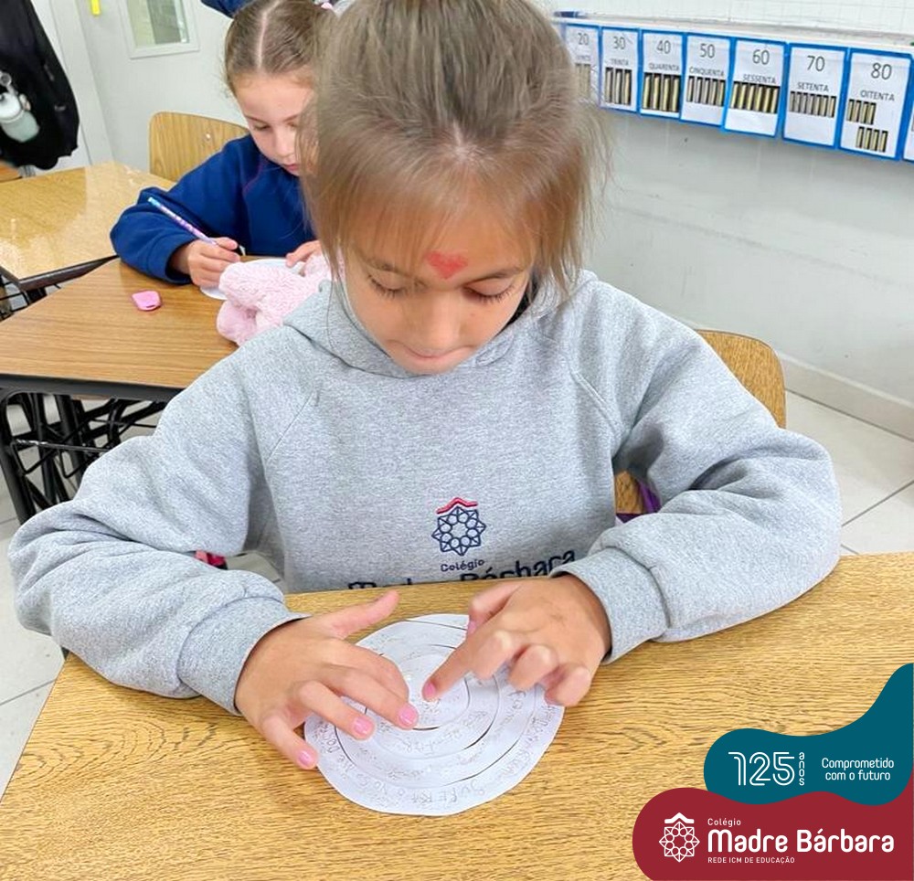 Os alunos confeccionaram uma joia, simbolizando, sua joia interior, expressando nas camadas, sua essência, emoções, valores, fraquezas e desafios que constituem as camadas desta joia. Assim, foi concluído com as crianças de que se cuidarem desta joia, cultivando suas essências, poderão empreender o caminho da consciência, do crescimento pessoal, em que a motivação será encontrar as respostas dentro deles, mais do que procurá-las lá fora.