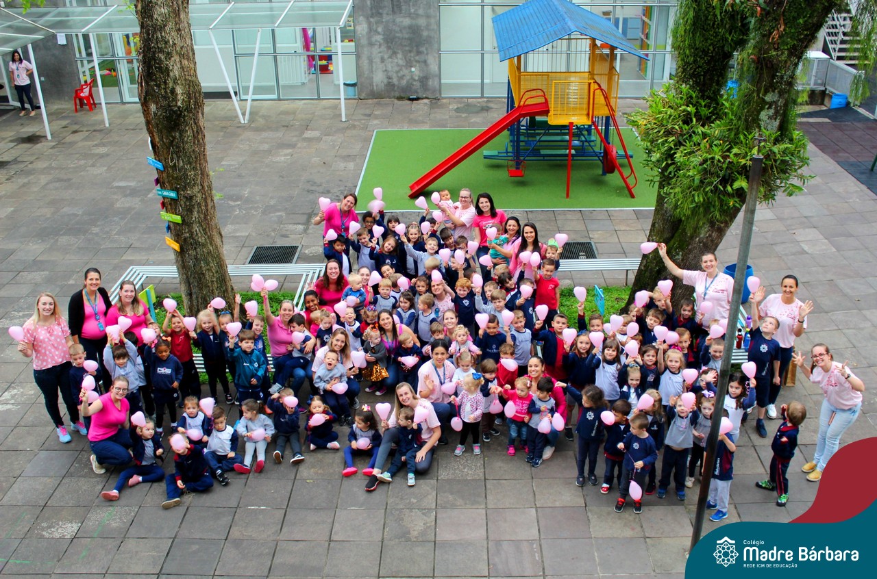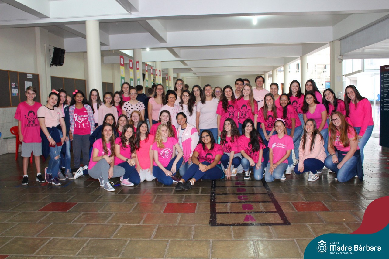 Nessa quarta-feira (30.10) pré-feriadão, os professores, funcionários e alunos do 6º ano do Ensino Fundamental ao 3º ano do Ensino Médio foram para o Colégio Madre Bárbara – Rede ICM vestidos de rosa para homenagear o mês de prevenção contra o câncer de mama. A campanha de conscientização Outubro Rosa tem como objetivo principal alertar as mulheres e a sociedade sobre a importância da prevenção e do diagnóstico precoce do câncer de mama e mais recentemente sobre o câncer de colo do útero.