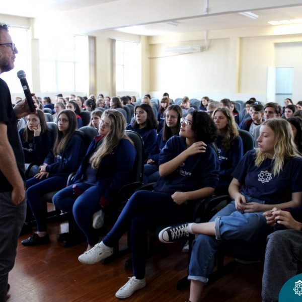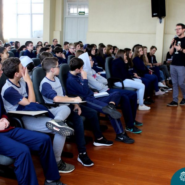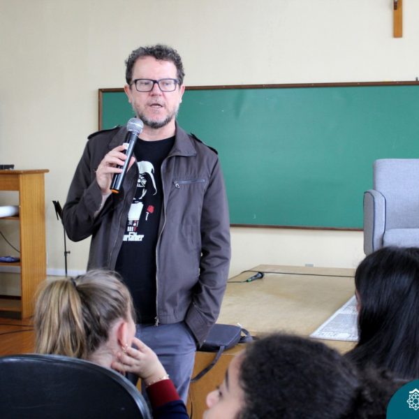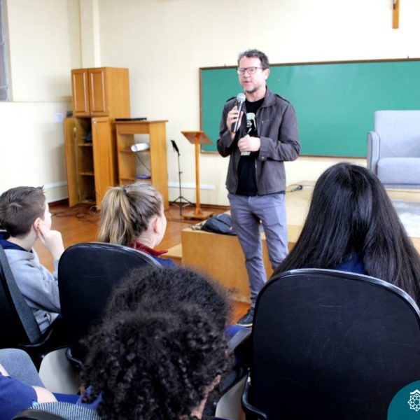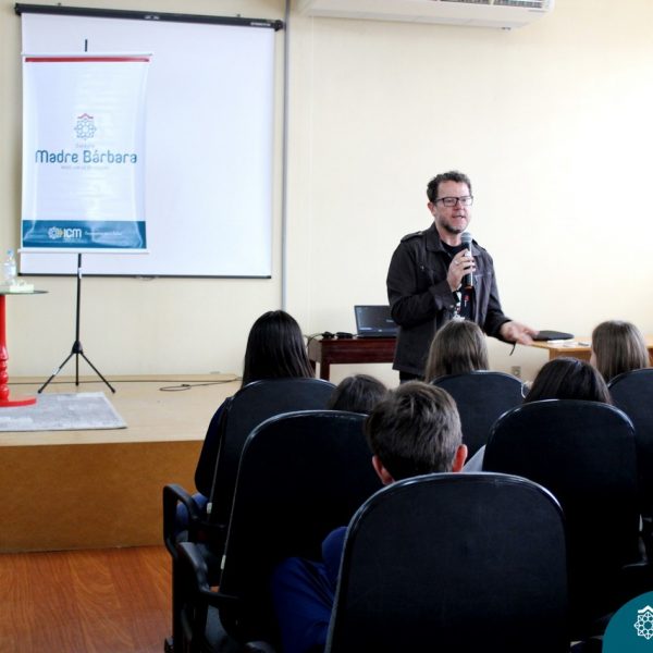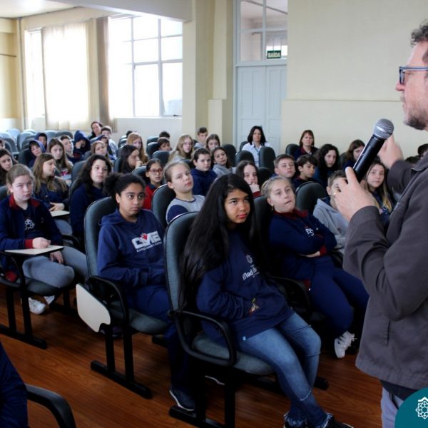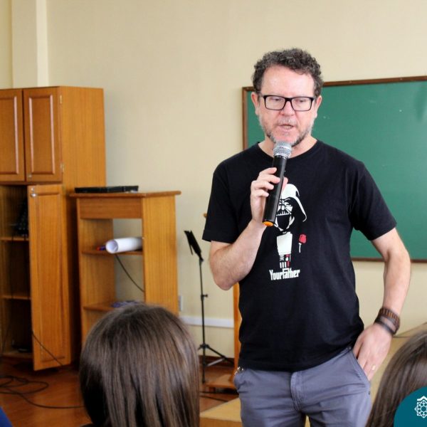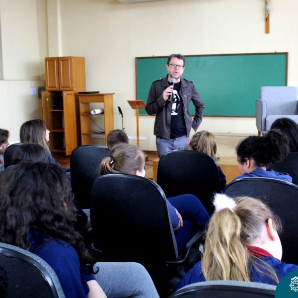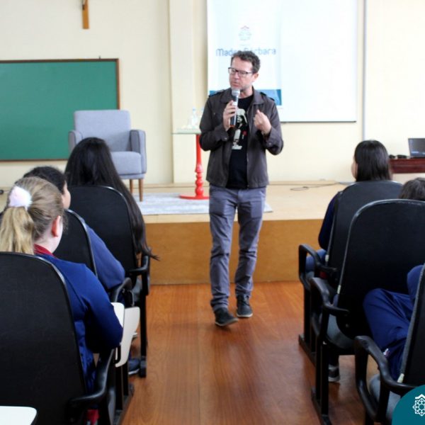 Os alunos do Ensino Fundamental – Anos Finais do Colégio Madre Bárbara – Rede ICM tiveram nessa sexta-feira (27.09) a oportunidade de conversar com o escritor Caio Riter, referente suas obras e a importância da leitura e escrita. Foi um momento de troca de conhecimentos e vivências, realizado a partir da leitura de alguns livros ao longo do ano. A atividade foi proposta pela área das linguagens.