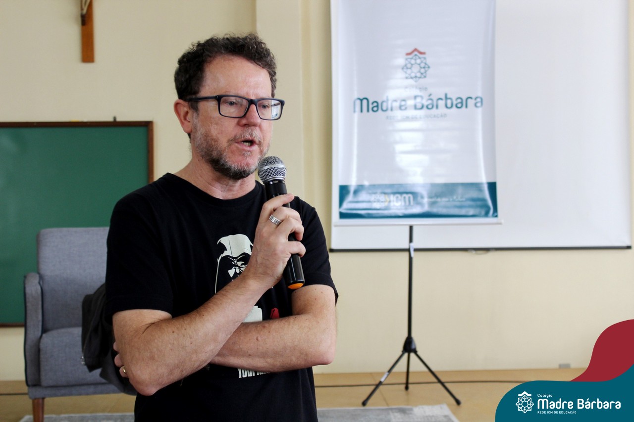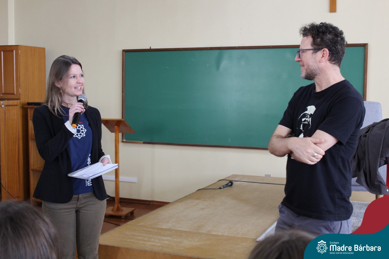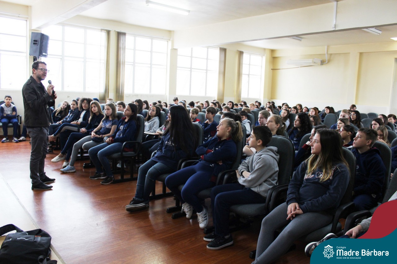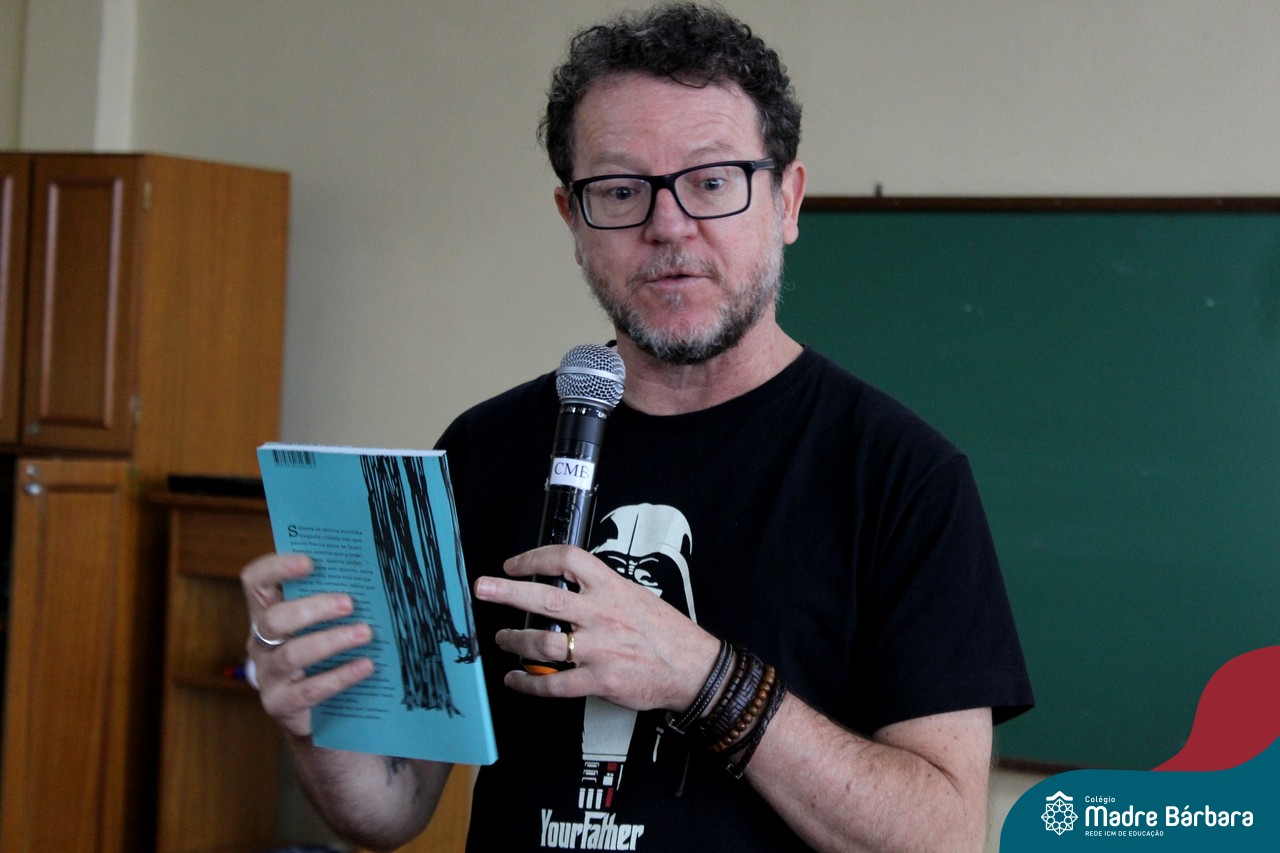 Os alunos do Ensino Fundamental – Anos Finais do Colégio Madre Bárbara – Rede ICM tiveram nessa sexta-feira (27.09) a oportunidade de conversar com o escritor Caio Riter, referente suas obras e a importância da leitura e escrita. Foi um momento de troca de conhecimentos e vivências, realizado a partir da leitura de alguns livros ao longo do ano. A atividade foi proposta pela área das linguagens.