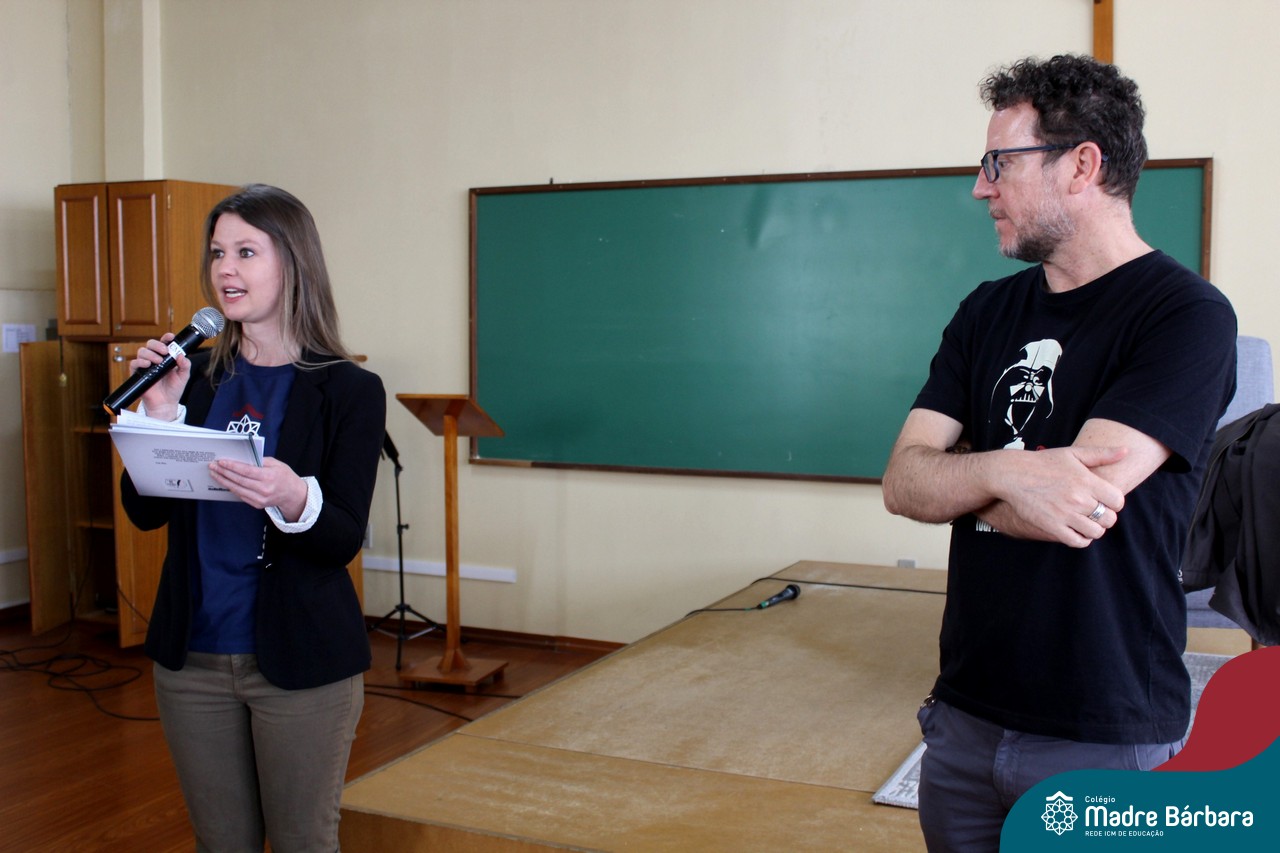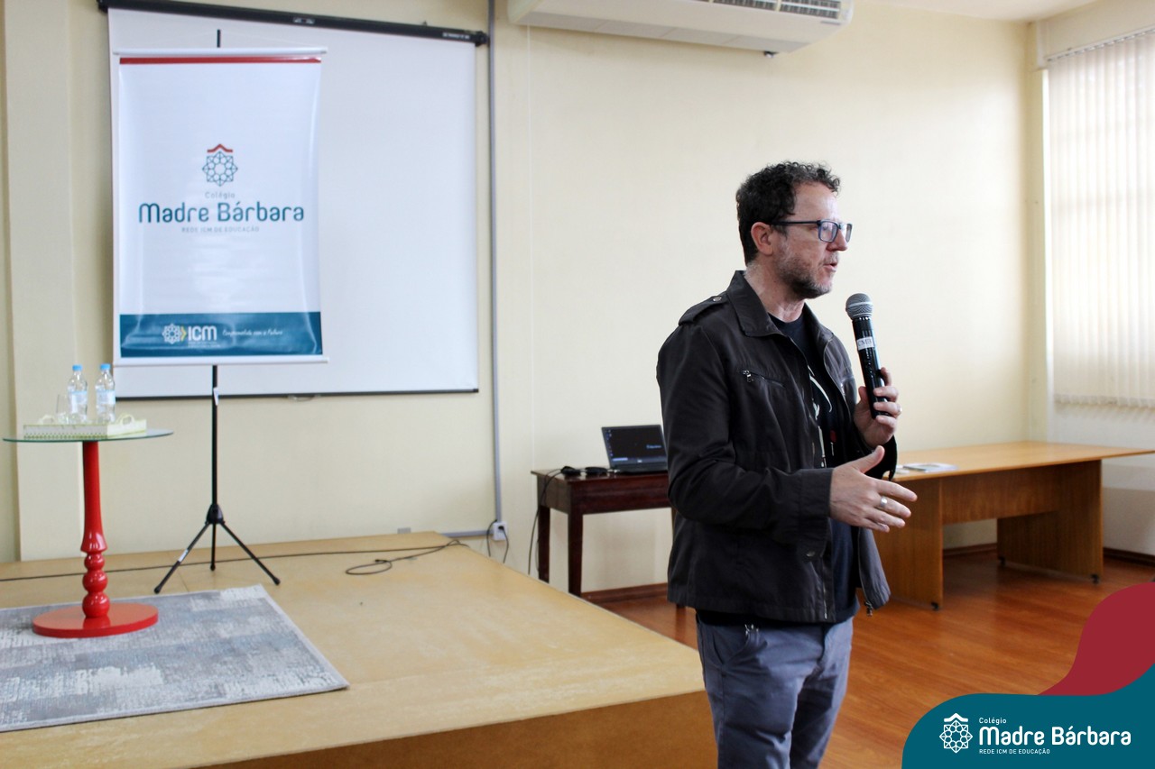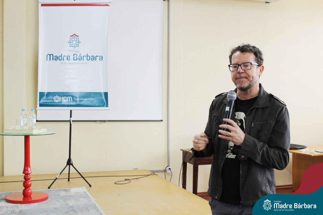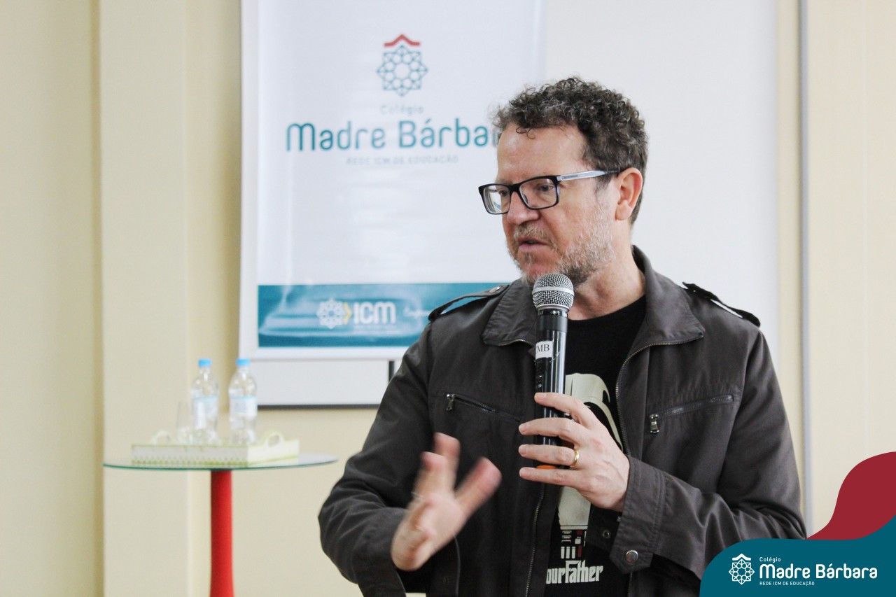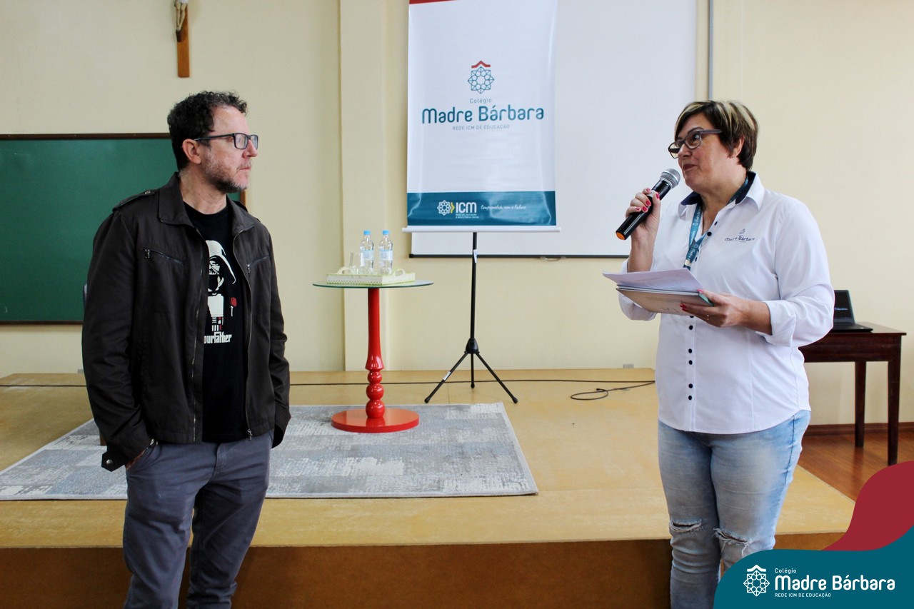 Os alunos do Ensino Fundamental – Anos Finais do Colégio Madre Bárbara – Rede ICM tiveram nessa sexta-feira (27.09) a oportunidade de conversar com o escritor Caio Riter, referente suas obras e a importância da leitura e escrita. Foi um momento de troca de conhecimentos e vivências, realizado a partir da leitura de alguns livros ao longo do ano. A atividade foi proposta pela área das linguagens.