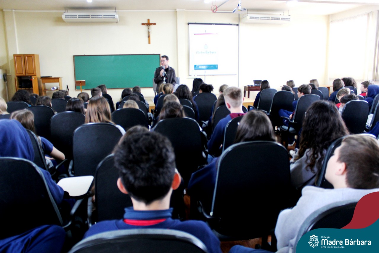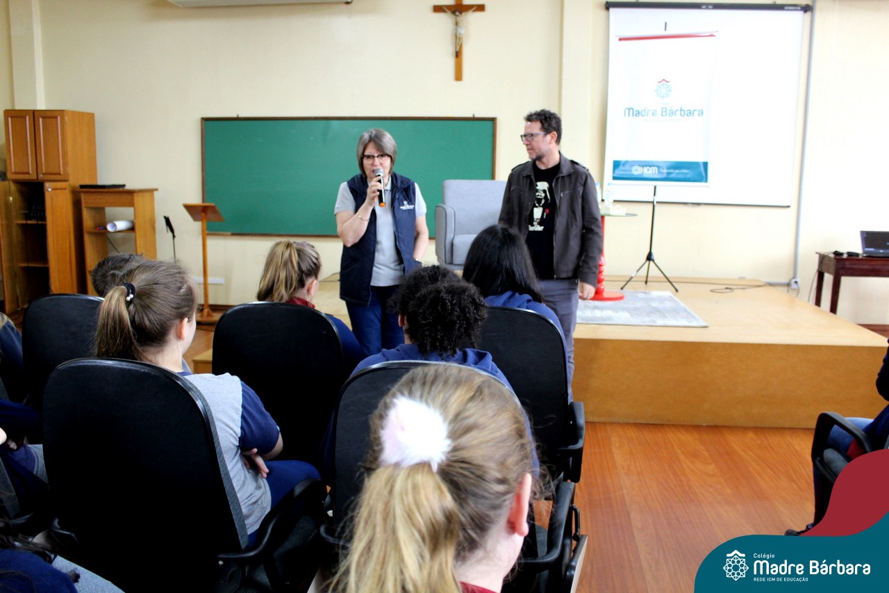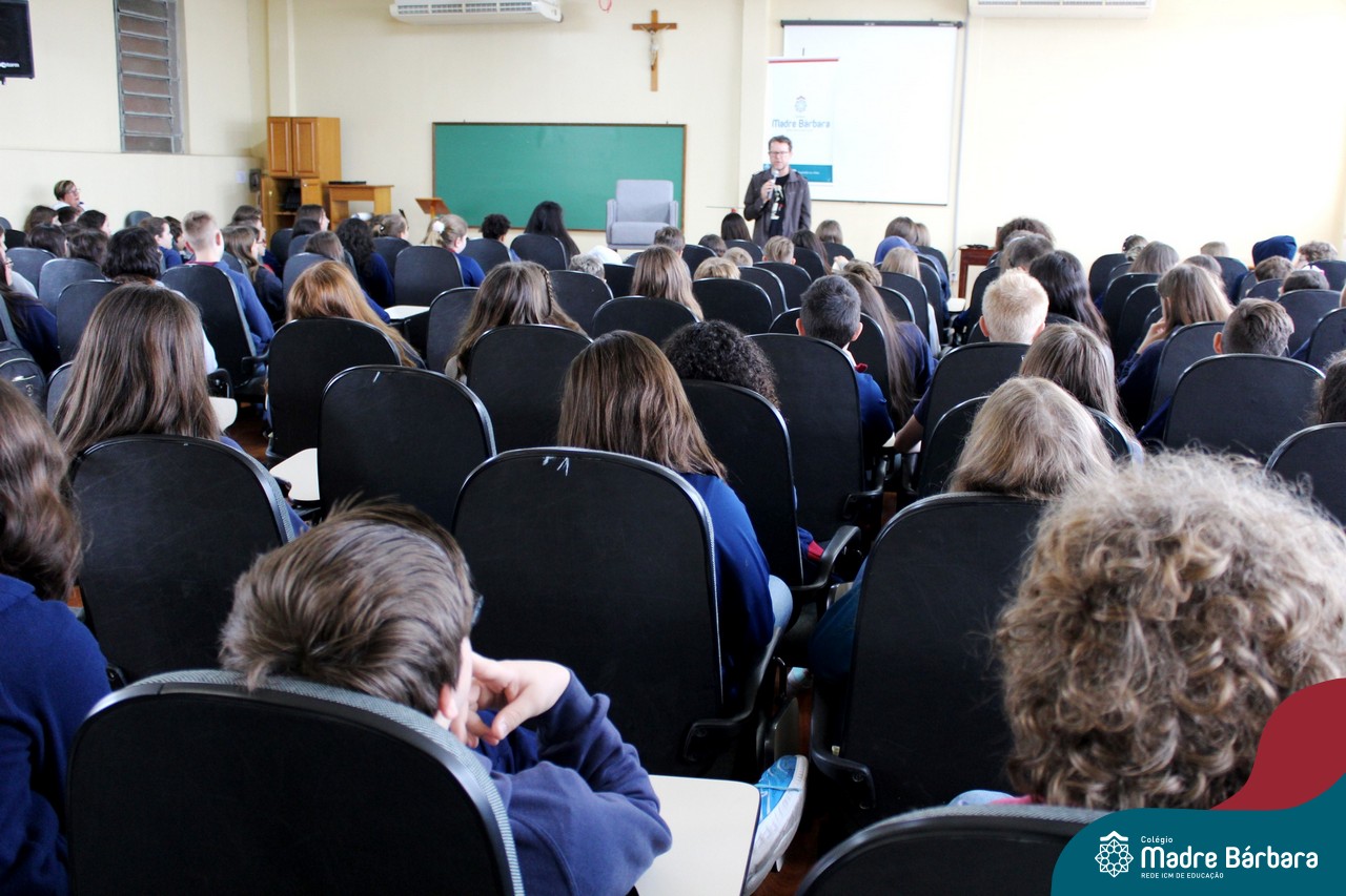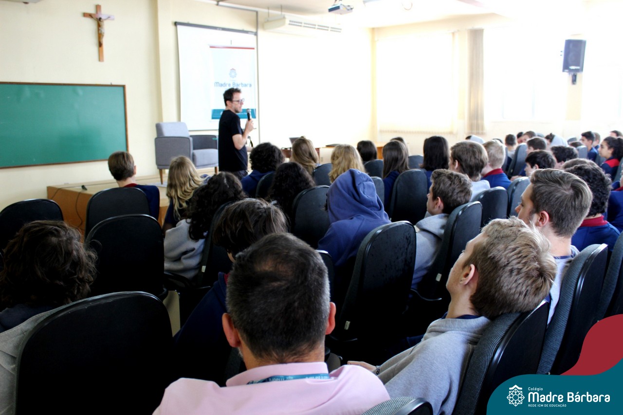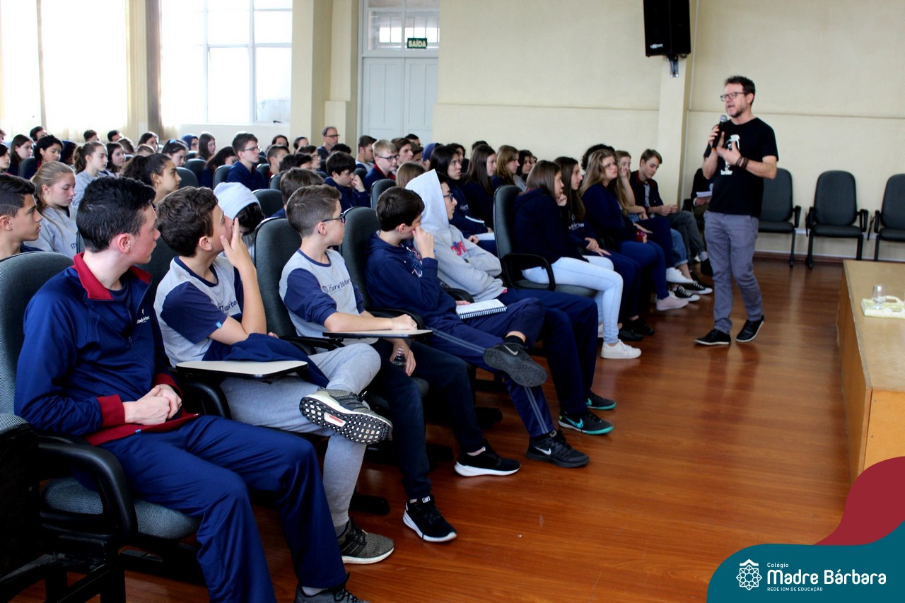 Os alunos do Ensino Fundamental – Anos Finais do Colégio Madre Bárbara – Rede ICM tiveram nessa sexta-feira (27.09) a oportunidade de conversar com o escritor Caio Riter, referente suas obras e a importância da leitura e escrita. Foi um momento de troca de conhecimentos e vivências, realizado a partir da leitura de alguns livros ao longo do ano. A atividade foi proposta pela área das linguagens.