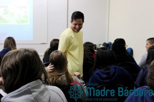 Uma das atividades do Projeto de Educação Financeira desenvolvida na Área de Matemática e suas Tecnologias do Colégio Madre Bárbara ocorreu na segunda-feira (22.04). Os alunos do 3º ano do Ensino Médio participaram na aula de matemática do Professor Danilo Walter da palestra: Educação Empreendedora e Financeira – Finanças pessoais realizada pelo professor da Univates, Sandro Faleiro.