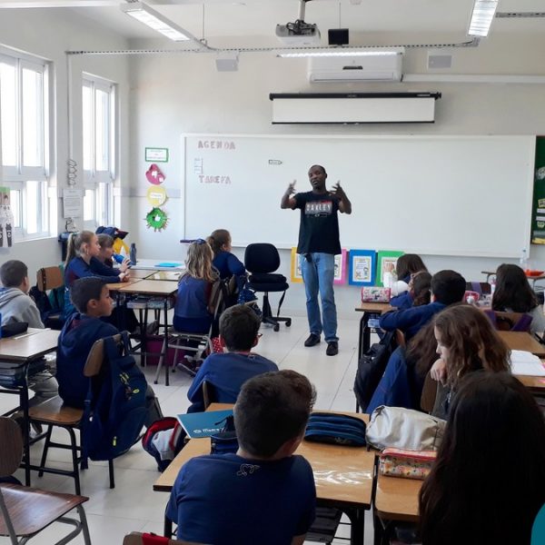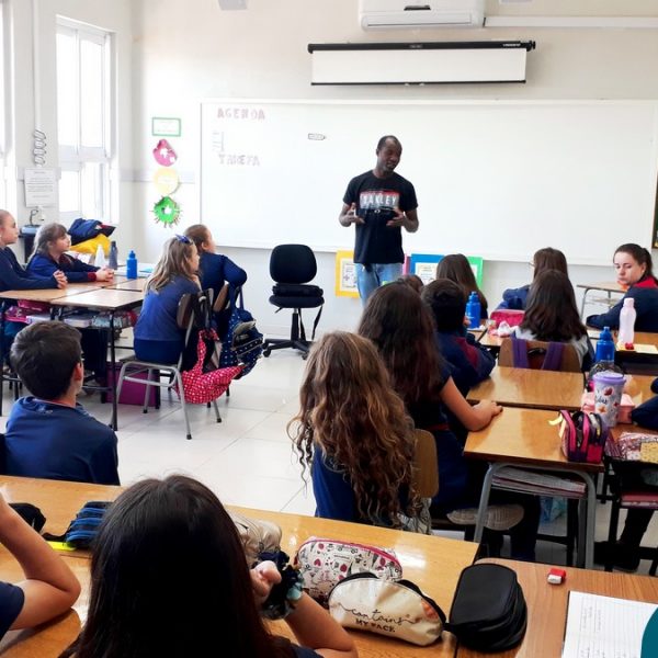 Na manhã do dia, 23.10 a turma 42, das professoras Joseane e Carina, recebeu em sua sala o convidado especial Abdias Gefrrard. Abdias é Haitiano e conversou com os alunos sobre o país, os costumes, a cultura e a vinda para o Brasil e Lajeado. Foi um momento especial de muita aprendizagem e conhecimento para a Mostra, em que a turma está trabalhando a imigração e países.