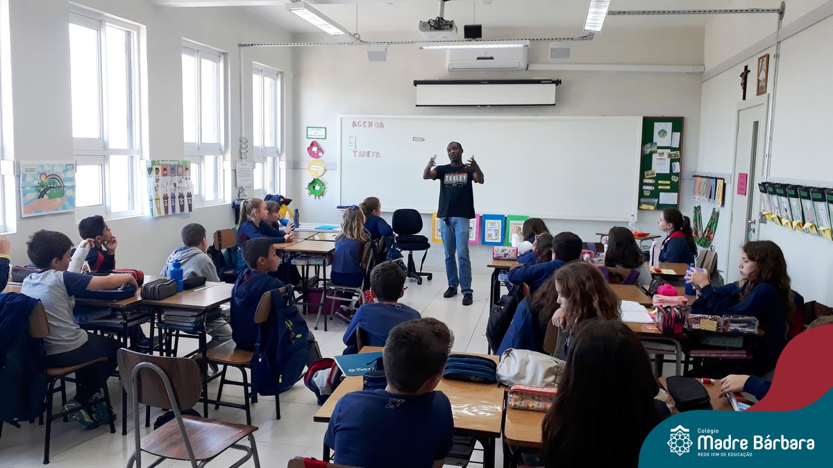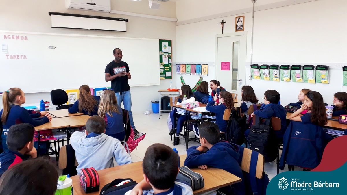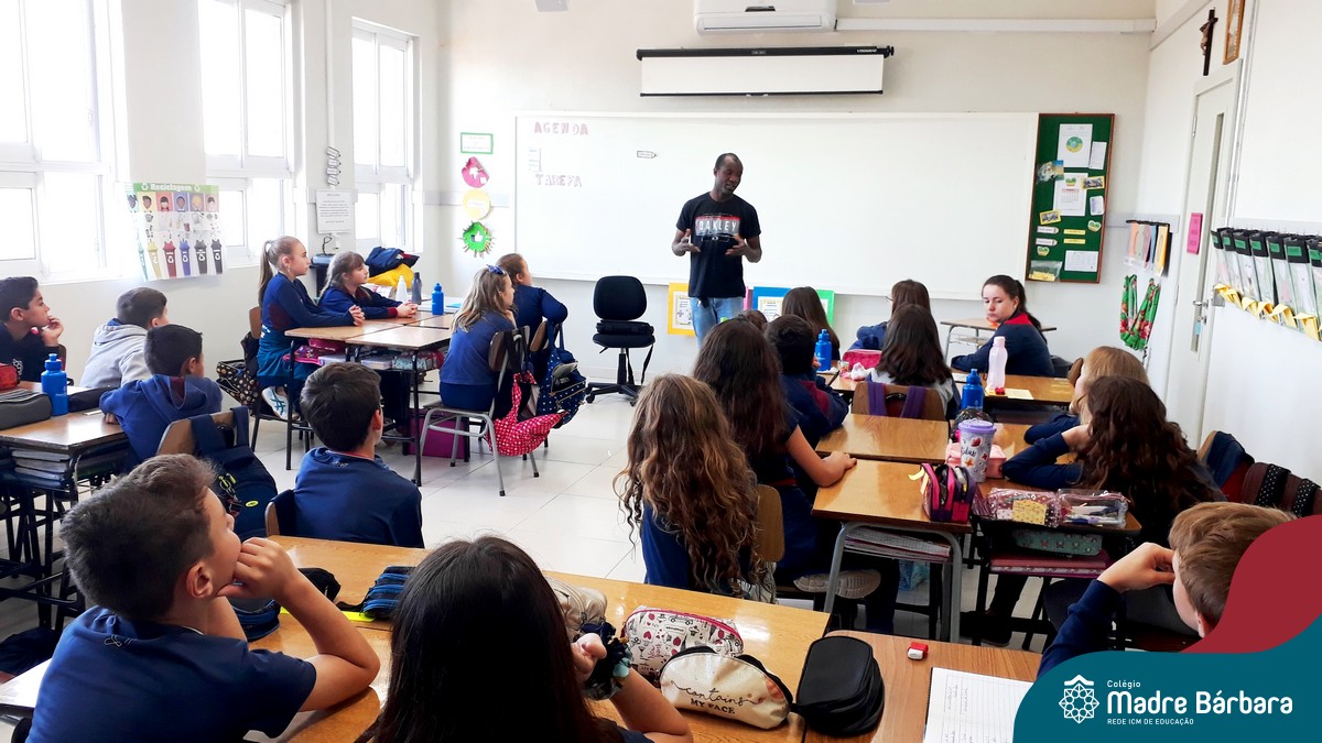 Na manhã do dia, 23.10 a turma 42, das professoras Joseane e Carina, recebeu em sua sala o convidado especial Abdias Gefrrard. Abdias é Haitiano e conversou com os alunos sobre o país, os costumes, a cultura e a vinda para o Brasil e Lajeado. Foi um momento especial de muita aprendizagem e conhecimento para a Mostra, em que a turma está trabalhando a imigração e países.