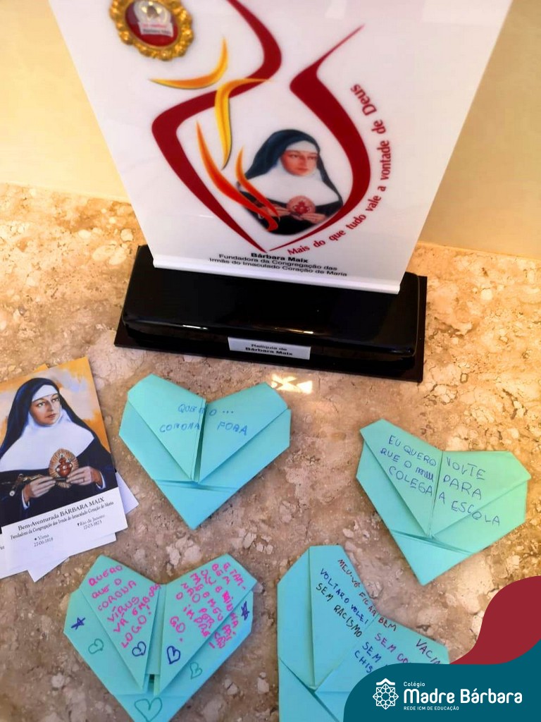 A Capela do Colégio Madre Bárbara – Rede ICM tem recebido orações dos alunos, que estão sendo deixadas próximas de Jesus e da relíquia da Bem-Aventurada Bárbara Maix. Desejamos que todos os pedidos feitos pelos alunos e comunidade escolar sejam atendidos. Aqueles que quiserem deixar suas orações e rezar em nossa Capela, podem ficar a vontade, pois está sempre aberta.