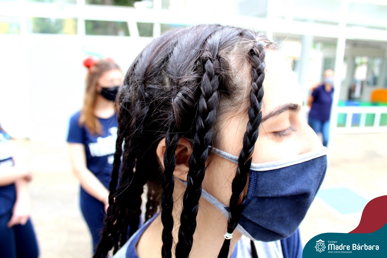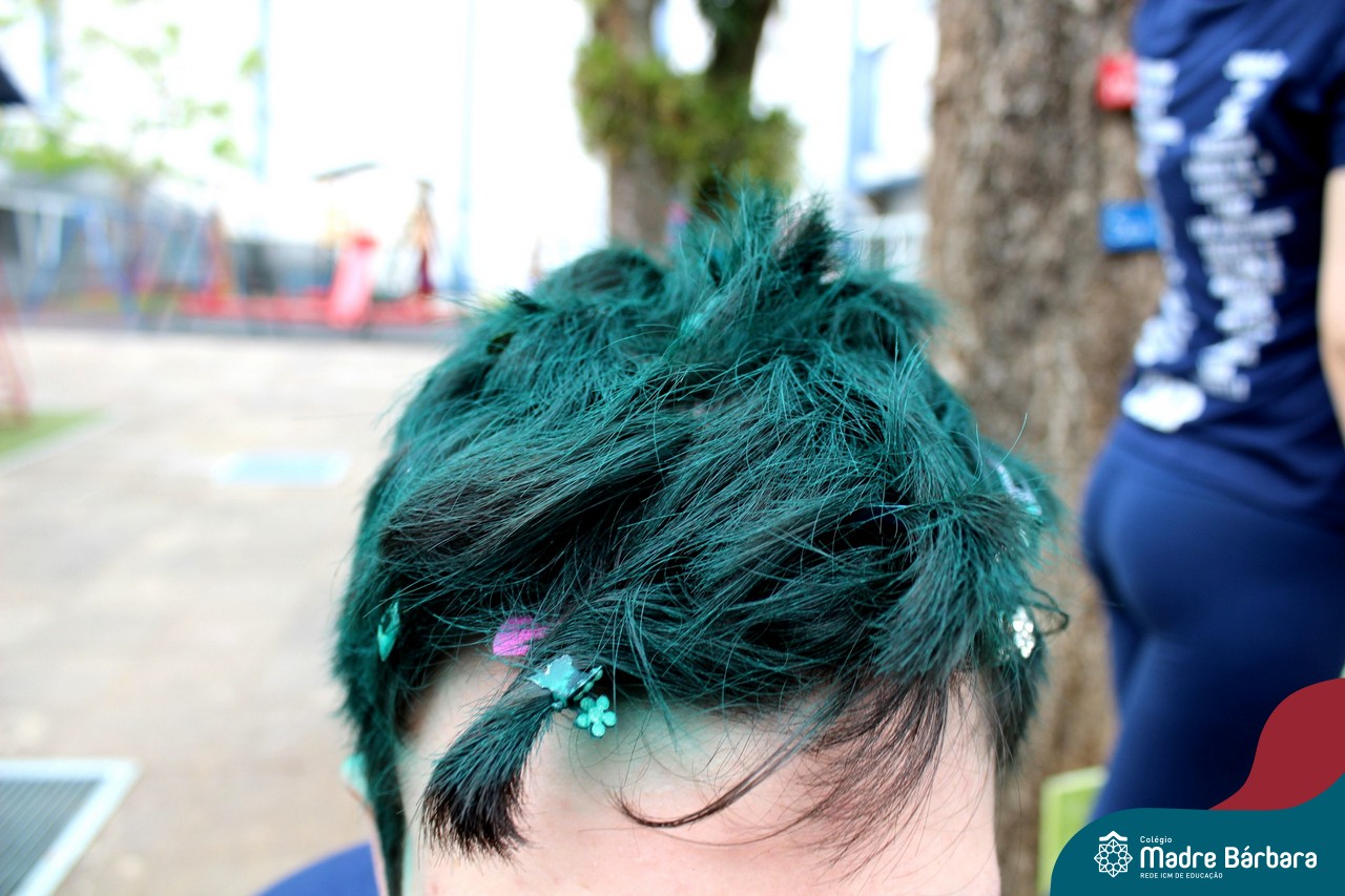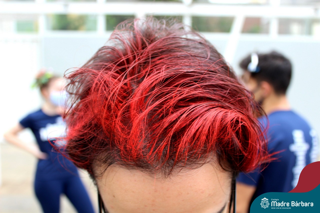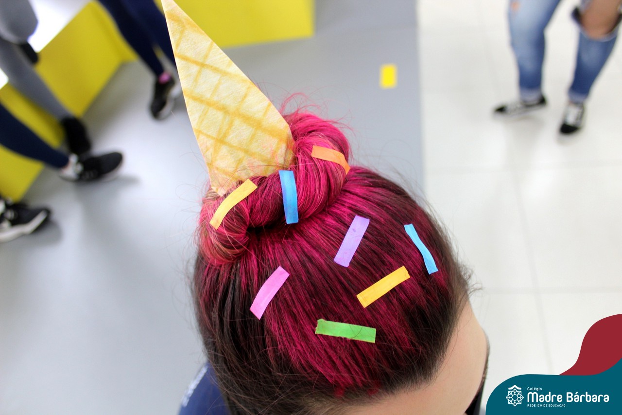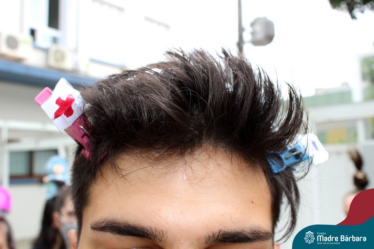 A turma do Terceirão aproveitou o retorno presencial para realizar uma atividade que está virando tradição para os formandos. O Dia do Penteado Maluco ocorreu separadamente com o Grupo A e B de alunos, em duas sextas-feiras. Foi momento para ousar e colorir muito as cabeças com objetos criativos.