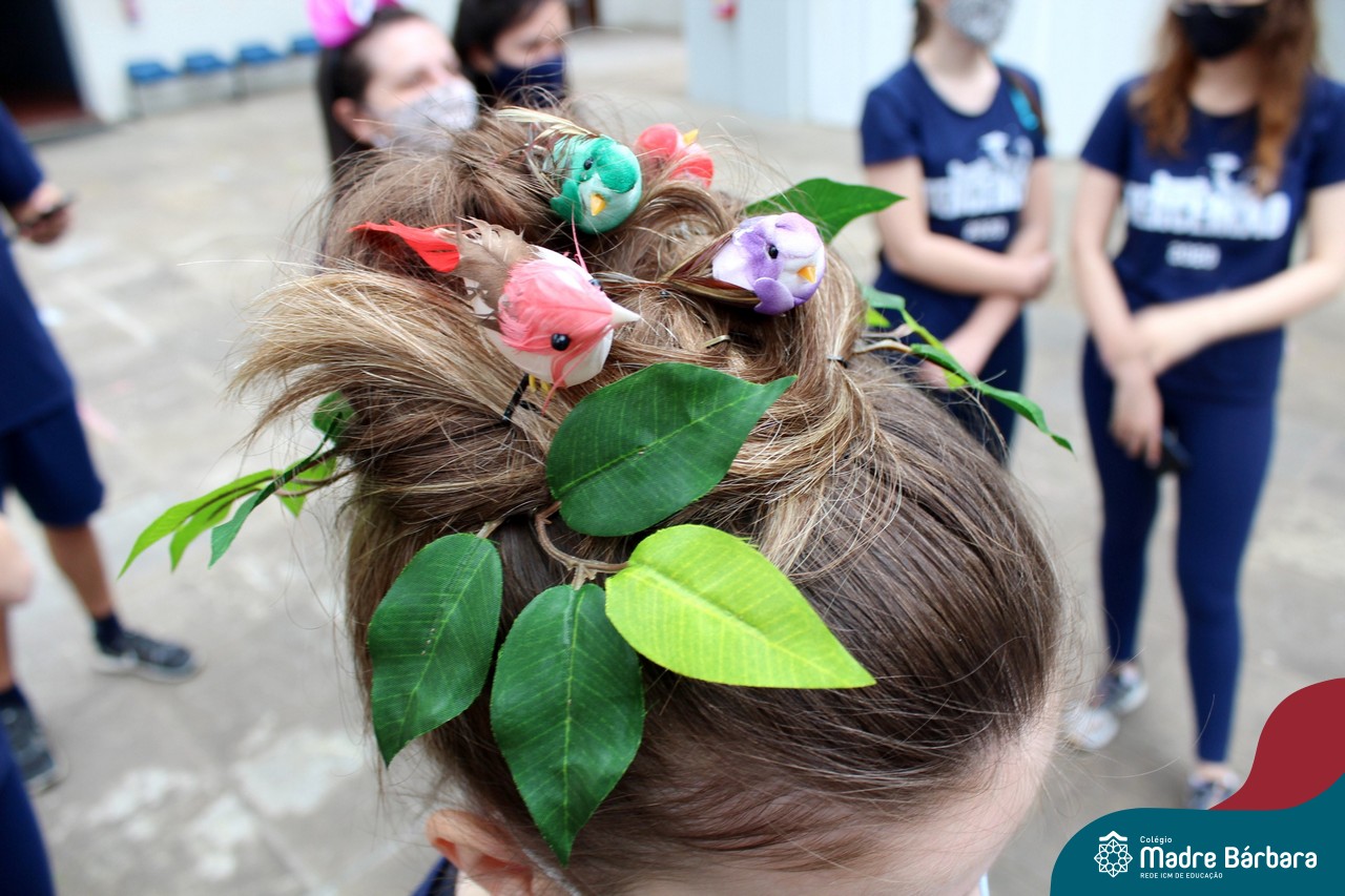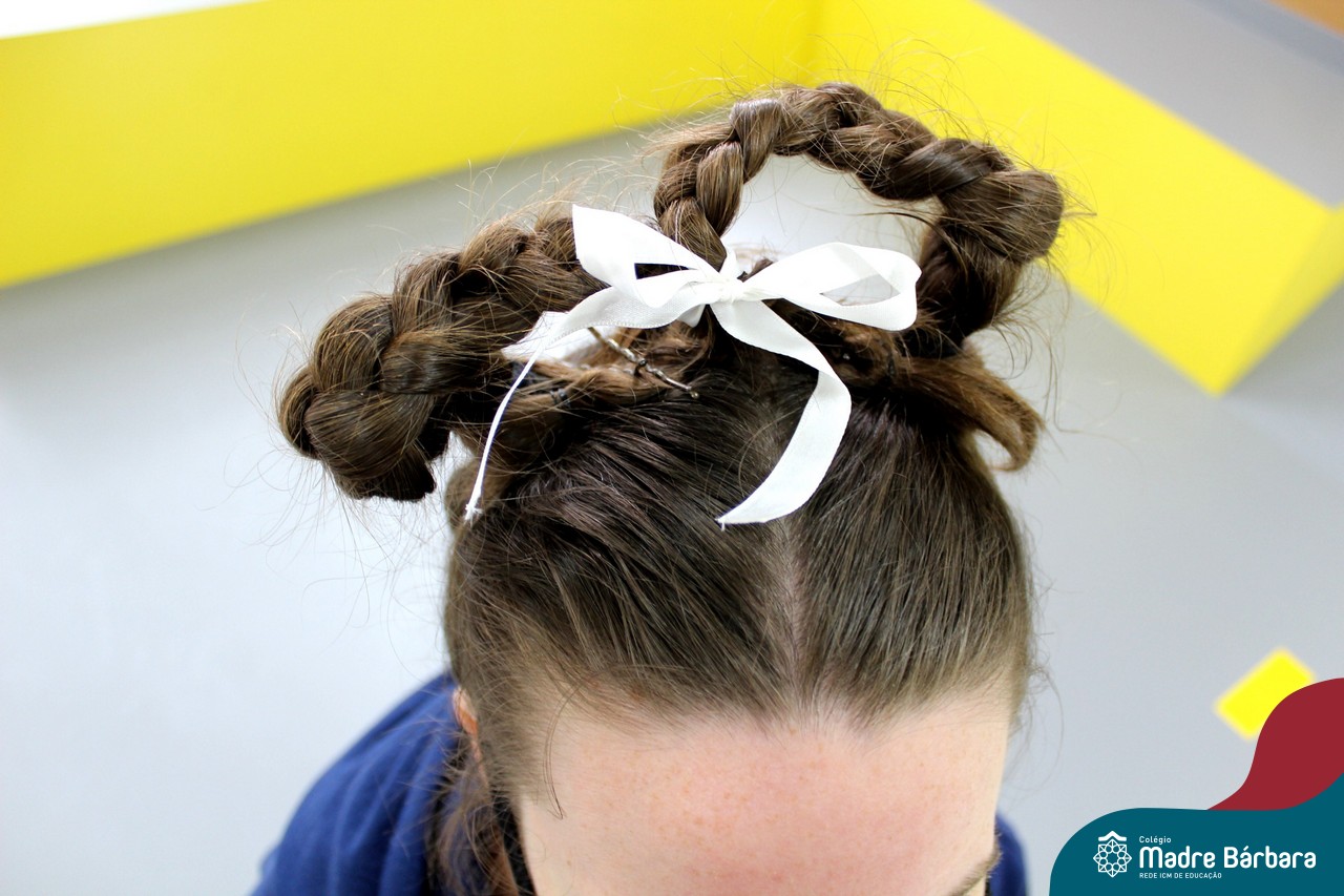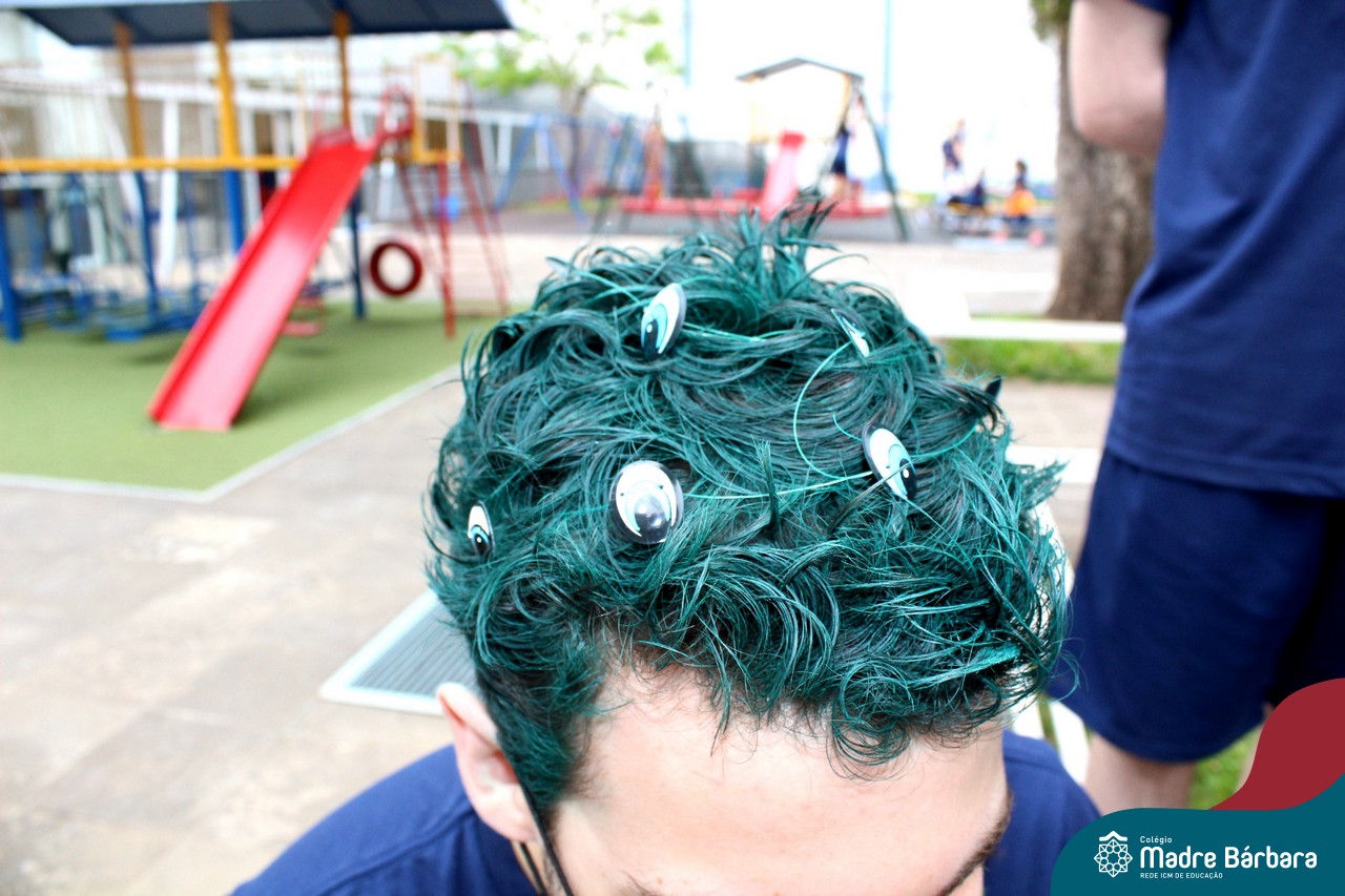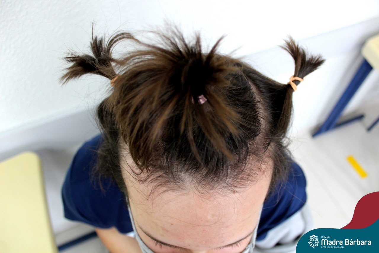 A turma do Terceirão aproveitou o retorno presencial para realizar uma atividade que está virando tradição para os formandos. O Dia do Penteado Maluco ocorreu separadamente com o Grupo A e B de alunos, em duas sextas-feiras. Foi momento para ousar e colorir muito as cabeças com objetos criativos.