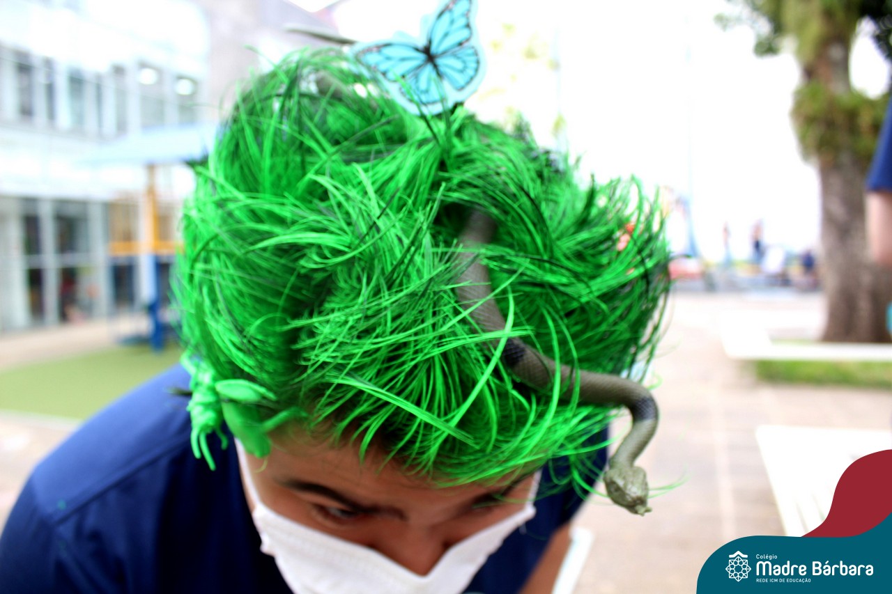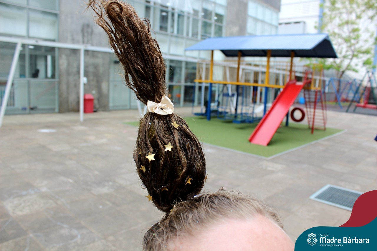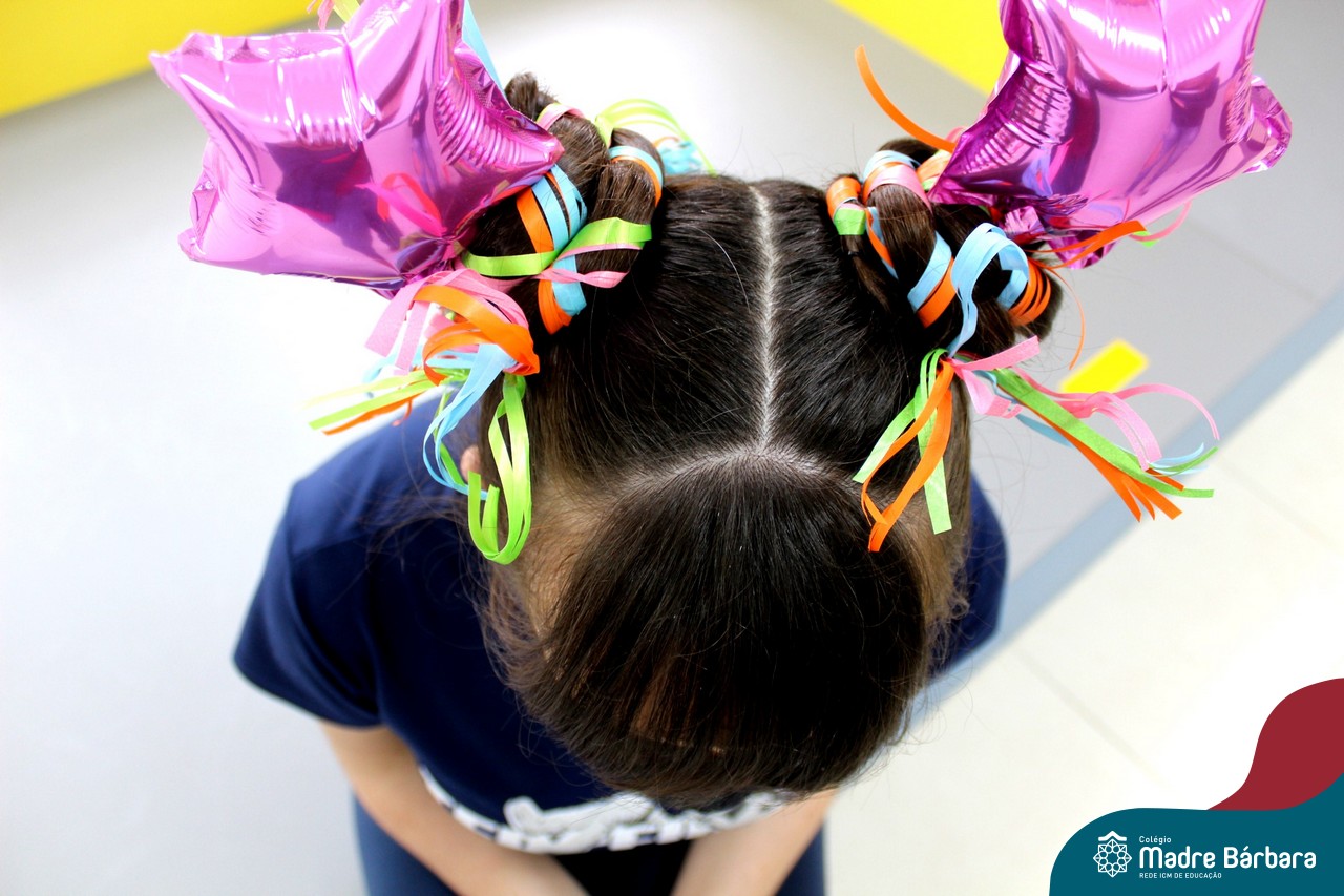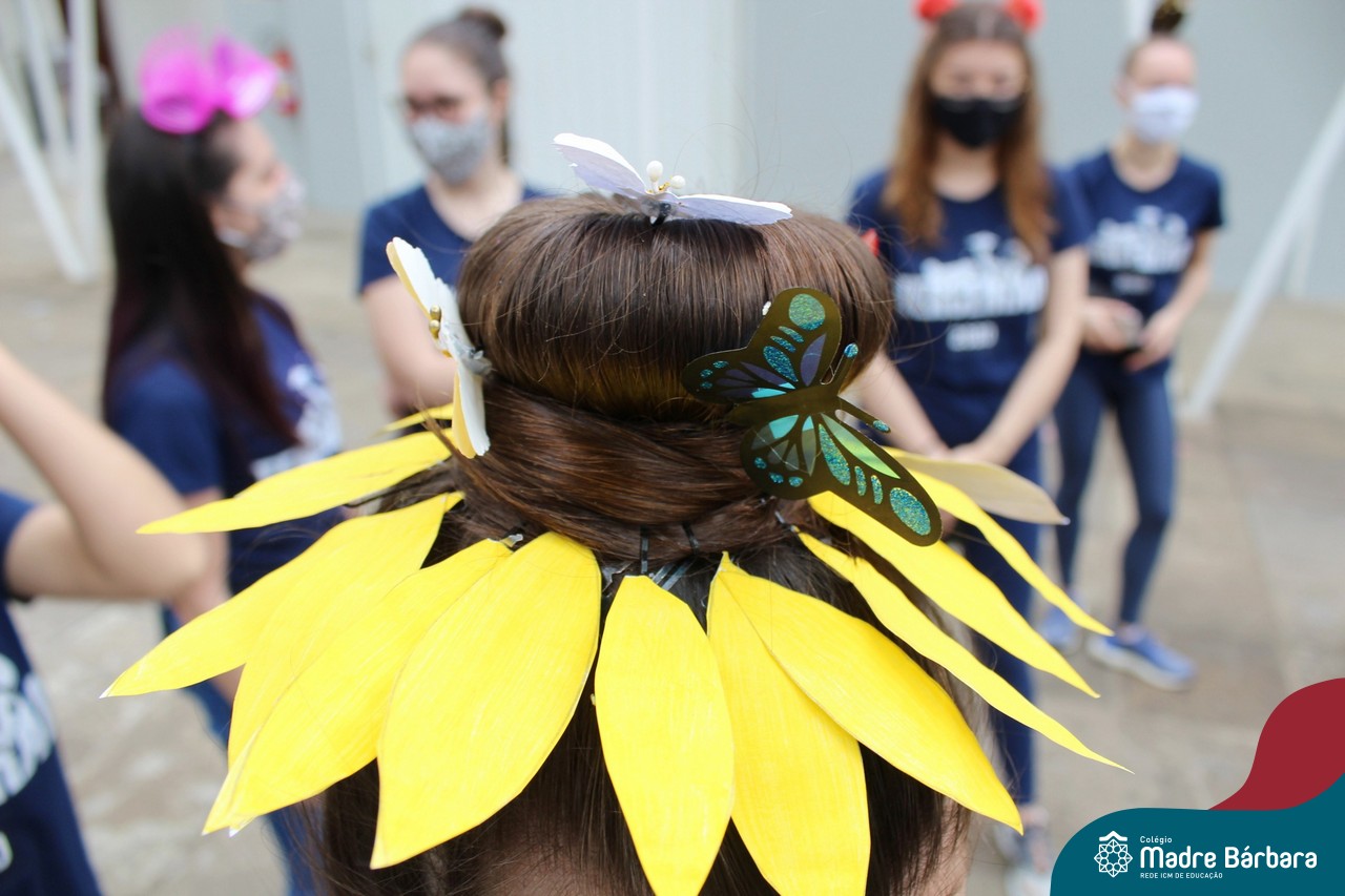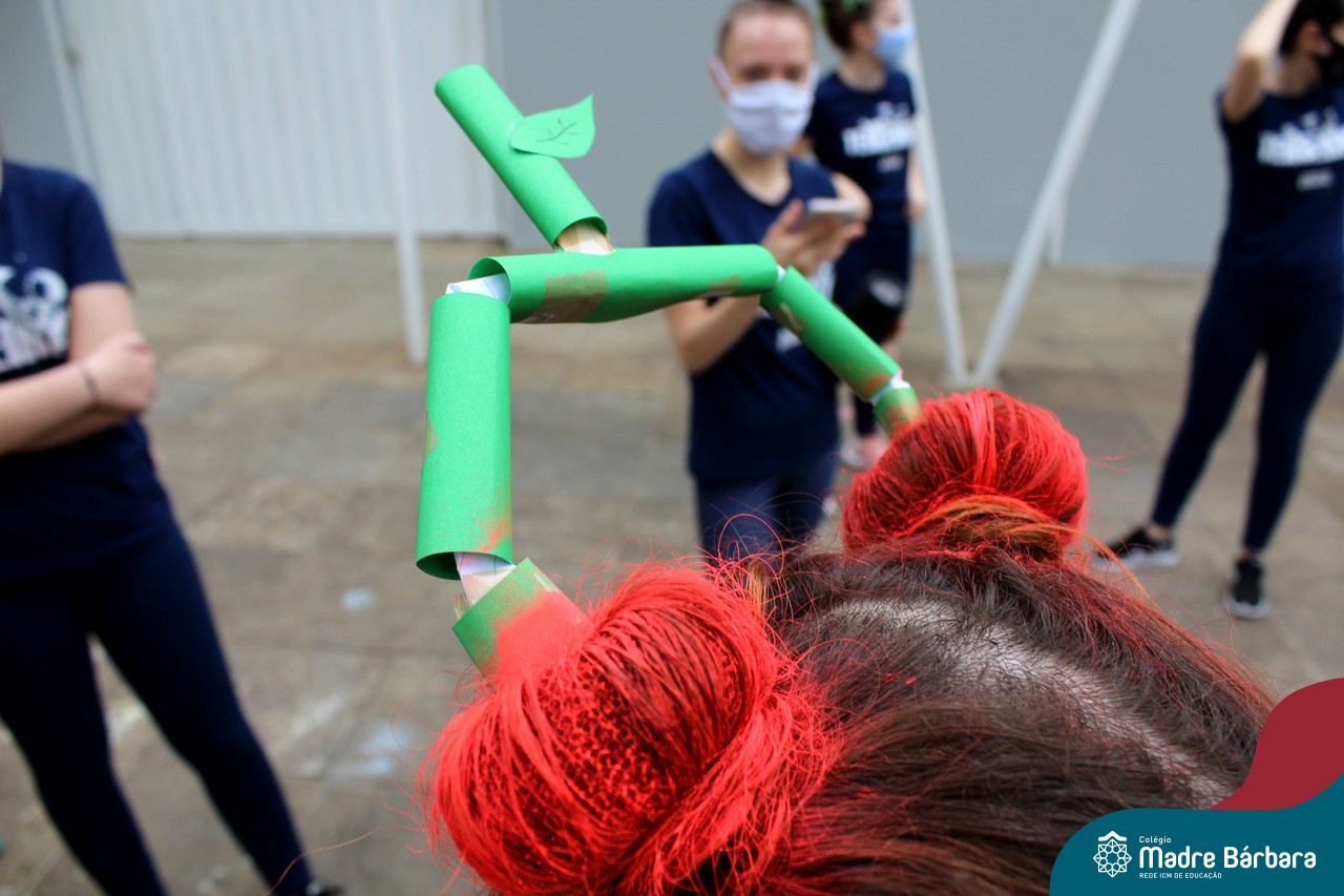 A turma do Terceirão aproveitou o retorno presencial para realizar uma atividade que está virando tradição para os formandos. O Dia do Penteado Maluco ocorreu separadamente com o Grupo A e B de alunos, em duas sextas-feiras. Foi momento para ousar e colorir muito as cabeças com objetos criativos.