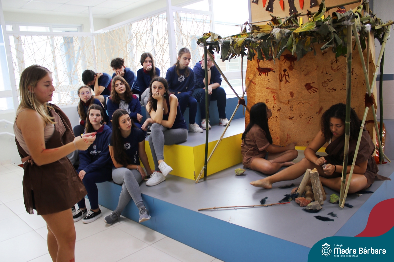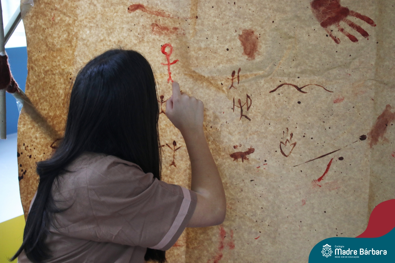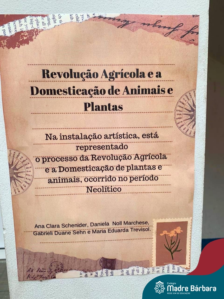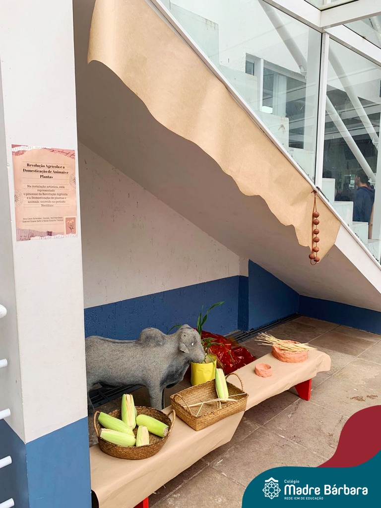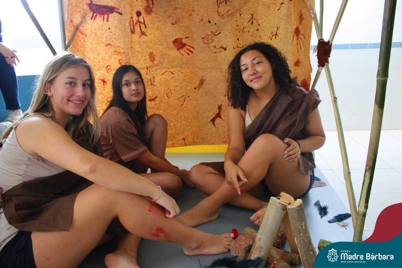 Estudantes do 1º ano do Ensino Médio foram desafiados a criar instalações artísticas em Núcleo de Estudos em História, orientados pela professora Juciane Sehn, envolvendo a História mais Antiga da Humanidade, convencionalmente chamada de Pré-História. A proposta incluía a investigação científica do tema a ser apresentado em grupos, a montagem de instalações provocativas, que ilustrassem diferentes interações humanas com o ambiente ao longo da História mais antiga e a comunicação do conteúdo investigado. Genialidade, capacidade investigativa e criativa foram alguns dos resultados dos trabalhos apresentados!
