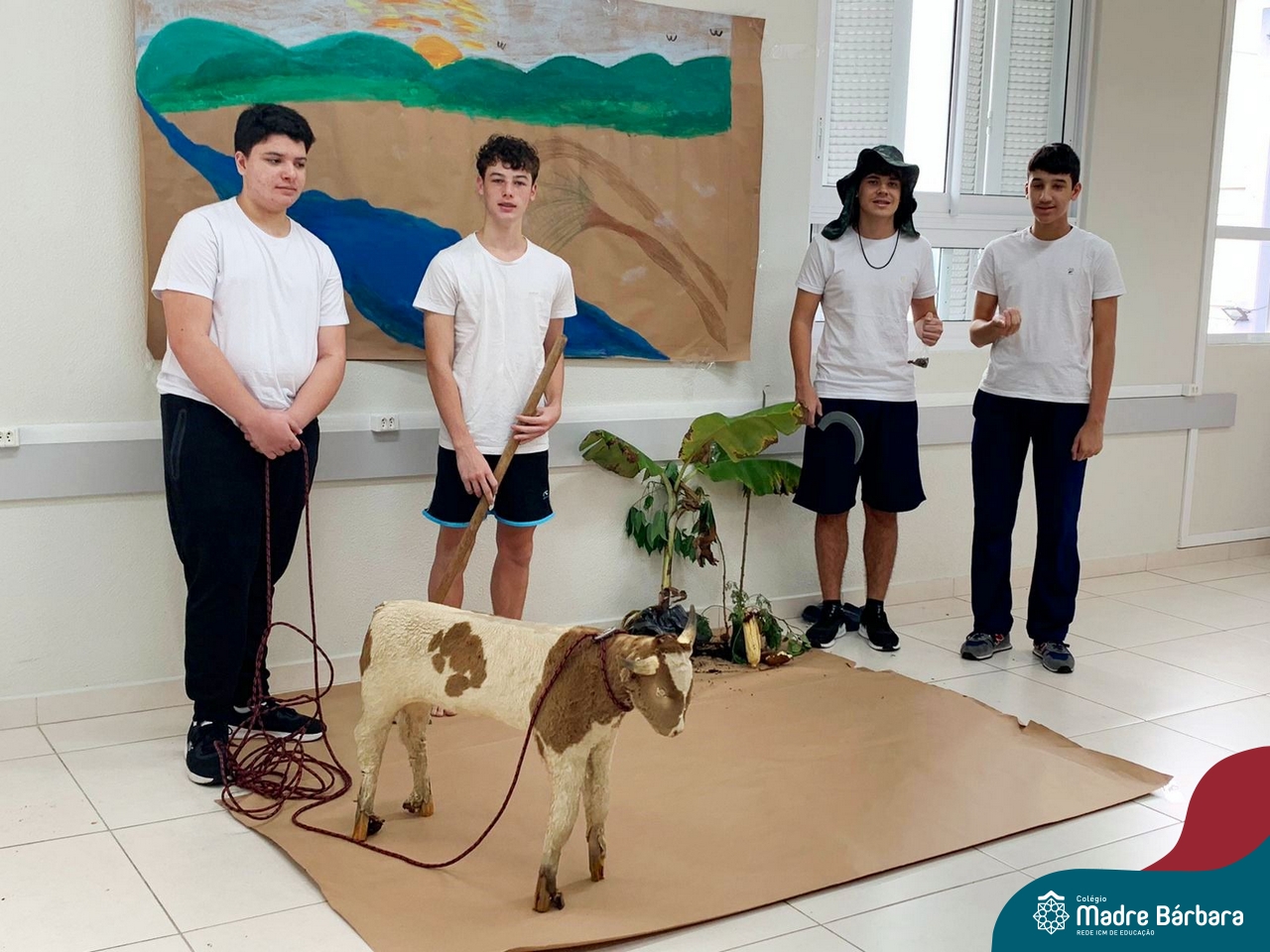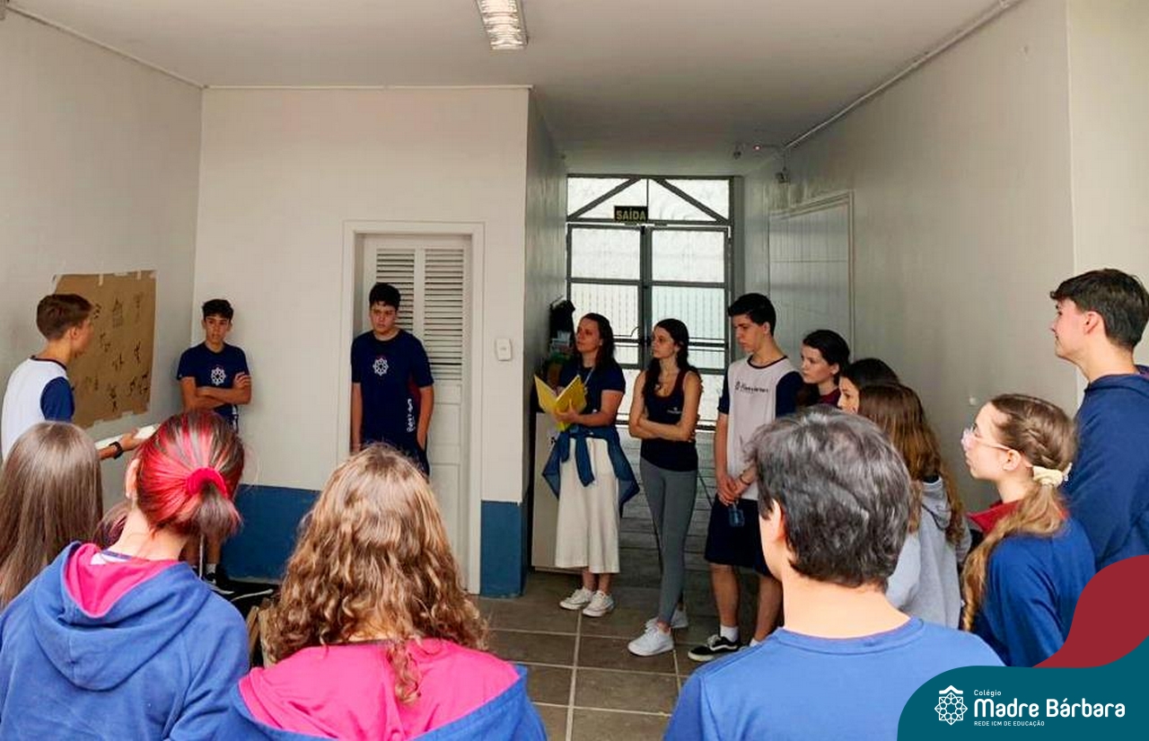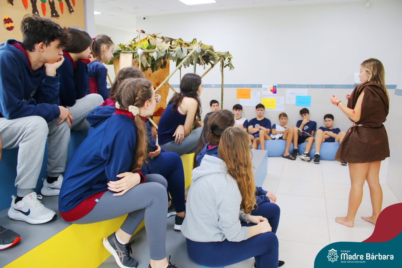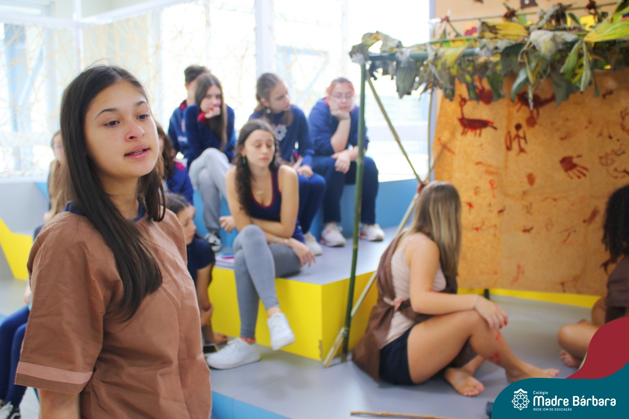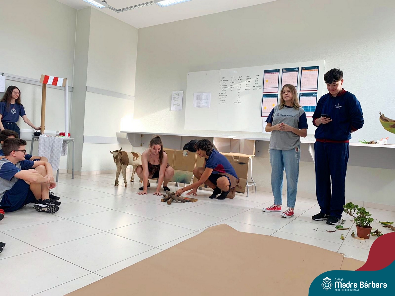 Estudantes do 1º ano do Ensino Médio foram desafiados a criar instalações artísticas em Núcleo de Estudos em História, orientados pela professora Juciane Sehn, envolvendo a História mais Antiga da Humanidade, convencionalmente chamada de Pré-História. A proposta incluía a investigação científica do tema a ser apresentado em grupos, a montagem de instalações provocativas, que ilustrassem diferentes interações humanas com o ambiente ao longo da História mais antiga e a comunicação do conteúdo investigado. Genialidade, capacidade investigativa e criativa foram alguns dos resultados dos trabalhos apresentados!