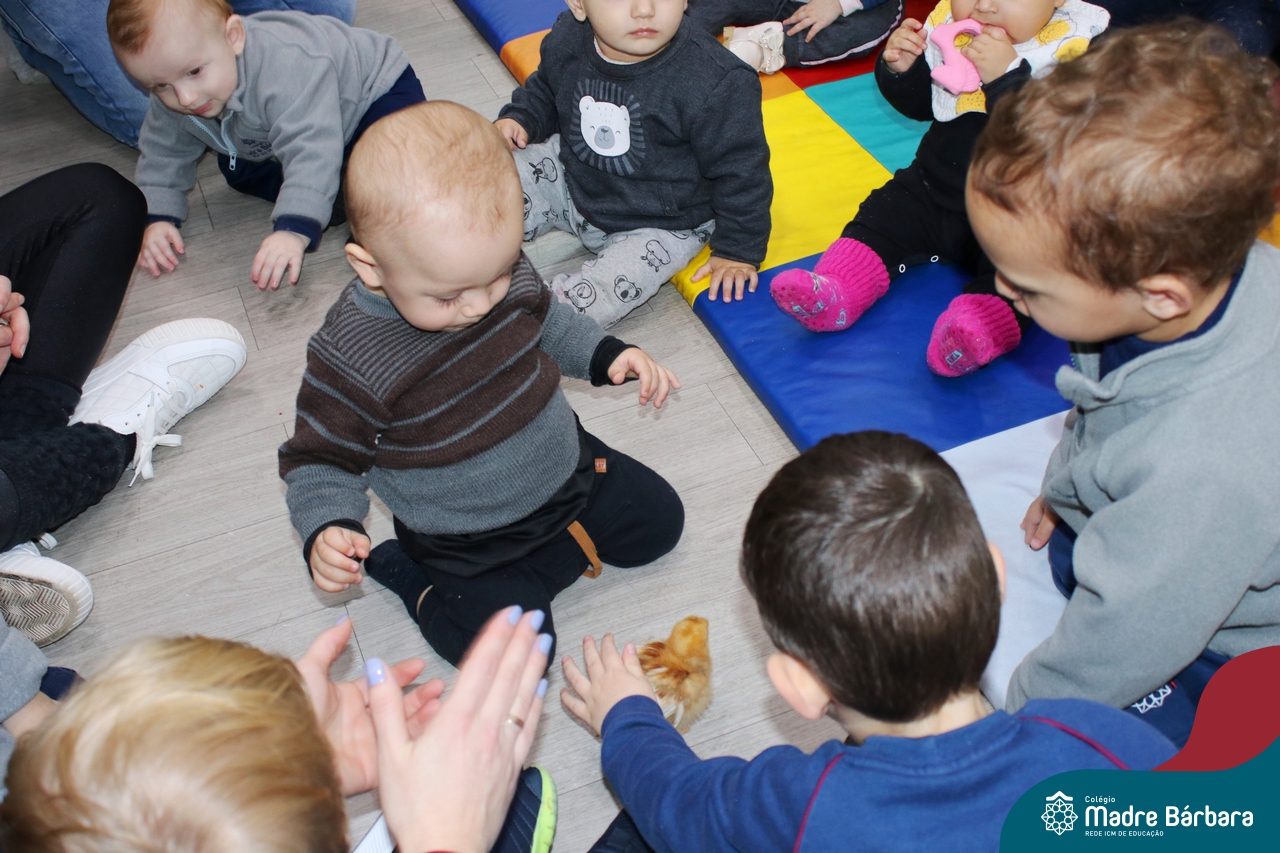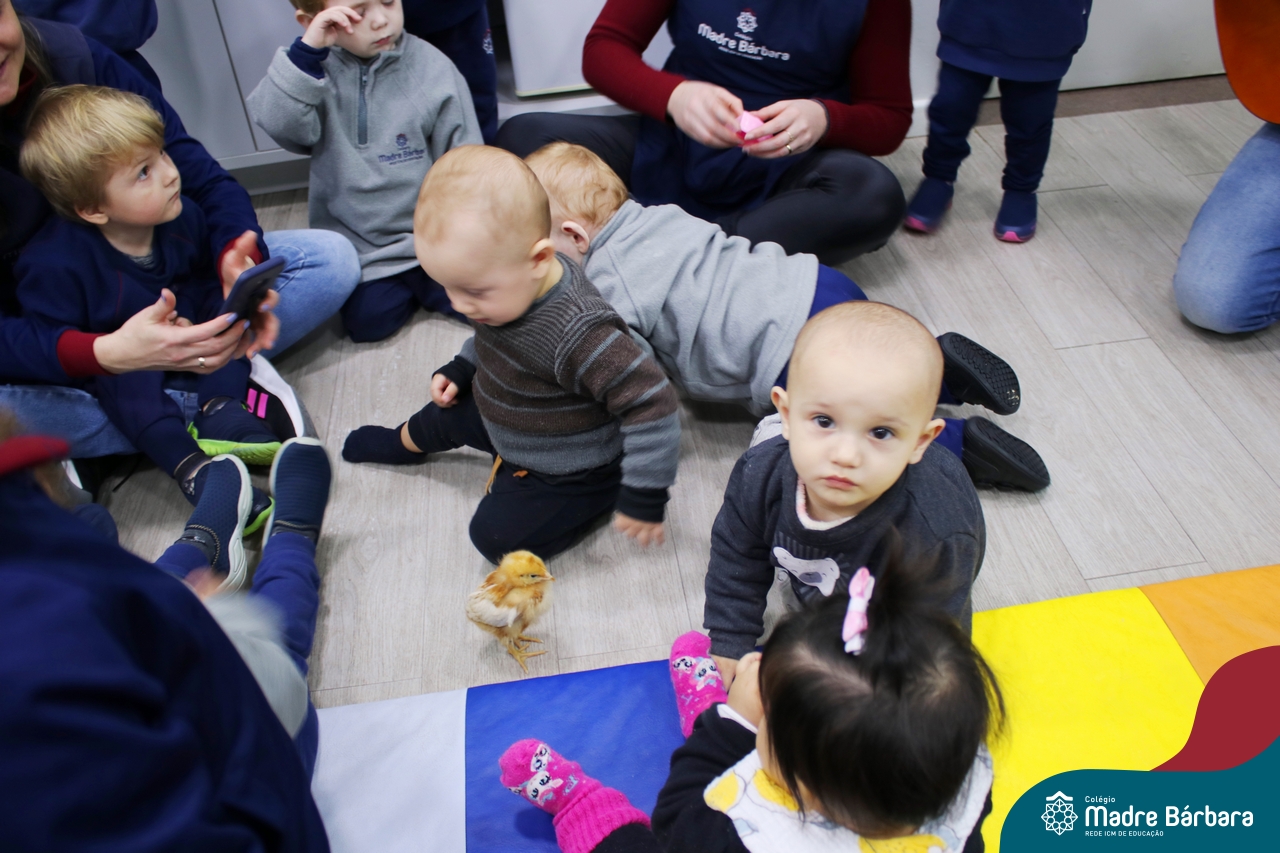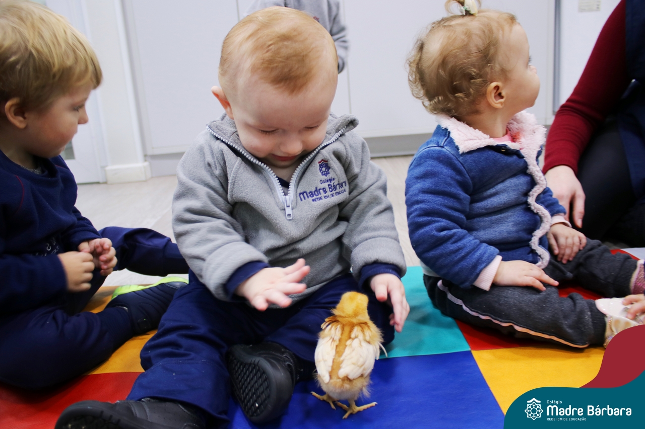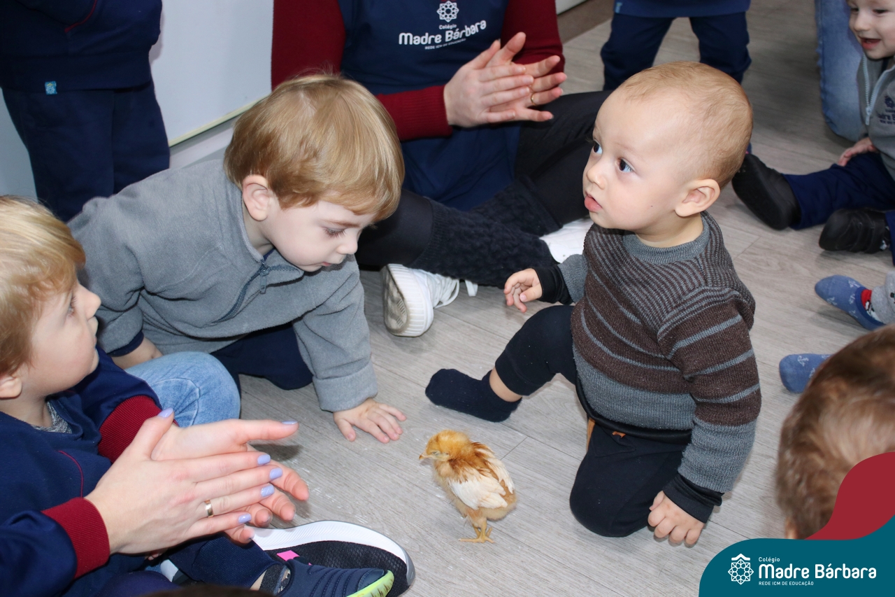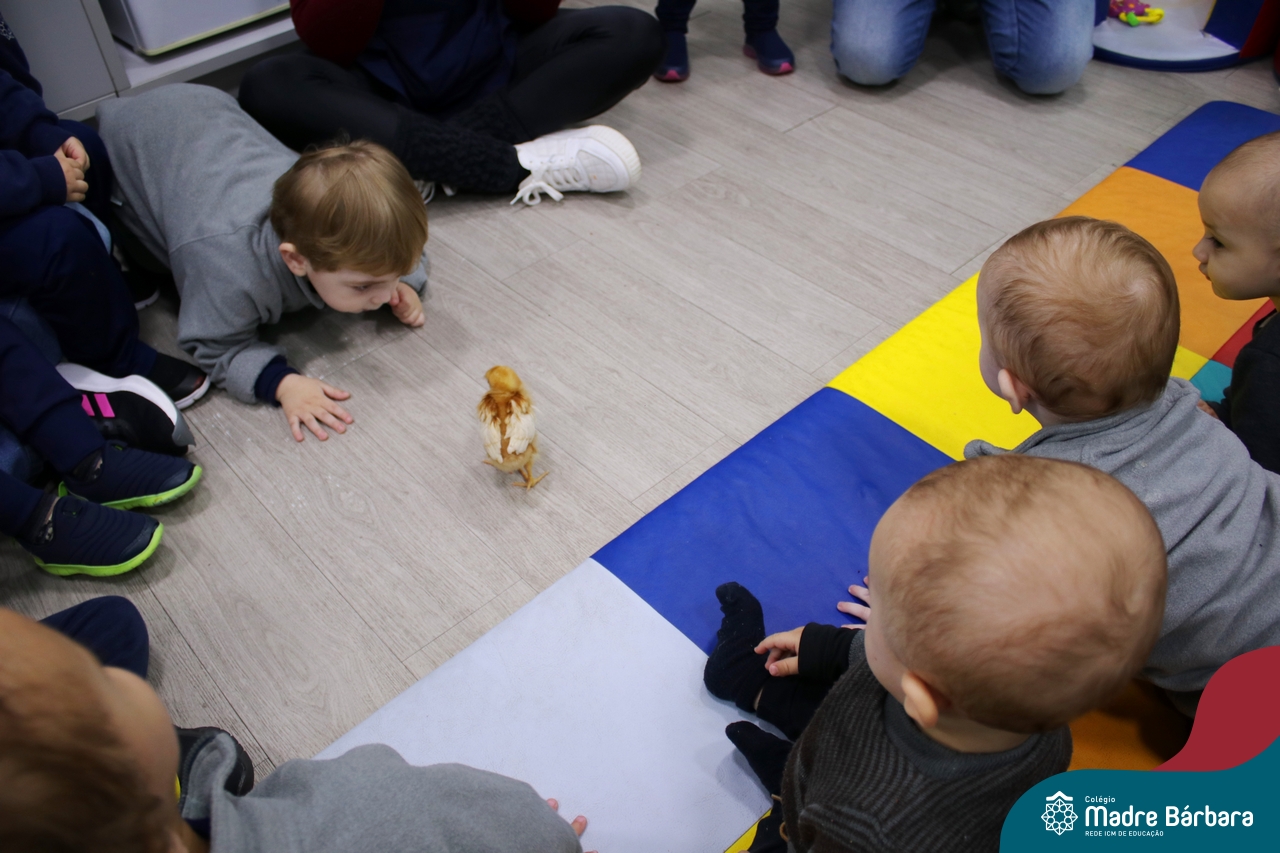 “Meu pintinho amarelinho, cabe aqui na minha mão”! Na tarde dessa terça-feira, 11.07, as turmas dos níveis 1A e 2A receberam uma visita especial. Dentro dos projetos que estão sendo desenvolvidos pelas turmas, as professoras trouxeram um pintinho. As crianças apreciaram este momento, observando as penas e cantando a música do pintinho amarelinho. Contamos com a participação do professor Gilson para tornar este momento ainda mais alegre e significativo para as crianças.
