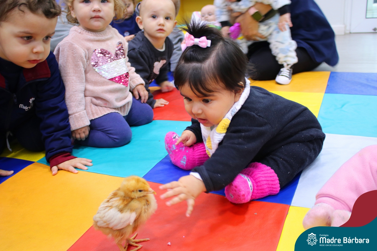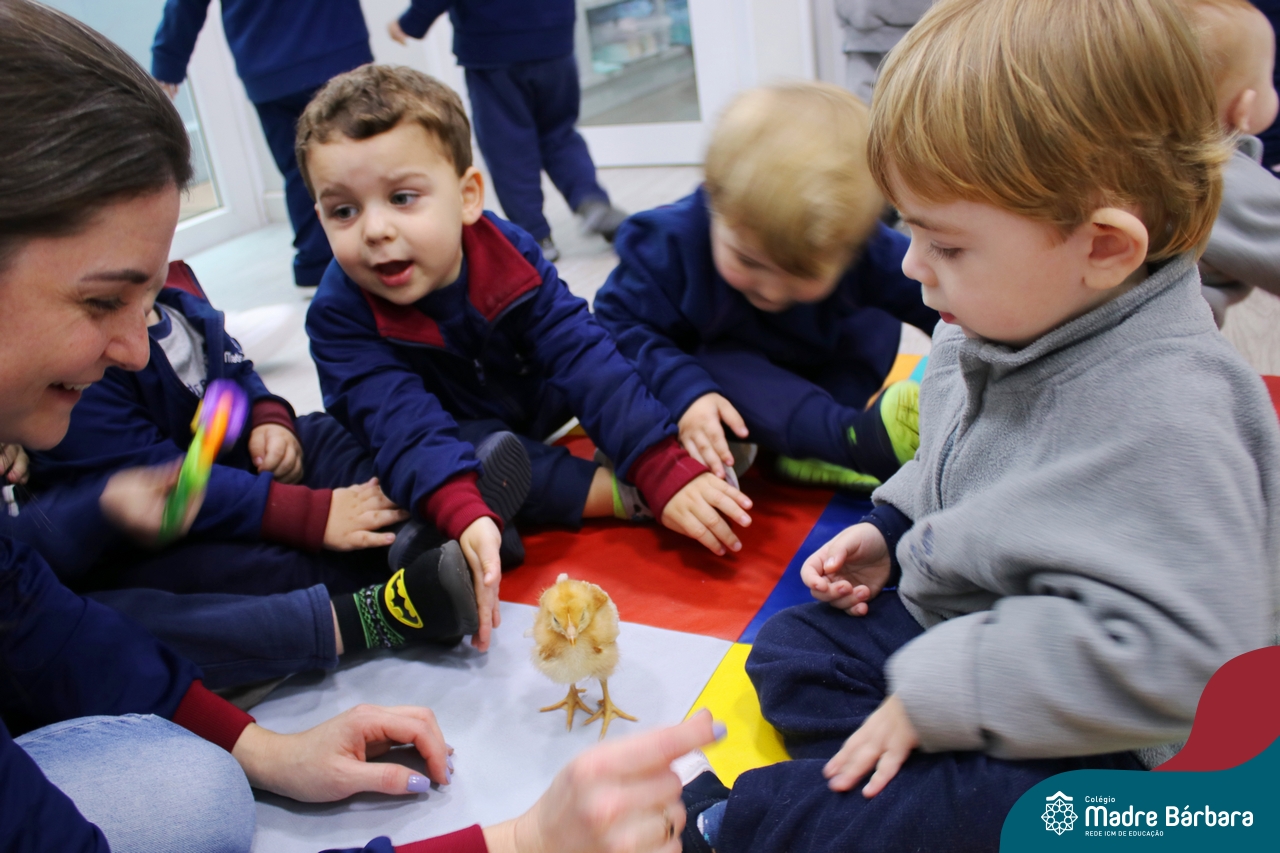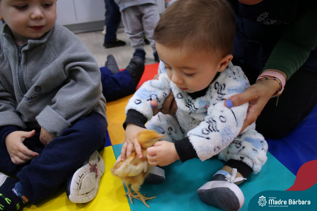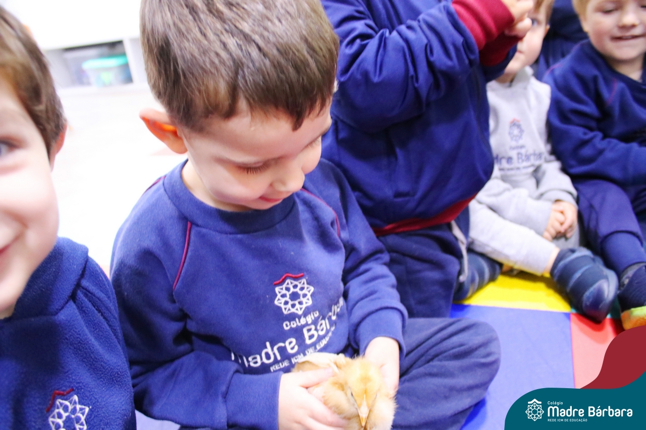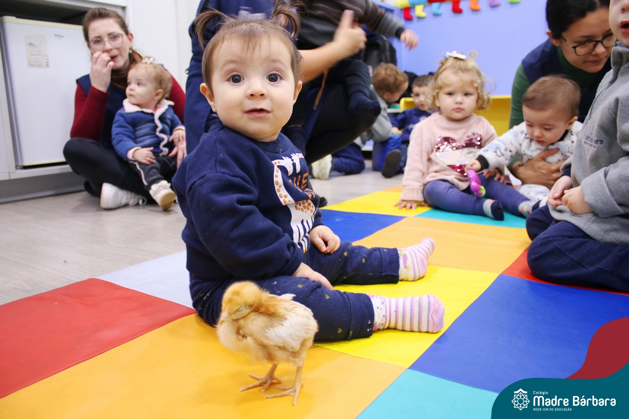 “Meu pintinho amarelinho, cabe aqui na minha mão”! Na tarde dessa terça-feira, 11.07, as turmas dos níveis 1A e 2A receberam uma visita especial. Dentro dos projetos que estão sendo desenvolvidos pelas turmas, as professoras trouxeram um pintinho. As crianças apreciaram este momento, observando as penas e cantando a música do pintinho amarelinho. Contamos com a participação do professor Gilson para tornar este momento ainda mais alegre e significativo para as crianças.