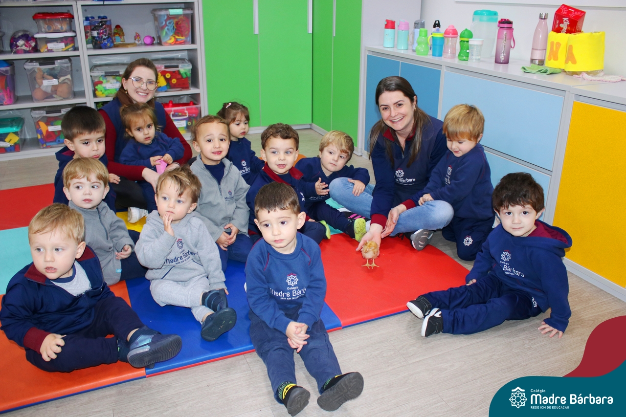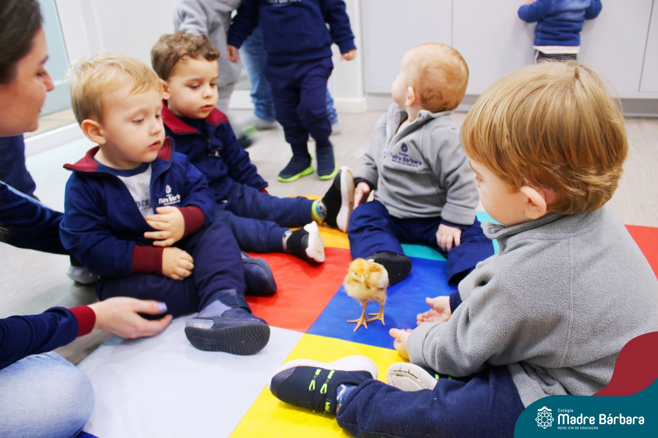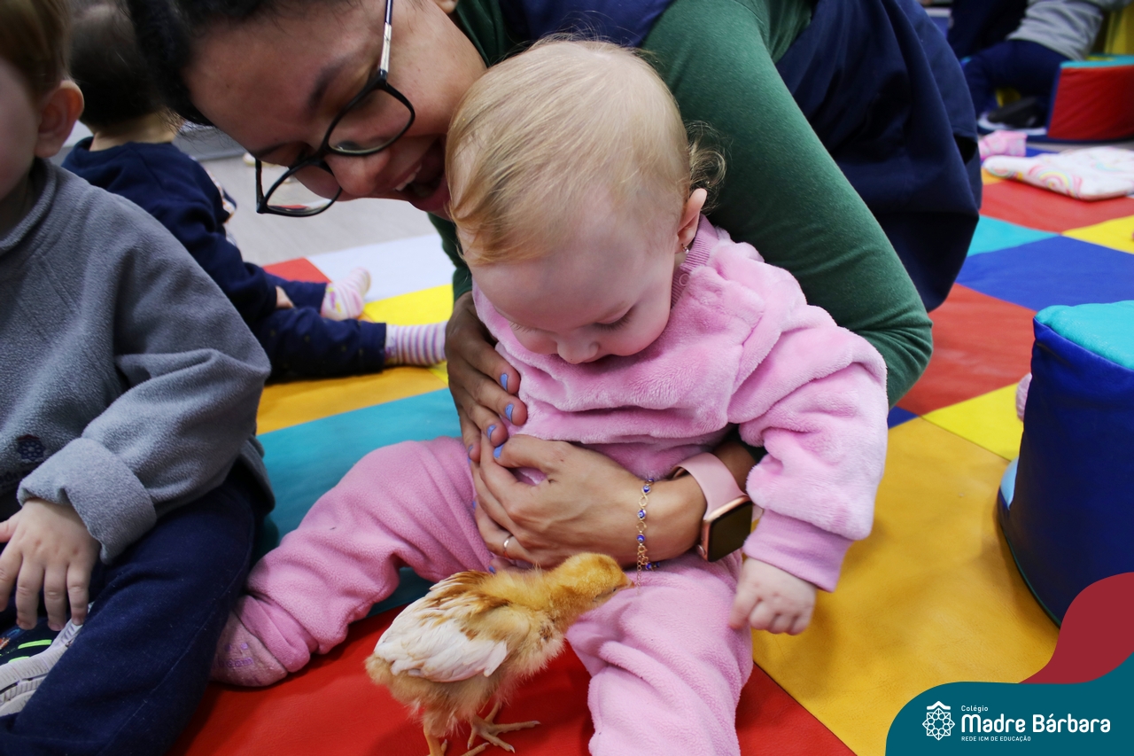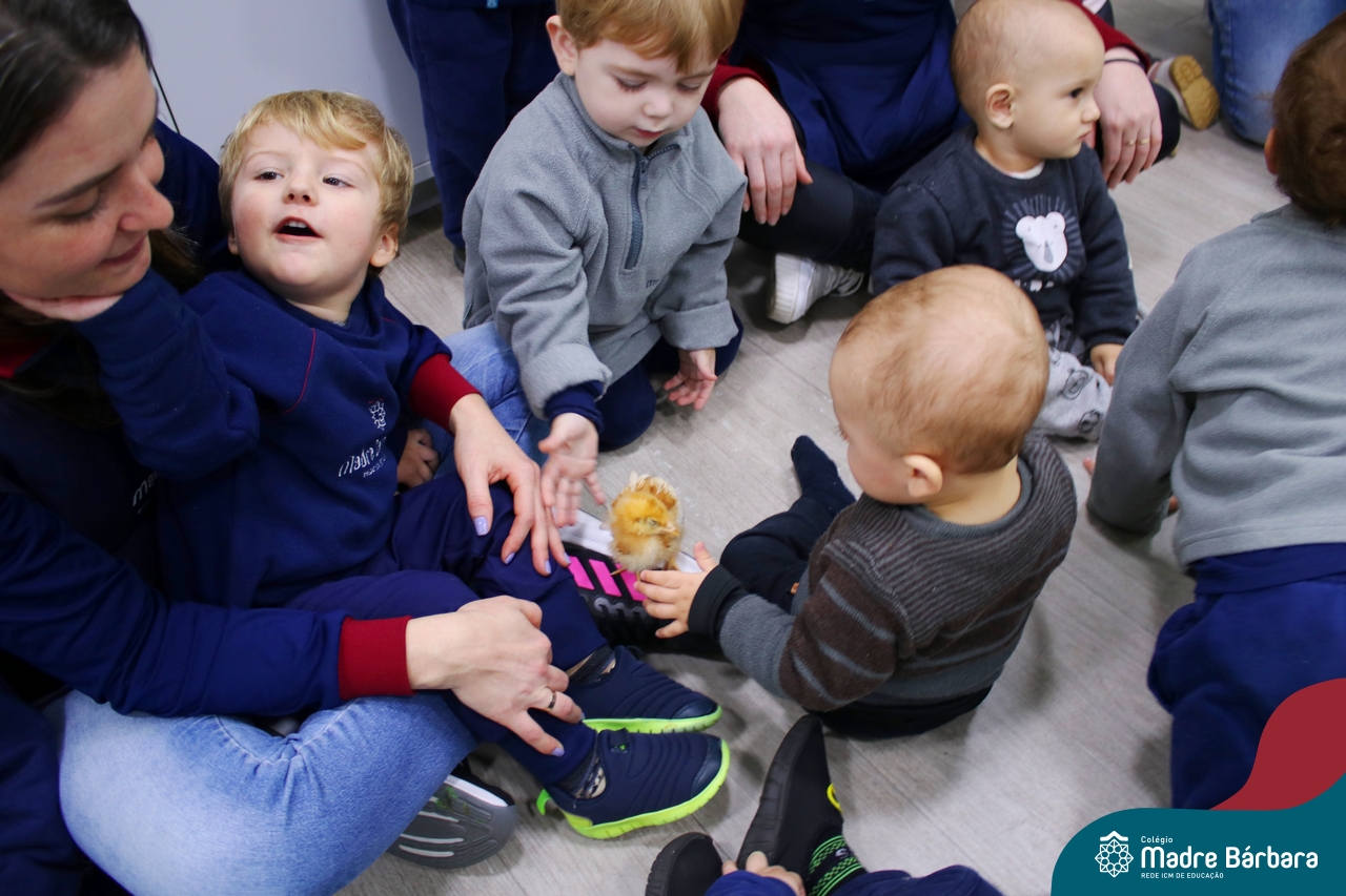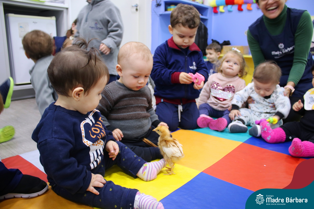 “Meu pintinho amarelinho, cabe aqui na minha mão”! Na tarde dessa terça-feira, 11.07, as turmas dos níveis 1A e 2A receberam uma visita especial. Dentro dos projetos que estão sendo desenvolvidos pelas turmas, as professoras trouxeram um pintinho. As crianças apreciaram este momento, observando as penas e cantando a música do pintinho amarelinho. Contamos com a participação do professor Gilson para tornar este momento ainda mais alegre e significativo para as crianças.