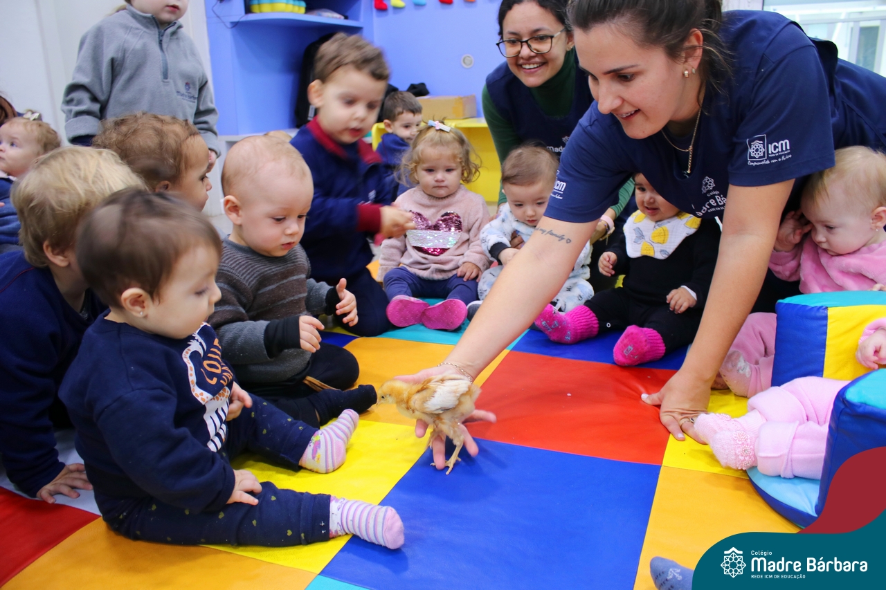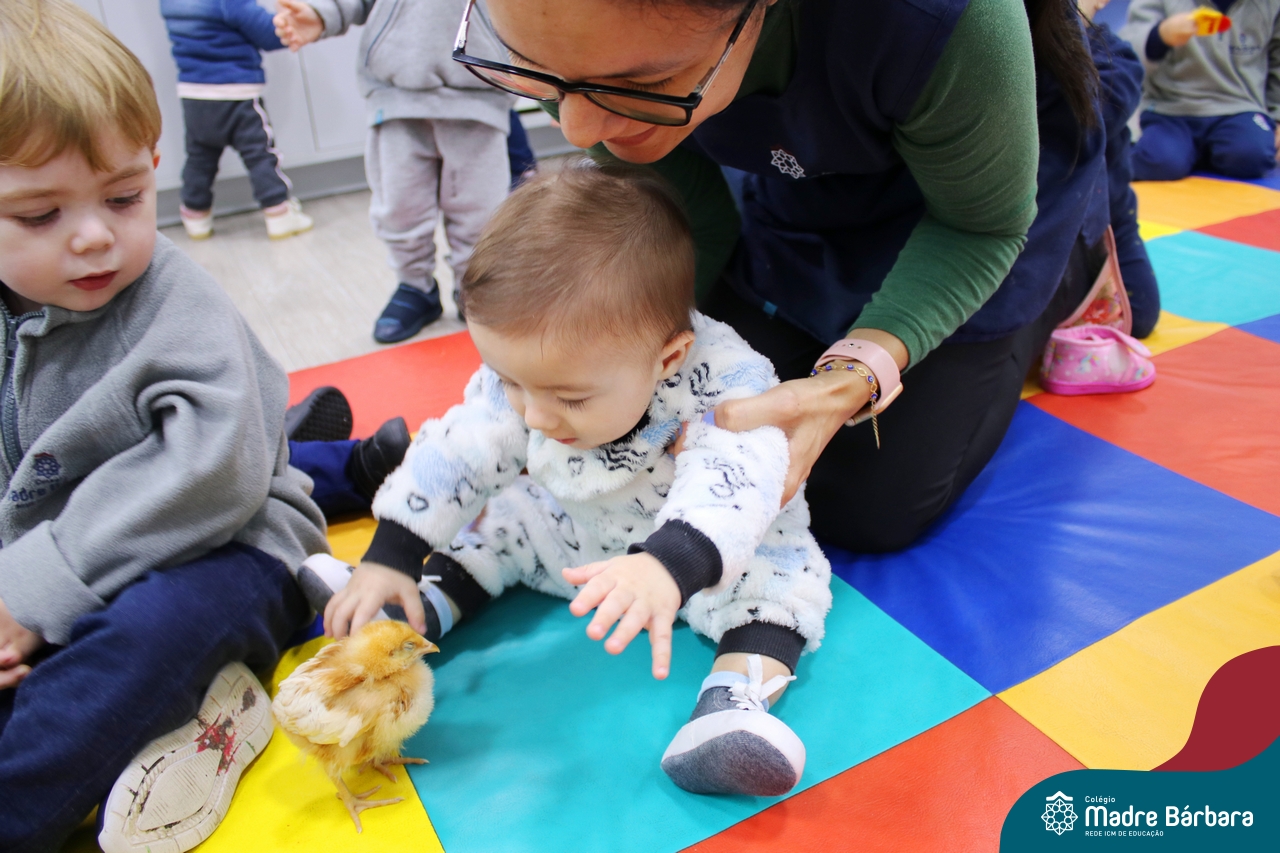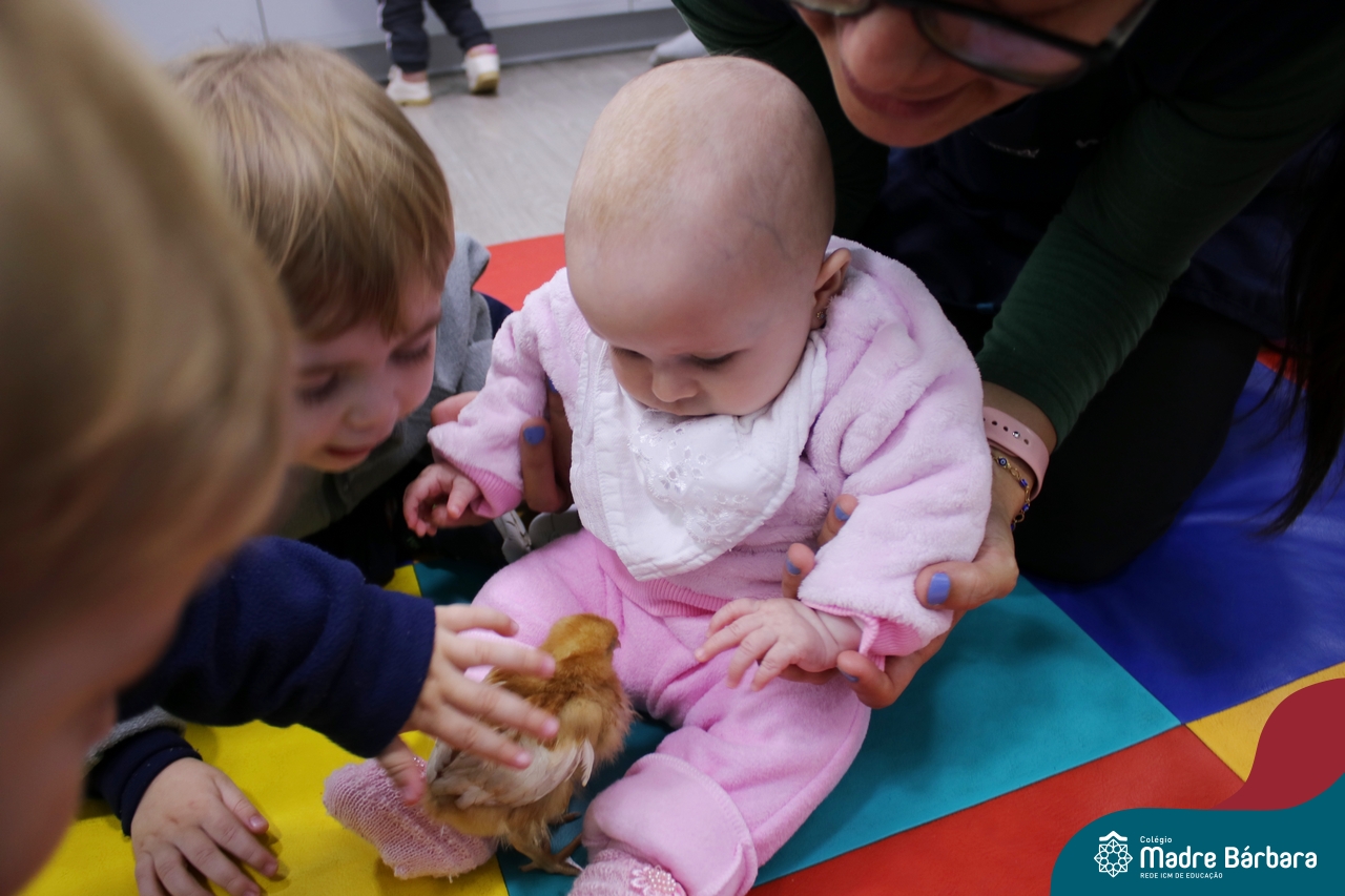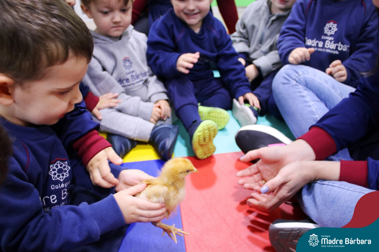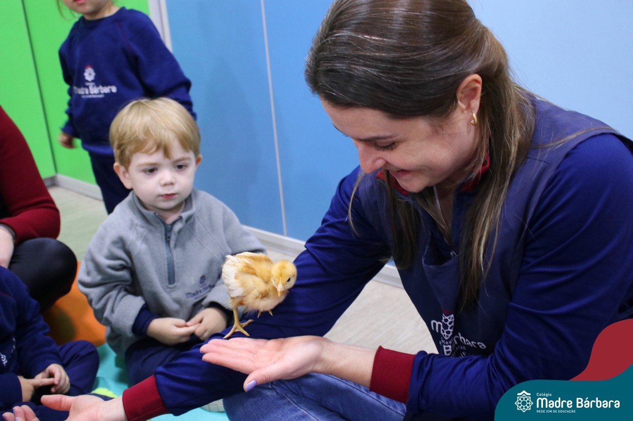 “Meu pintinho amarelinho, cabe aqui na minha mão”! Na tarde dessa terça-feira, 11.07, as turmas dos níveis 1A e 2A receberam uma visita especial. Dentro dos projetos que estão sendo desenvolvidos pelas turmas, as professoras trouxeram um pintinho. As crianças apreciaram este momento, observando as penas e cantando a música do pintinho amarelinho. Contamos com a participação do professor Gilson para tornar este momento ainda mais alegre e significativo para as crianças.