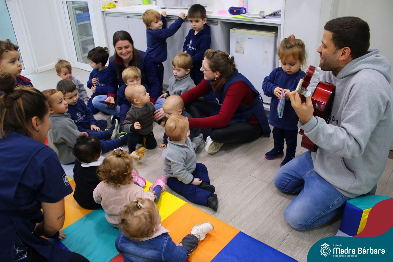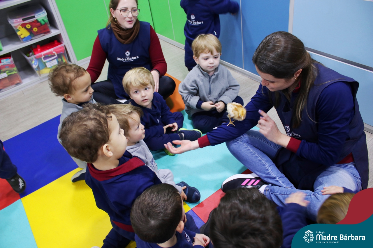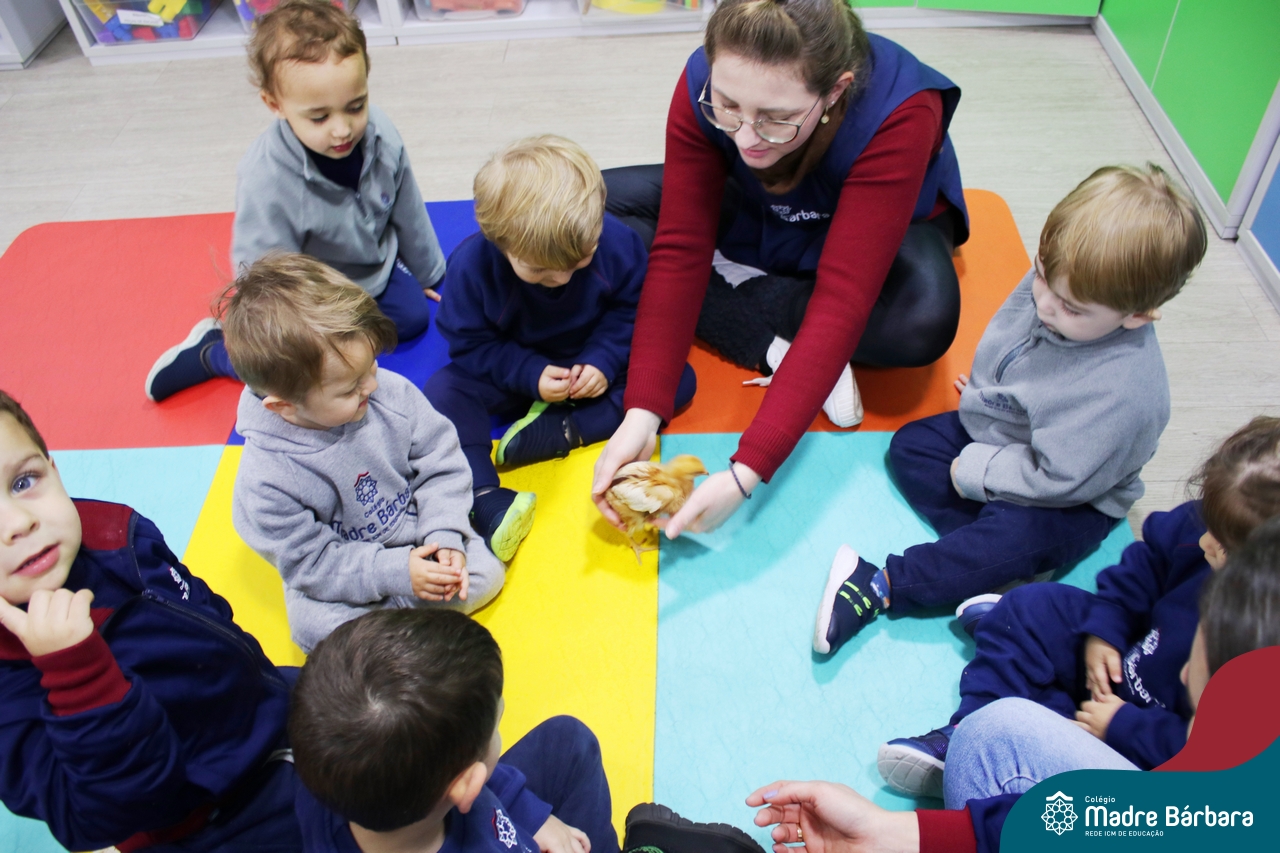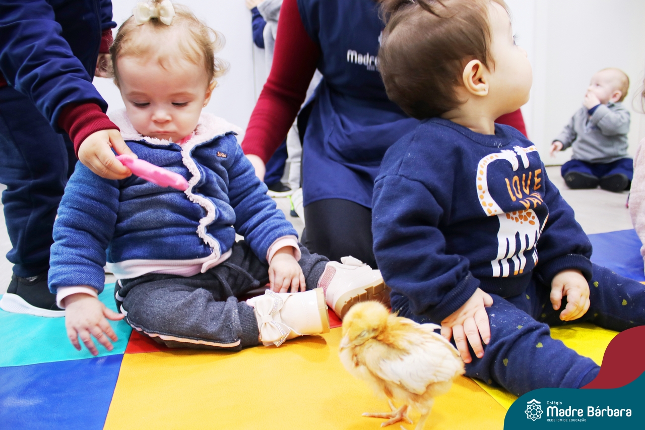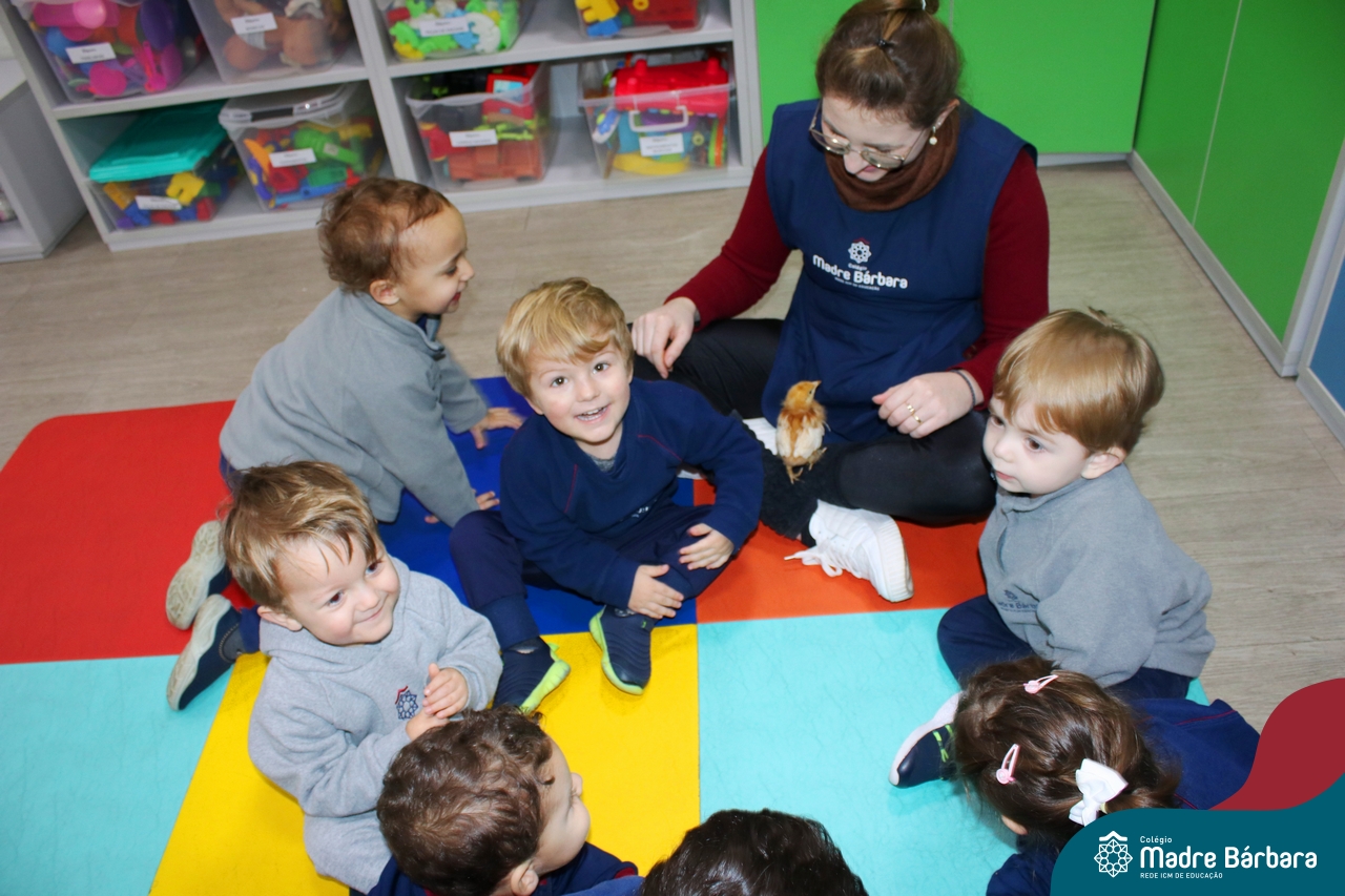 “Meu pintinho amarelinho, cabe aqui na minha mão”! Na tarde dessa terça-feira, 11.07, as turmas dos níveis 1A e 2A receberam uma visita especial. Dentro dos projetos que estão sendo desenvolvidos pelas turmas, as professoras trouxeram um pintinho. As crianças apreciaram este momento, observando as penas e cantando a música do pintinho amarelinho. Contamos com a participação do professor Gilson para tornar este momento ainda mais alegre e significativo para as crianças.