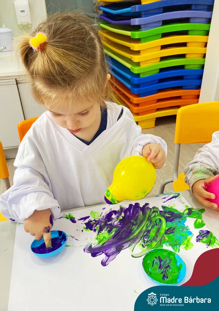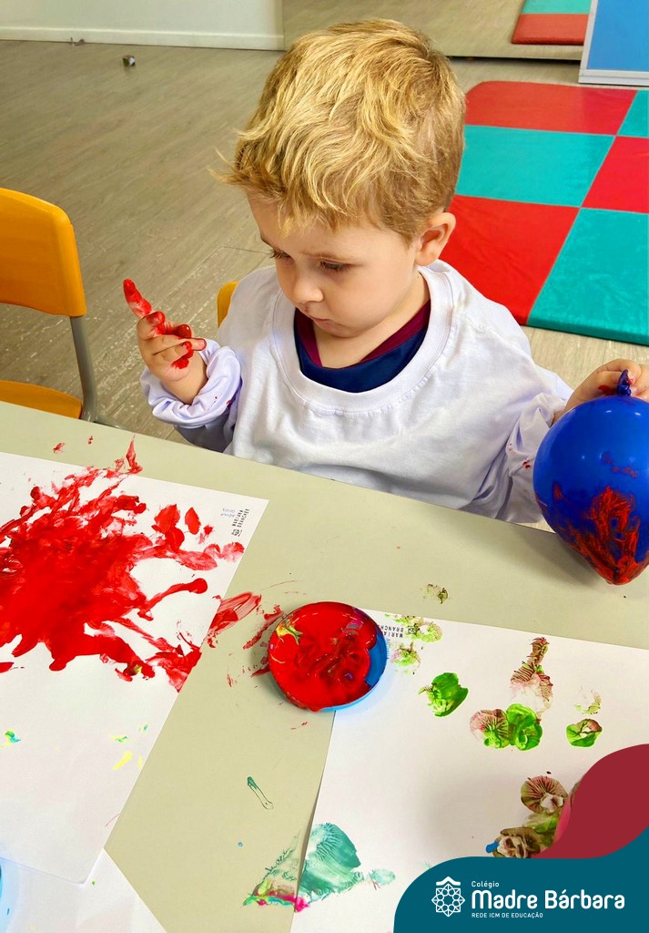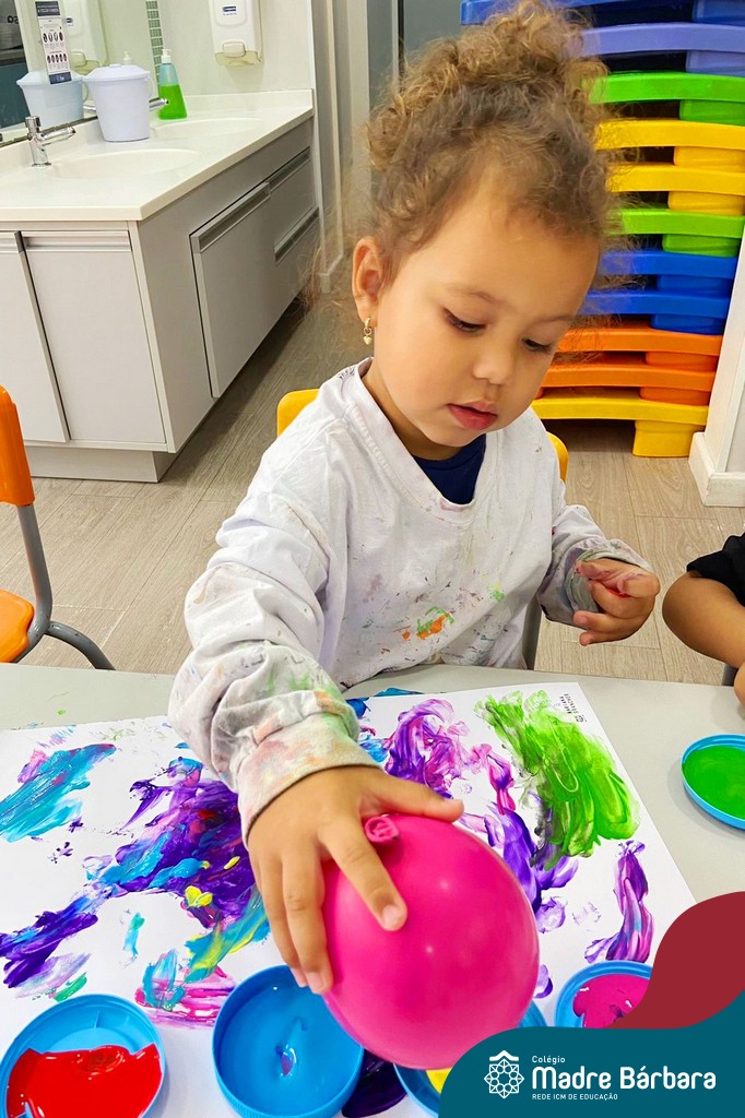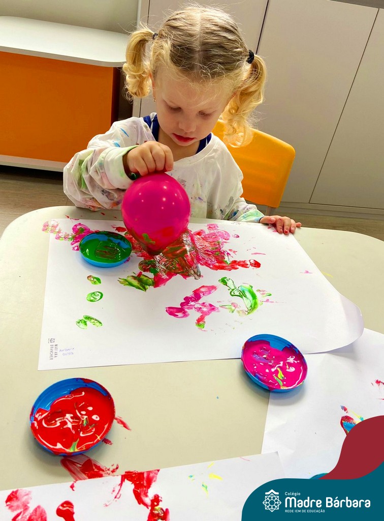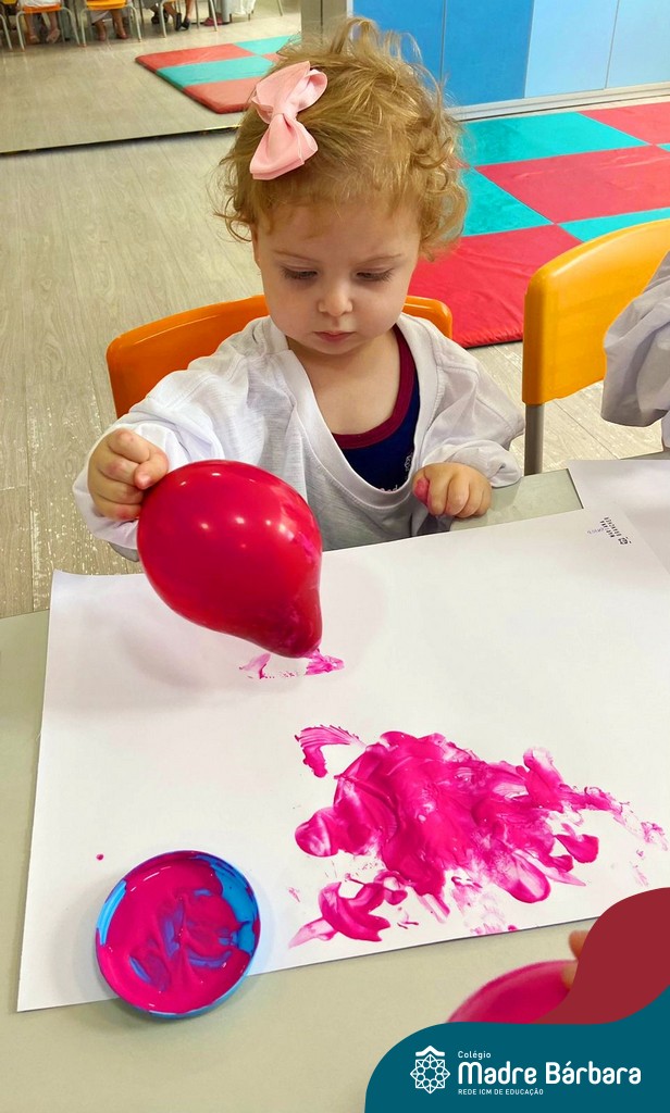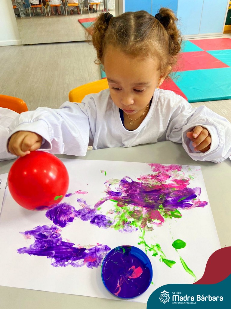 Foi ao embalo do “Balão Mágico”, que é tema do projeto de acolhida, que as crianças do Nível 2B da tarde realizaram muitas explorações envolvendo a pintura com balões e tinta. Sensação, criatividade, motricidade e formulação de hipóteses fizeram parte desta linda vivência! 🎈🌈🖌️