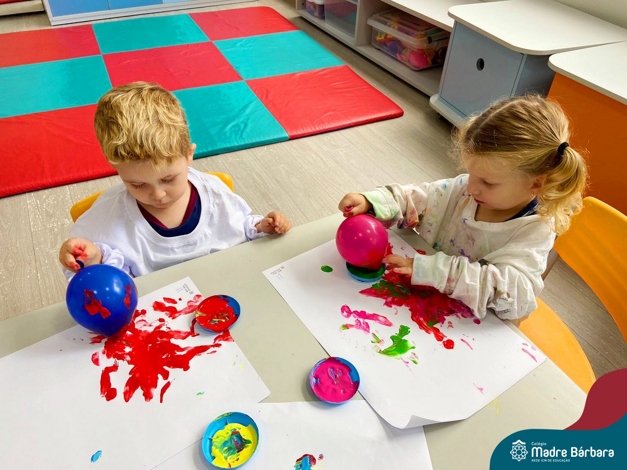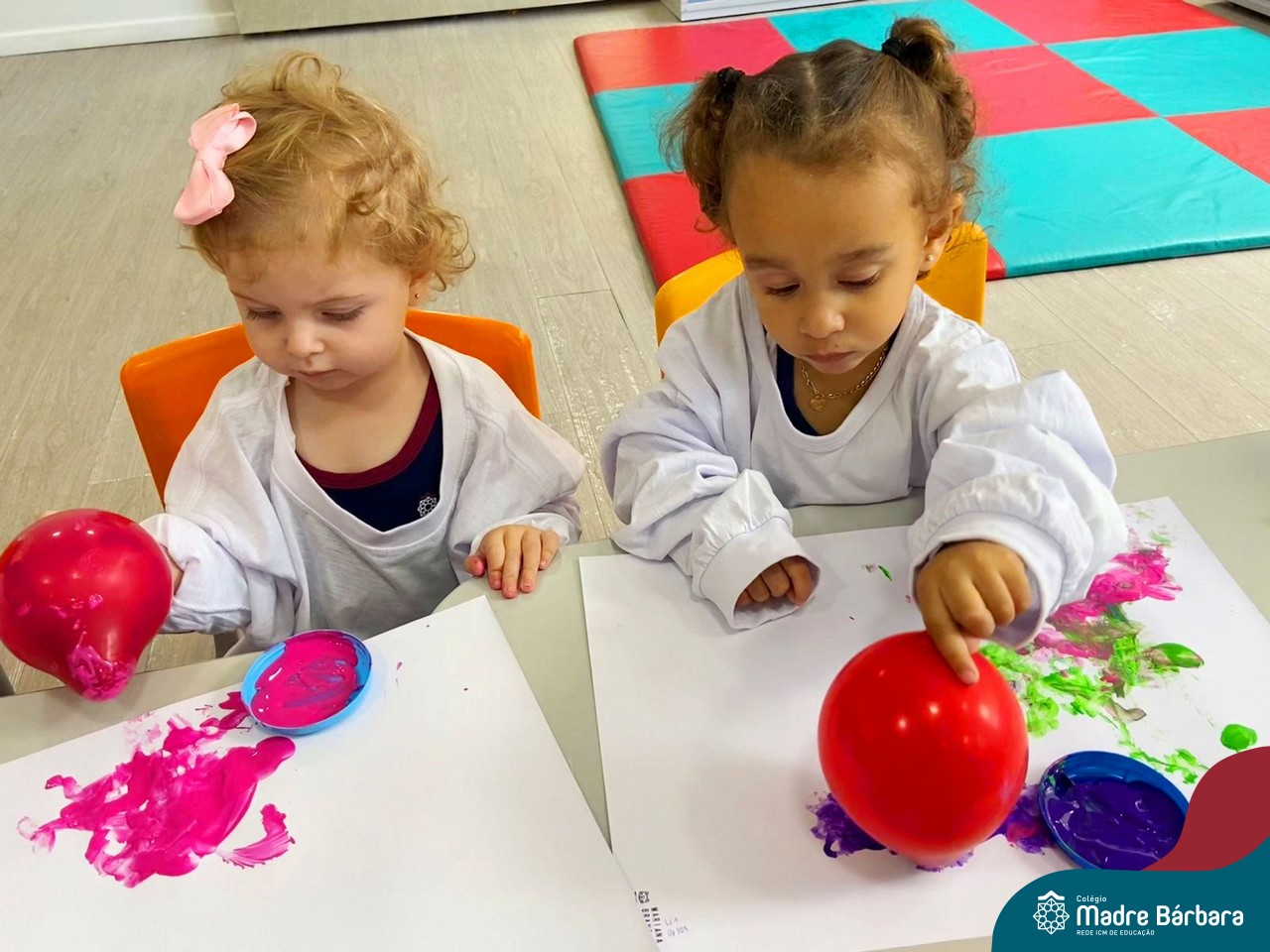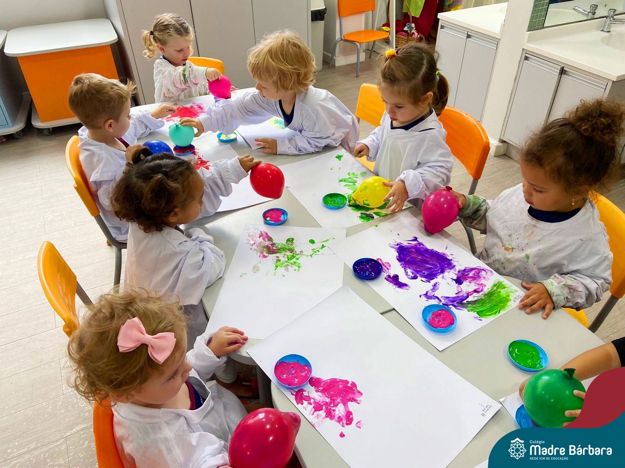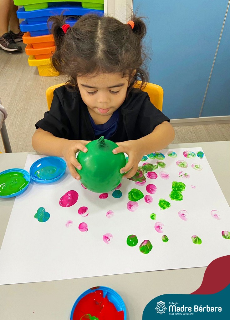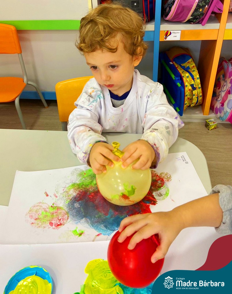 Foi ao embalo do “Balão Mágico”, que é tema do projeto de acolhida, que as crianças do Nível 2B da tarde realizaram muitas explorações envolvendo a pintura com balões e tinta. Sensação, criatividade, motricidade e formulação de hipóteses fizeram parte desta linda vivência! 🎈🌈🖌️