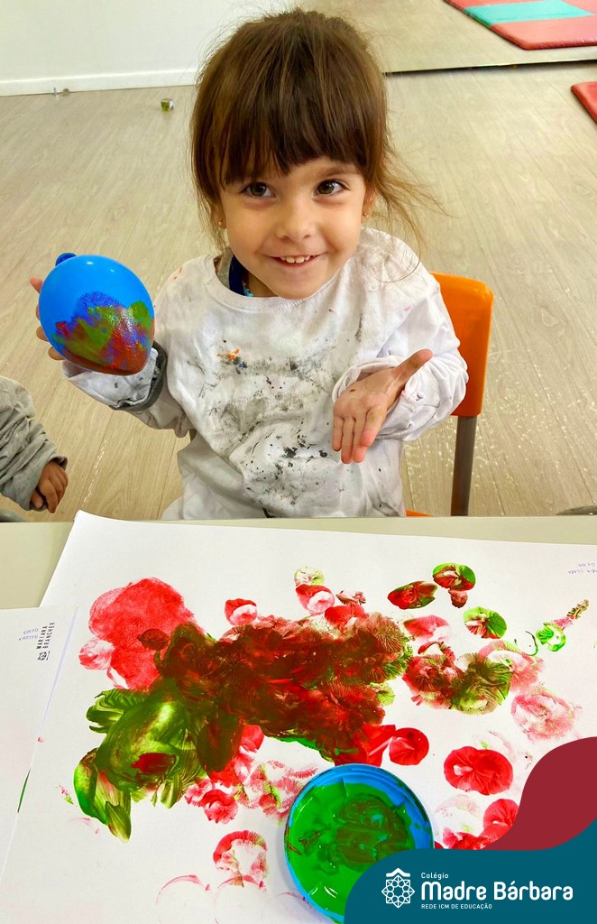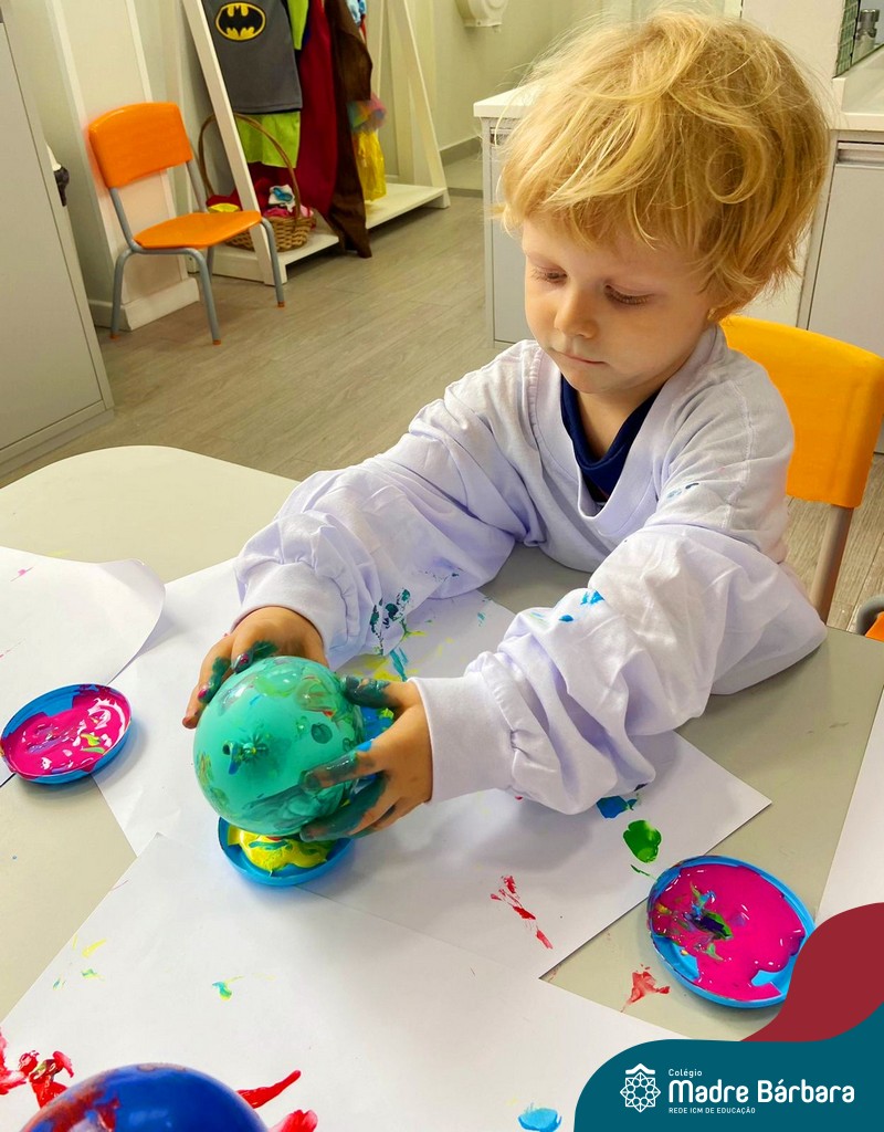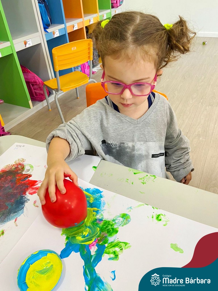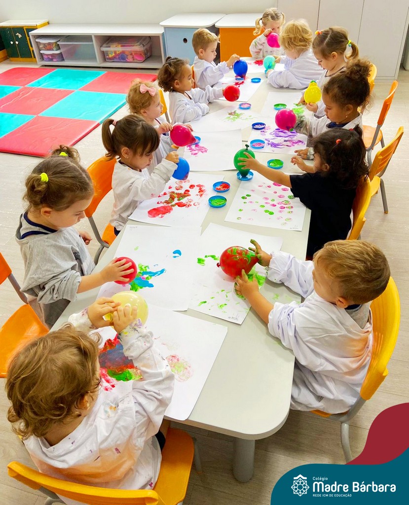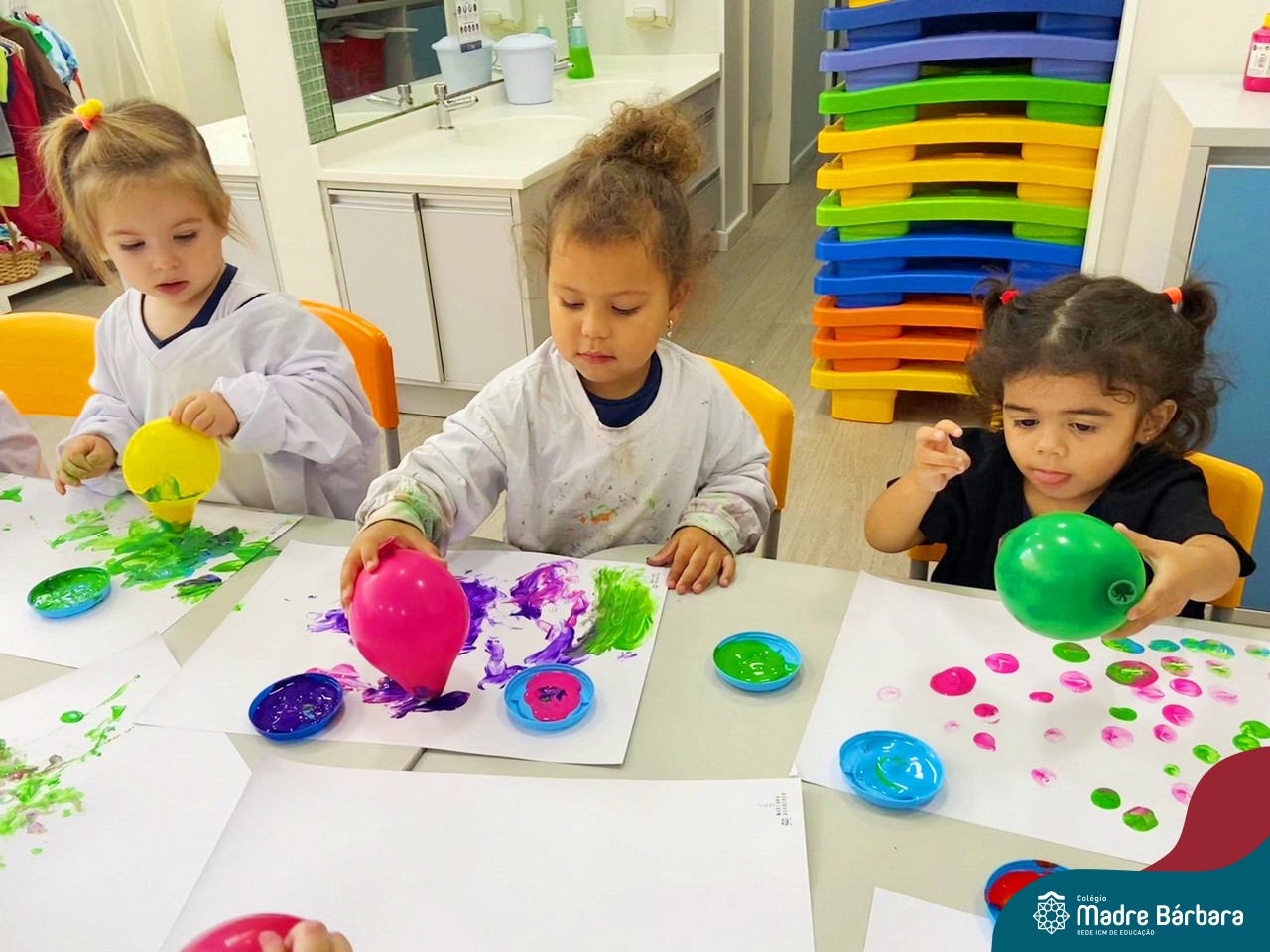 Foi ao embalo do “Balão Mágico”, que é tema do projeto de acolhida, que as crianças do Nível 2B da tarde realizaram muitas explorações envolvendo a pintura com balões e tinta. Sensação, criatividade, motricidade e formulação de hipóteses fizeram parte desta linda vivência! 🎈🌈🖌️