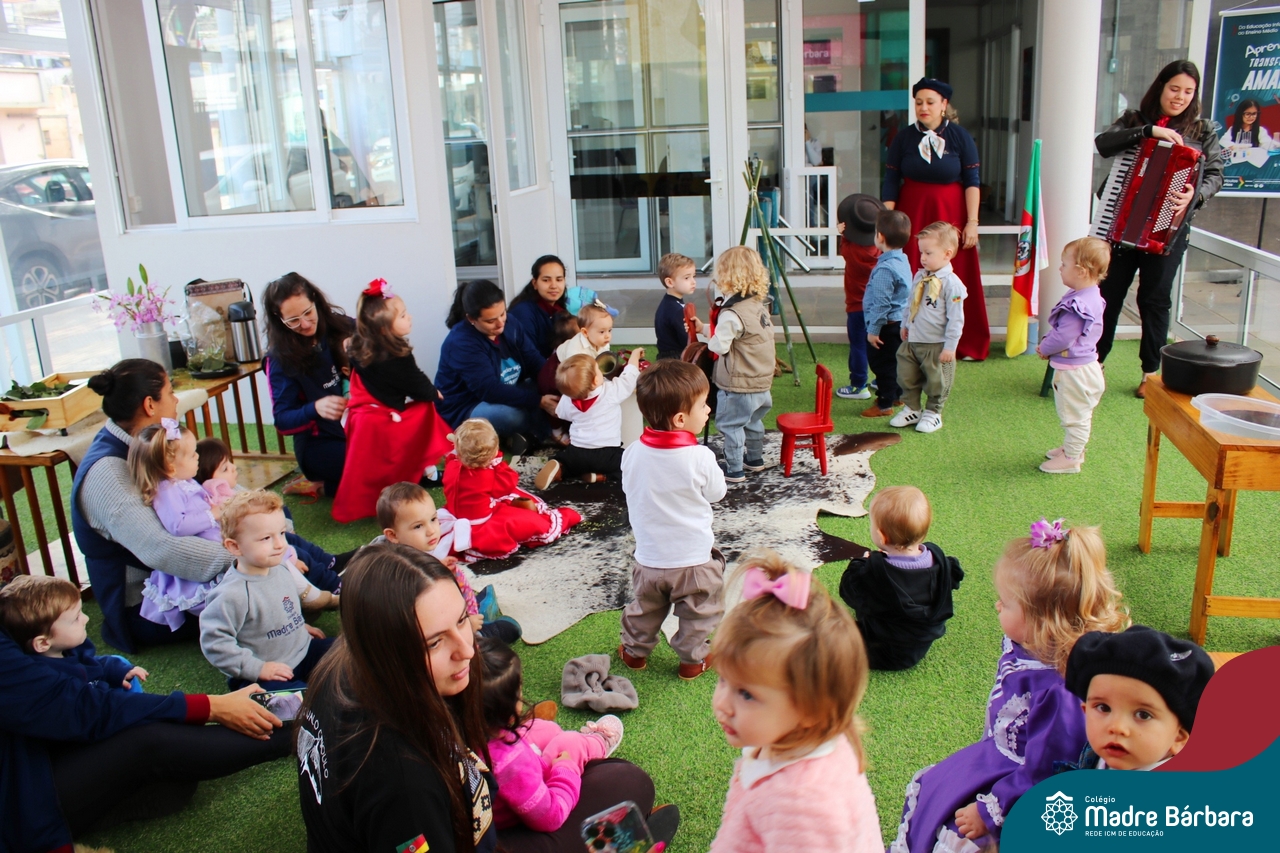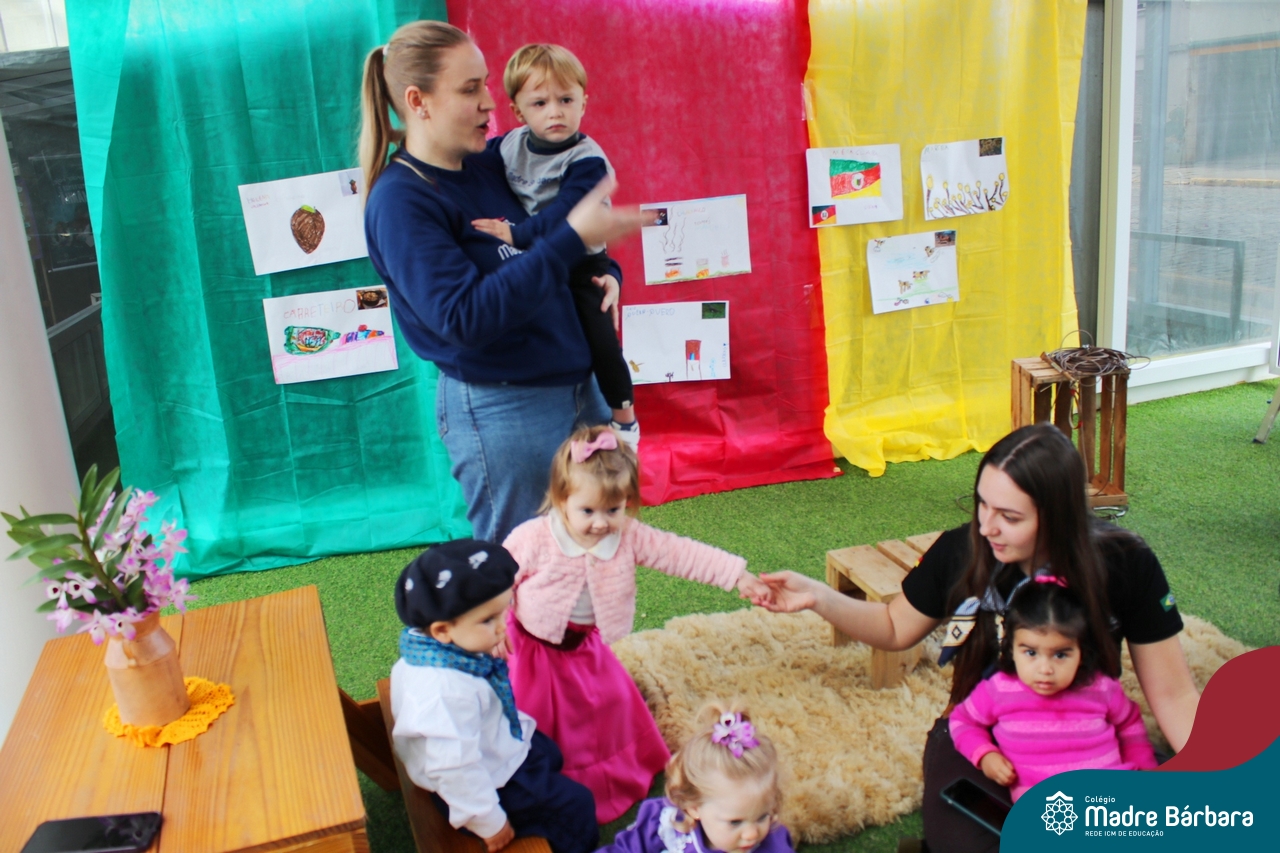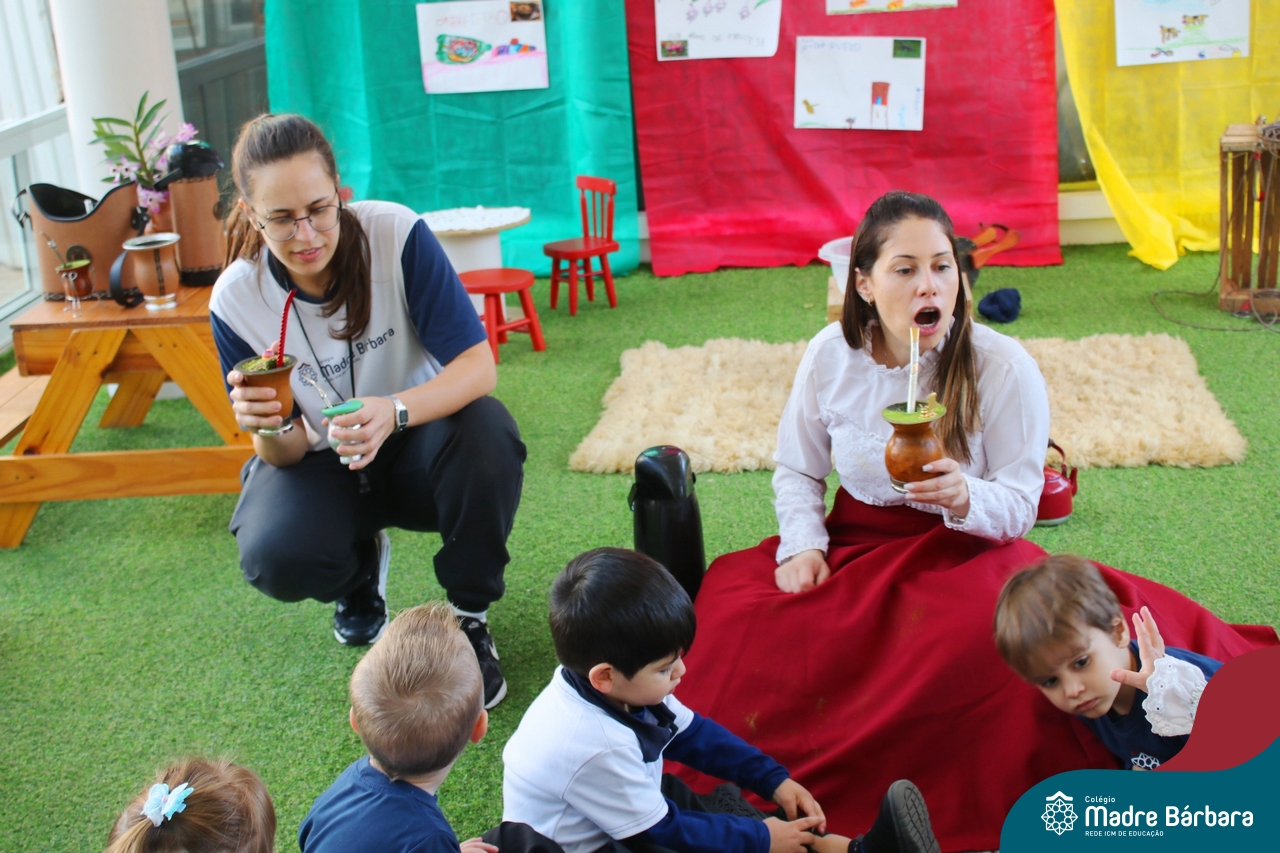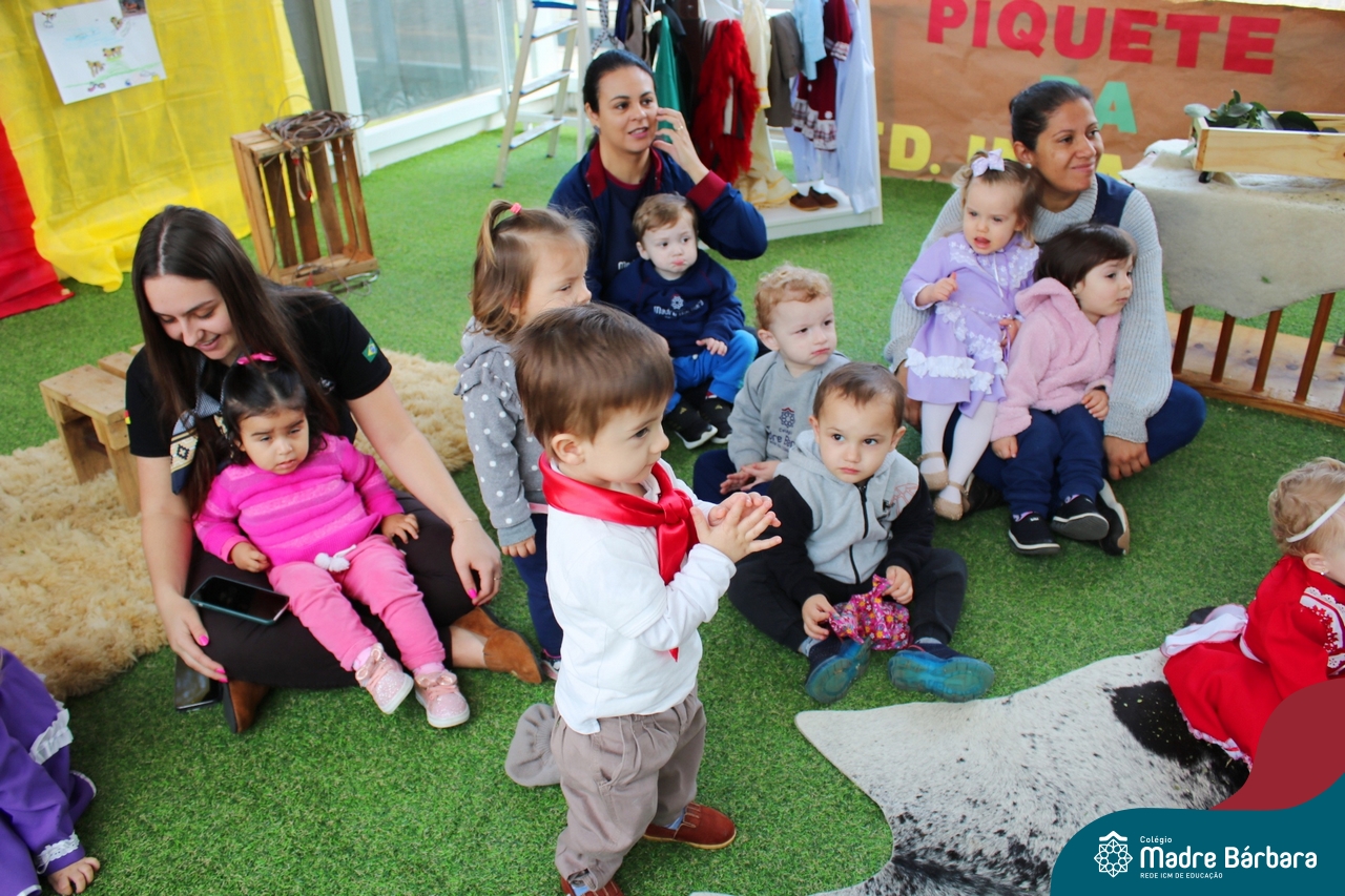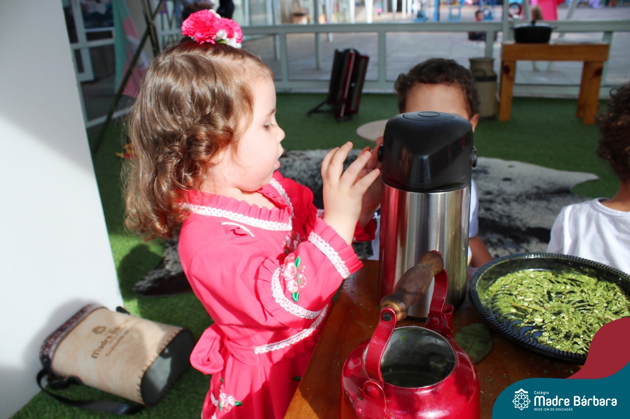 O Piquete da Educação Infantil está sendo um espaço super atrativo nessa Semana Farroupilha do Colégio Madre Bárbara – Rede ICM. As crianças acompanhadas das professoras passeiam no local, fazem chimarrão, conhecem através de símbolos e artigos um pouco da cultura do Rio Grande do Sul e aproveitam para escutar música, dançar e desvendar cada cantinho. É sobre valorizar o Rio Grande e amar a tradição gaúcha! E as nossas prendas e peões estão lindos demais! Confira algumas imagens no Piquete e em outros espaços do Madre!