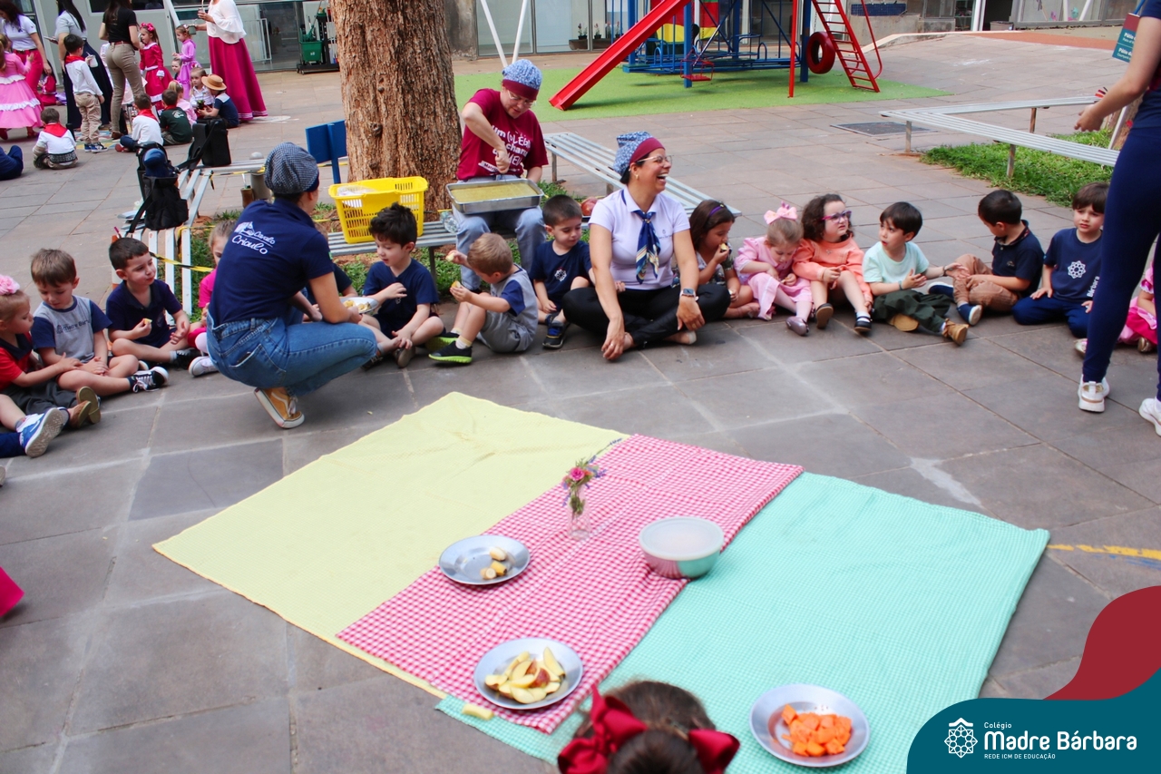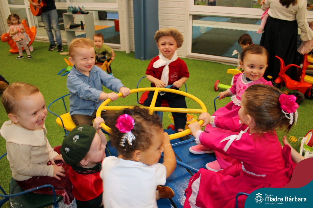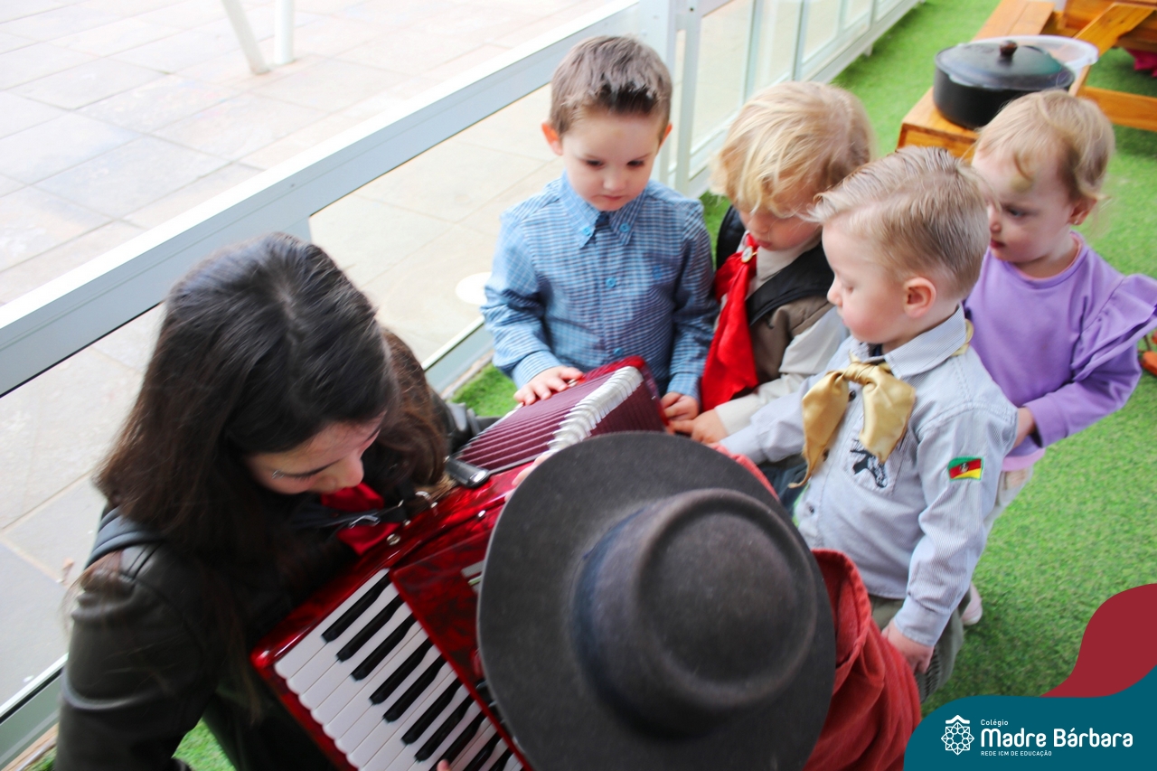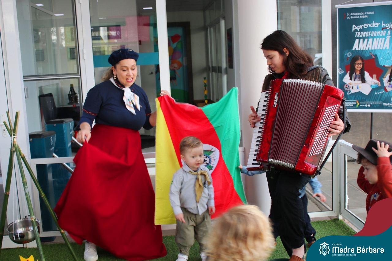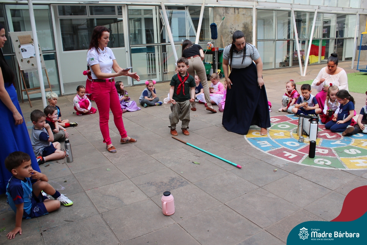 O Piquete da Educação Infantil está sendo um espaço super atrativo nessa Semana Farroupilha do Colégio Madre Bárbara – Rede ICM. As crianças acompanhadas das professoras passeiam no local, fazem chimarrão, conhecem através de símbolos e artigos um pouco da cultura do Rio Grande do Sul e aproveitam para escutar música, dançar e desvendar cada cantinho. É sobre valorizar o Rio Grande e amar a tradição gaúcha! E as nossas prendas e peões estão lindos demais! Confira algumas imagens no Piquete e em outros espaços do Madre!