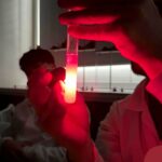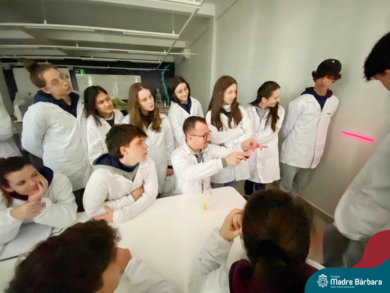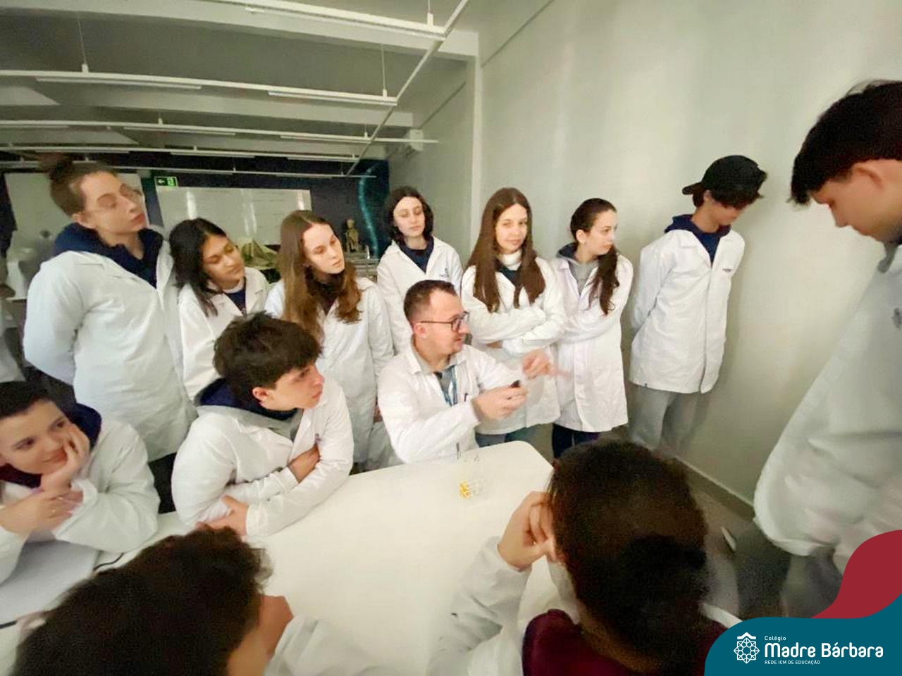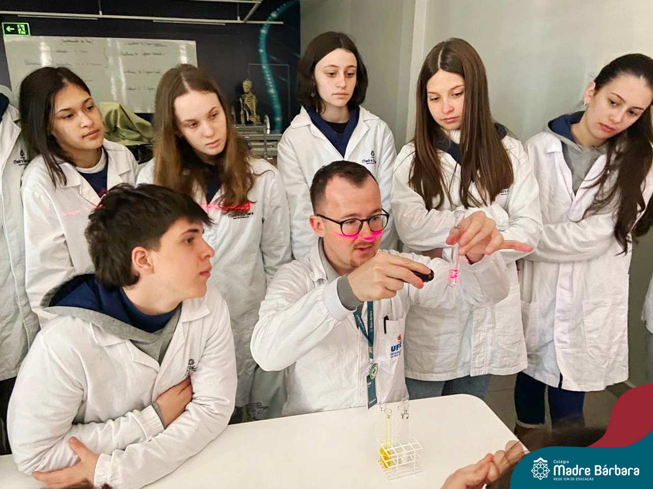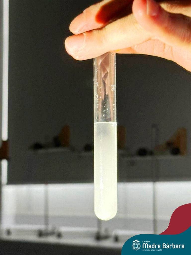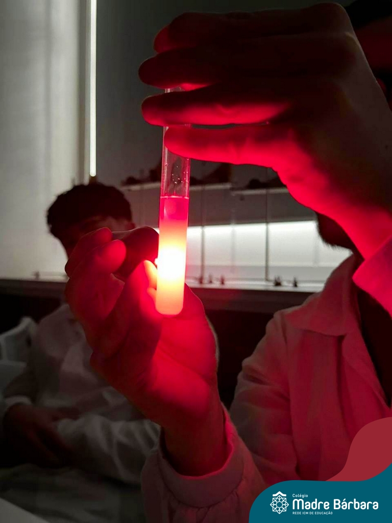Os estudantes das turmas da 1ª série do Novo Ensino Médio responderam a questão simulando esse fenômeno natural, sob o ponto de vista físico-químico do espalhamento de luz, no Laboratório de Ciências da Natureza do Colégio. A proposta compõe uma série de aulas práticas do componente do Núcleo de Estudos em Química e é coordenada pelo professor Aliar Anacleto Jung.