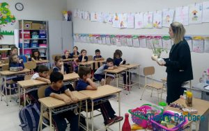 A turma 12 da professora Mara Becker está envolvida com as descobertas de um mundo mais sustentável na pesquisa para a Mostra Científico-Pedagógica. No dia 19 de outubro, no encontro com a nutricionista Carol da Unimed, aprenderam sobre a importância dos alimentos para um crescimento sadio, sobre as tentativas de formar um prato colorido, com todos os alimentos que fornecem energia para estudar e brincar. E além disso, de como se pode fazer o reaproveitamento dos alimentos, como frutas, cascas e folhas, formando pratos saborosos e ricos em nutrientes. Foi uma manhã muito significativa e proveitosa, pois as crianças vivenciaram na prática das compras no mercadinho o que aprenderam e ainda confirmaram que os resíduos orgânicos podem virar adubo e auxiliar numa horta em nossa casa.
