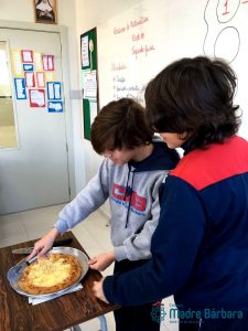 Pensando nisso, na manhã da última segunda-feira (13), os alunos da turma 51, orientados pela professora Dani Guizzo, assaram deliciosas pizzas, que foram divididas em meios, terços, quartos, quintos, sextos, sétimos, oitavos… Foram exploradas diversas possibilidades de divisão, nas quais os alunos puderam perceber equivalências e diferenças entre frações, bem como ter noção de adição e subtração com denominadores iguais. Todo o trabalho foi realizado a partir da exploração das “rodelas” que compõe o Álbum das Frações. Certamente, foi um momento de aprendizagem muito saboroso!