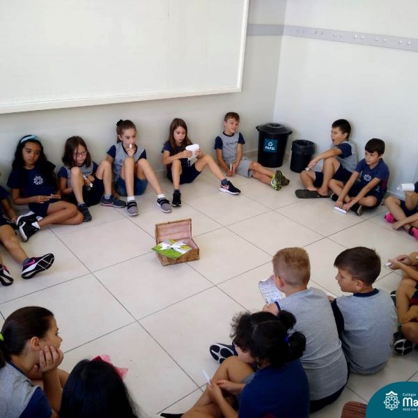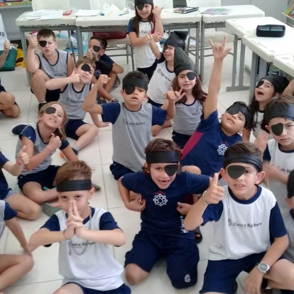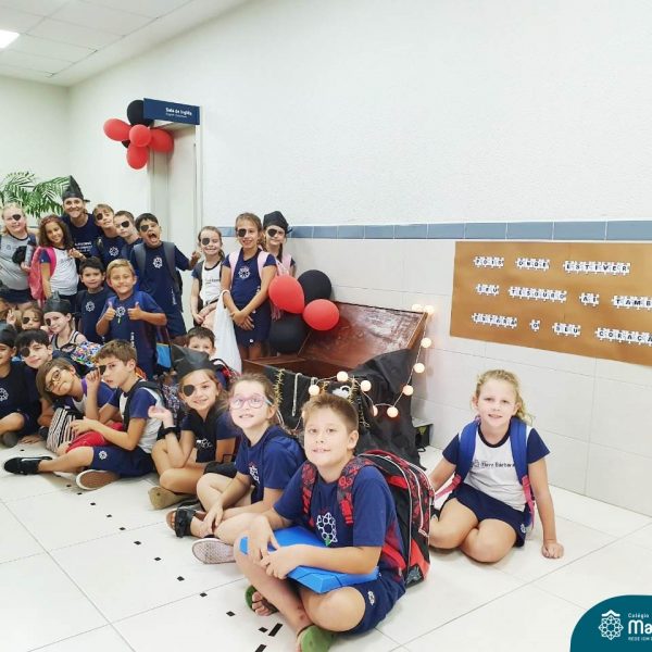 Na primeira semana de aula (17.02 a 20.02) os alunos dos segundos e terceiros anos do Ensino Fundamental – Anos Iniciais, foram recebidos com o tema: Caça ao Tesouro. Muitas atividades foram lançadas com suspense e mistério, aguçando a curiosidade dos alunos, entre elas: Papagaio da fala, caracterização de Piratas, explosão de ideias, Caça ao Tesouro, reflexões, dinâmicas, cápsula do Tempo e contação da história ” Qual é a cor do amor?”. Para fechar a semana, os alunos receberam a chave do tesouro e refletiram sobre os sentimentos guardados. As crianças puderam se integrar, socializar, aprender, brincar, fantasiar e juntos solucionar os enigmas, trabalhando assim os hábitos do Programa Líder em Mim (OLEM).