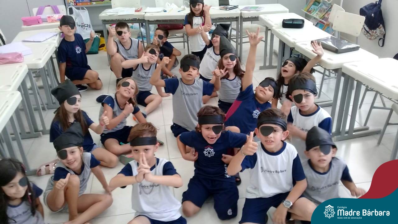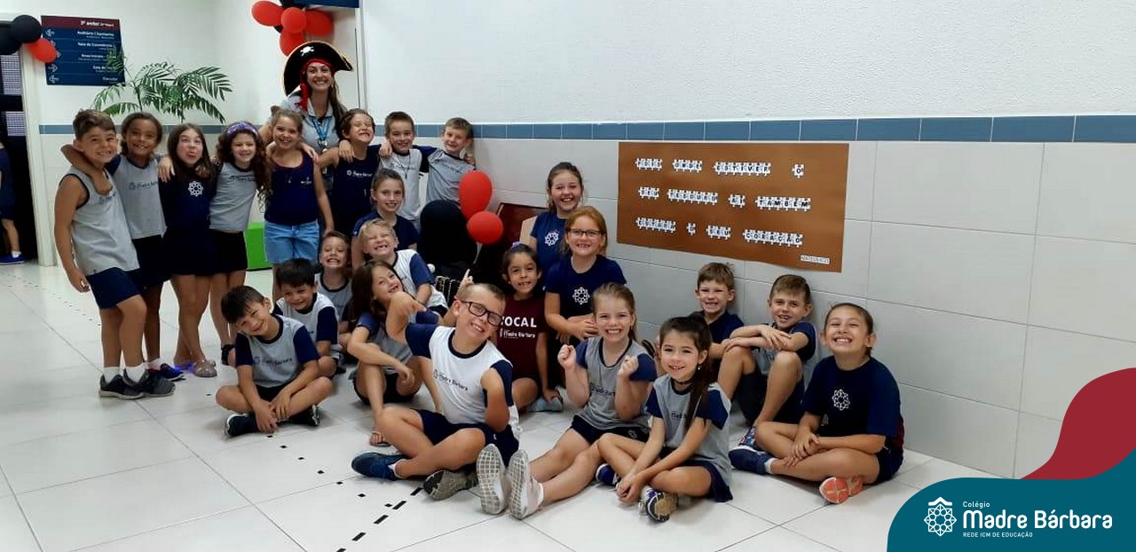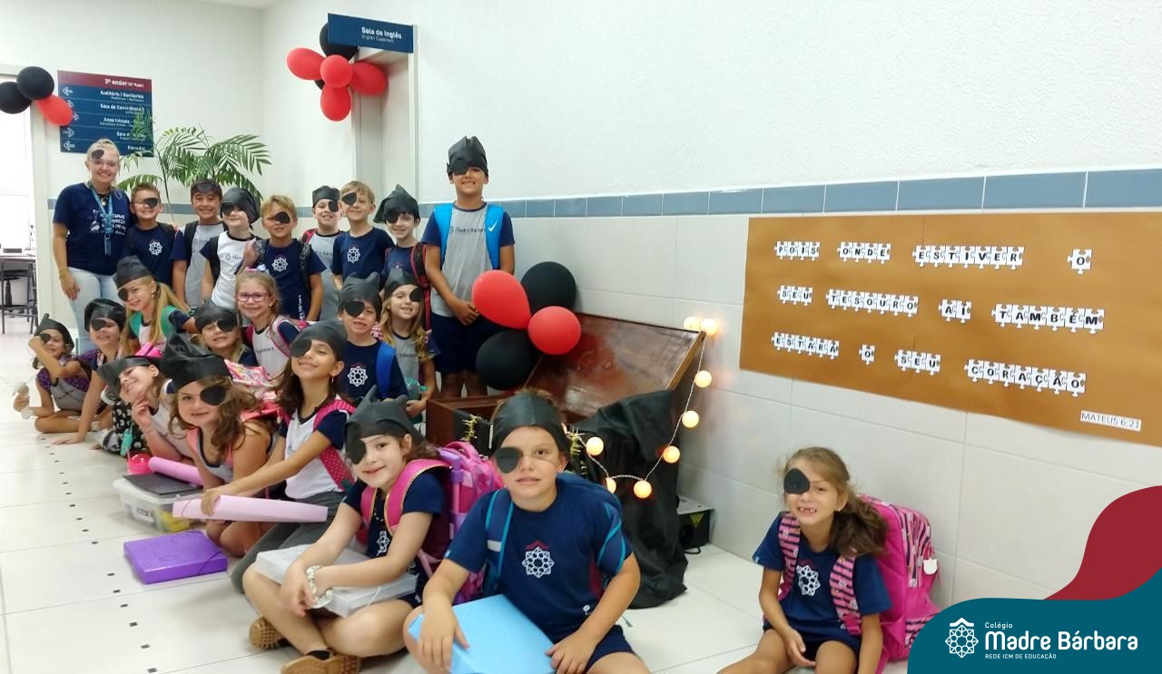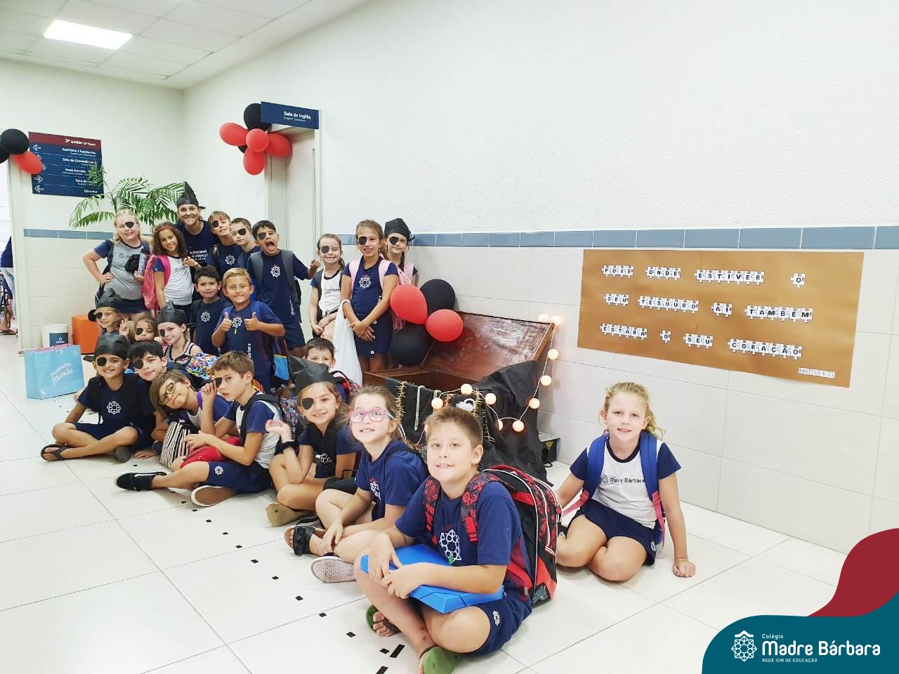 Na primeira semana de aula (17.02 a 20.02) os alunos dos segundos e terceiros anos do Ensino Fundamental – Anos Iniciais, foram recebidos com o tema: Caça ao Tesouro. Muitas atividades foram lançadas com suspense e mistério, aguçando a curiosidade dos alunos, entre elas: Papagaio da fala, caracterização de Piratas, explosão de ideias, Caça ao Tesouro, reflexões, dinâmicas, cápsula do Tempo e contação da história ” Qual é a cor do amor?”. Para fechar a semana, os alunos receberam a chave do tesouro e refletiram sobre os sentimentos guardados. As crianças puderam se integrar, socializar, aprender, brincar, fantasiar e juntos solucionar os enigmas, trabalhando assim os hábitos do Programa Líder em Mim (OLEM).