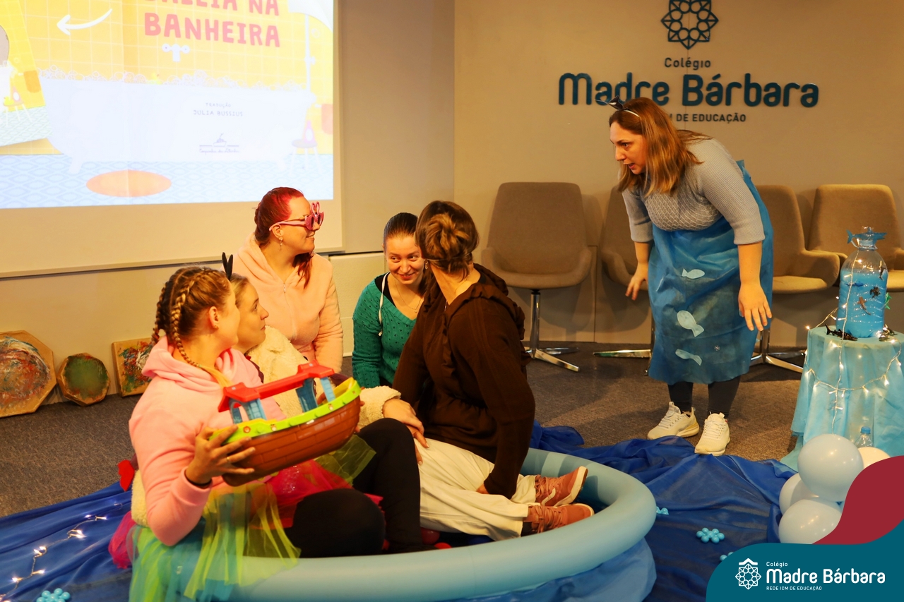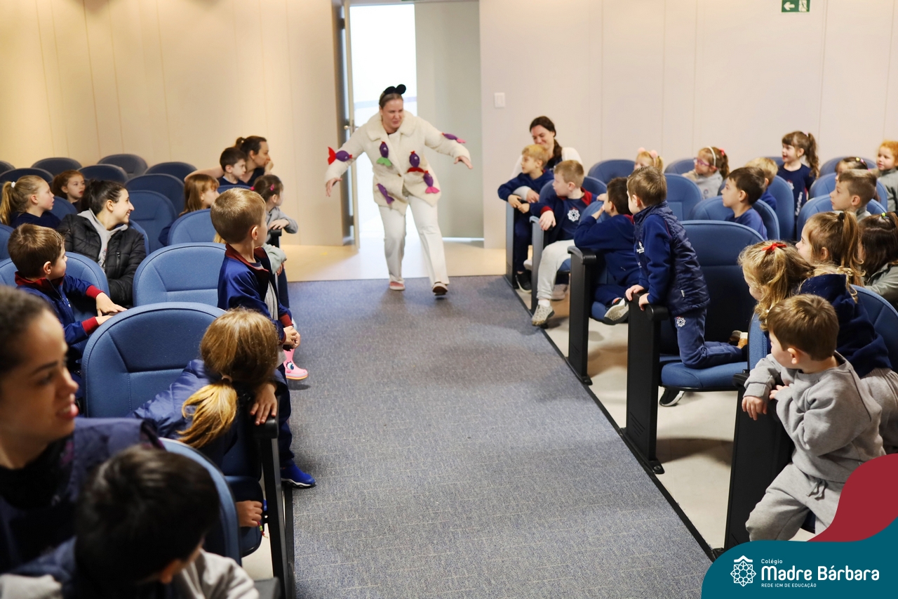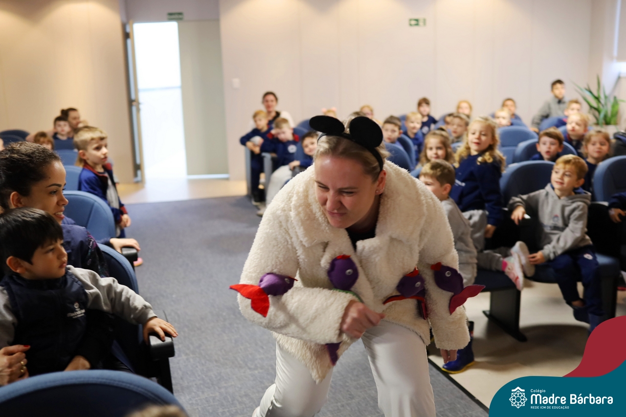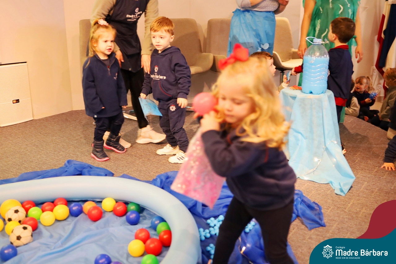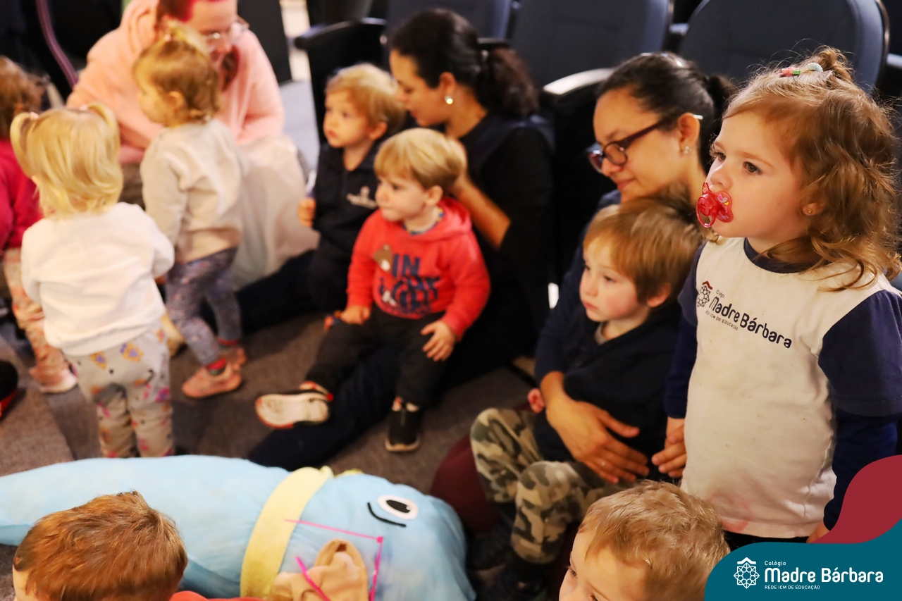 Hoje (17.07) pela manhã as turmas da Educação Infantil do Colégio Madre Bárbara assistiram o teatro que envolveu a história “A Baleia na Banheira”, da autora Susane Straber. A história foi dramatizada por um grupo de professoras e encantou às crianças.