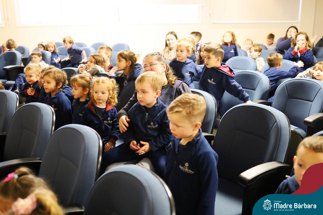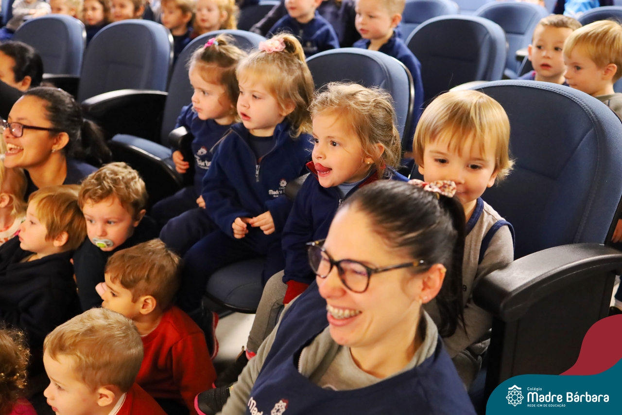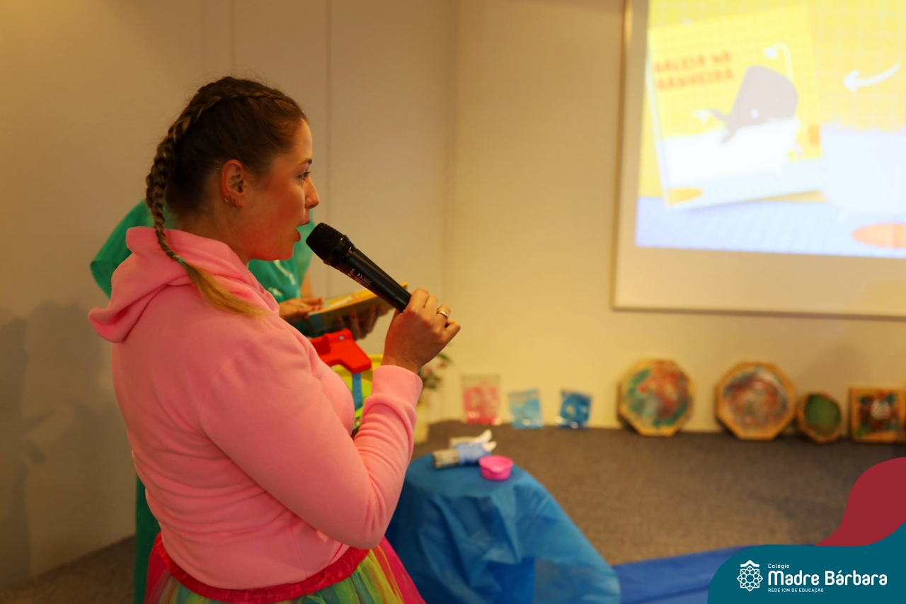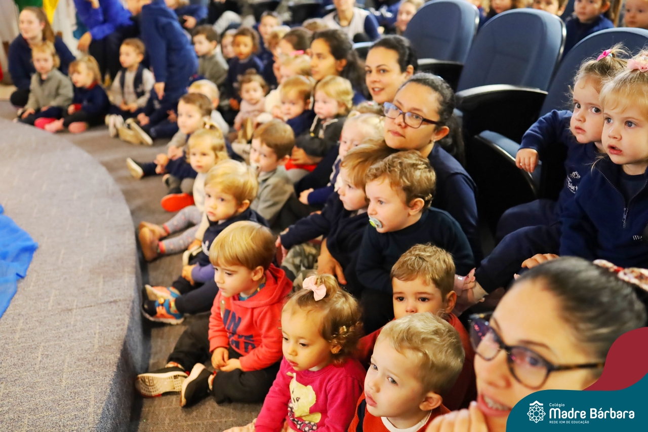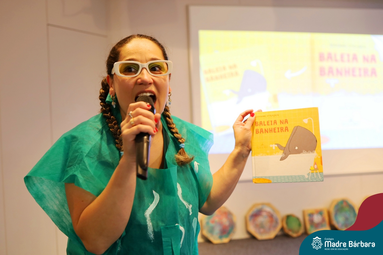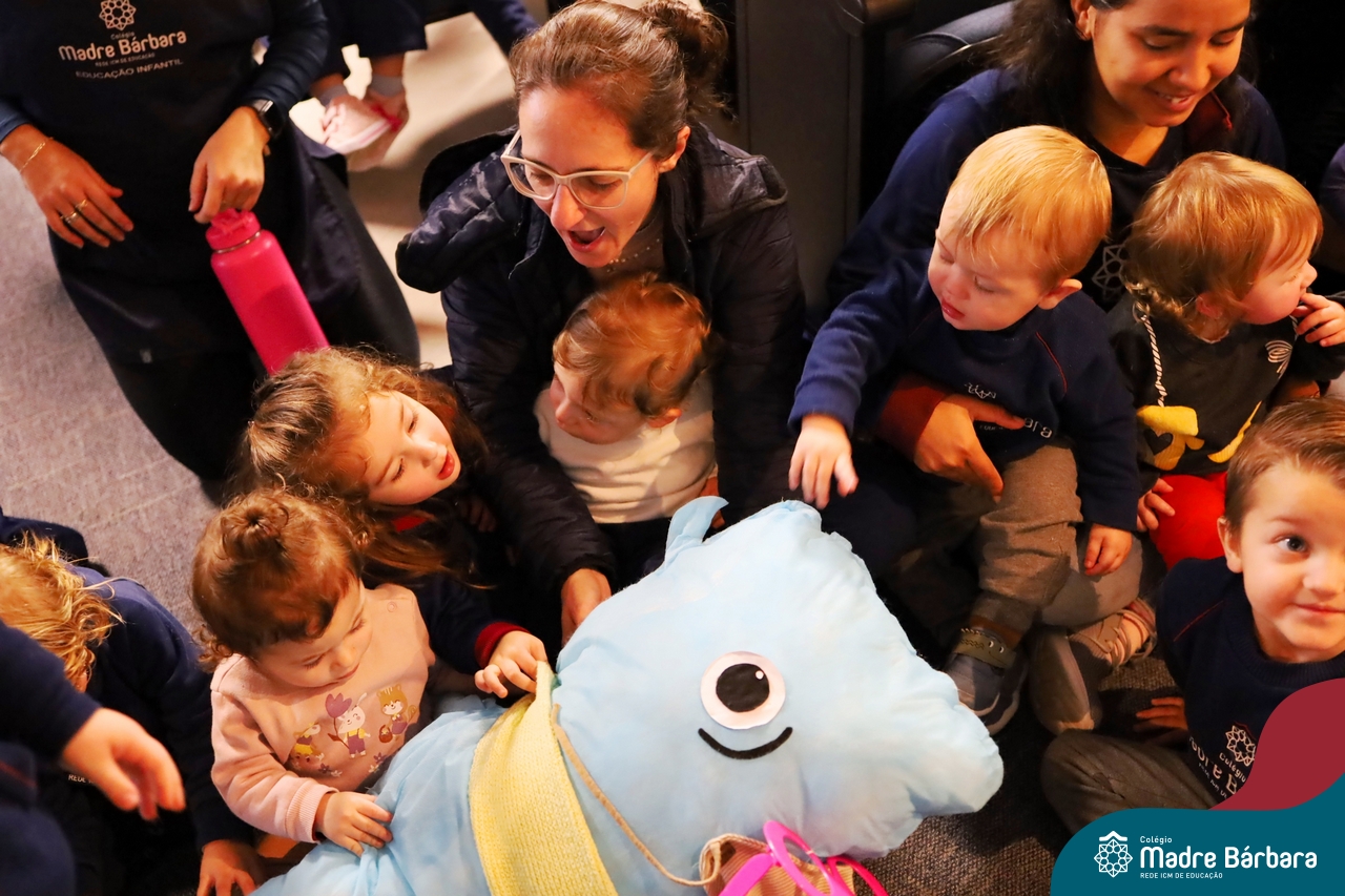 Hoje (17.07) pela manhã as turmas da Educação Infantil do Colégio Madre Bárbara assistiram o teatro que envolveu a história “A Baleia na Banheira”, da autora Susane Straber. A história foi dramatizada por um grupo de professoras e encantou às crianças.