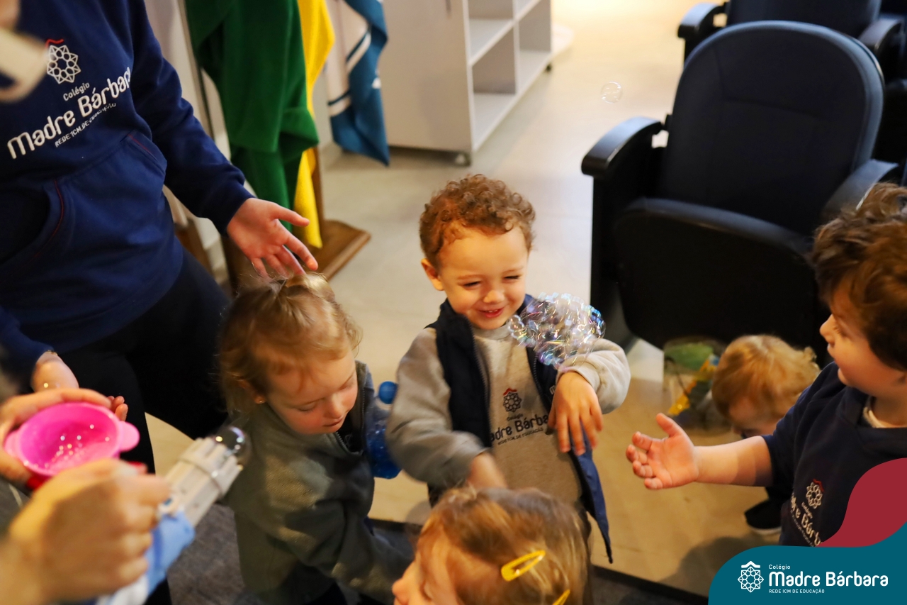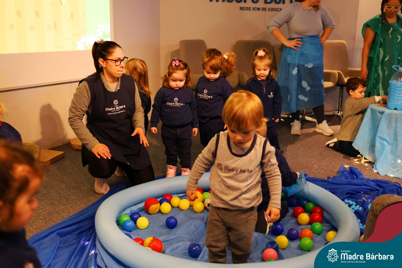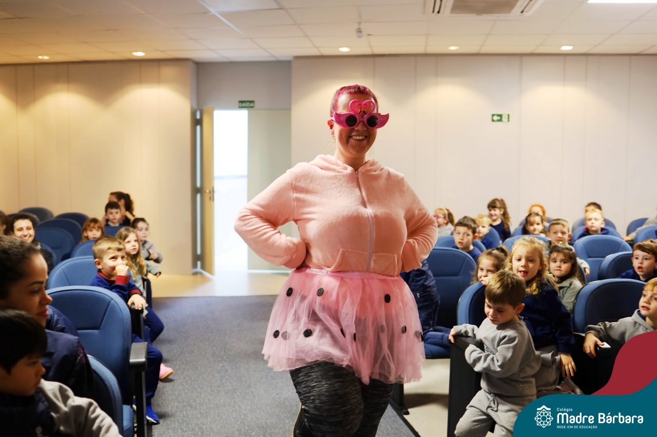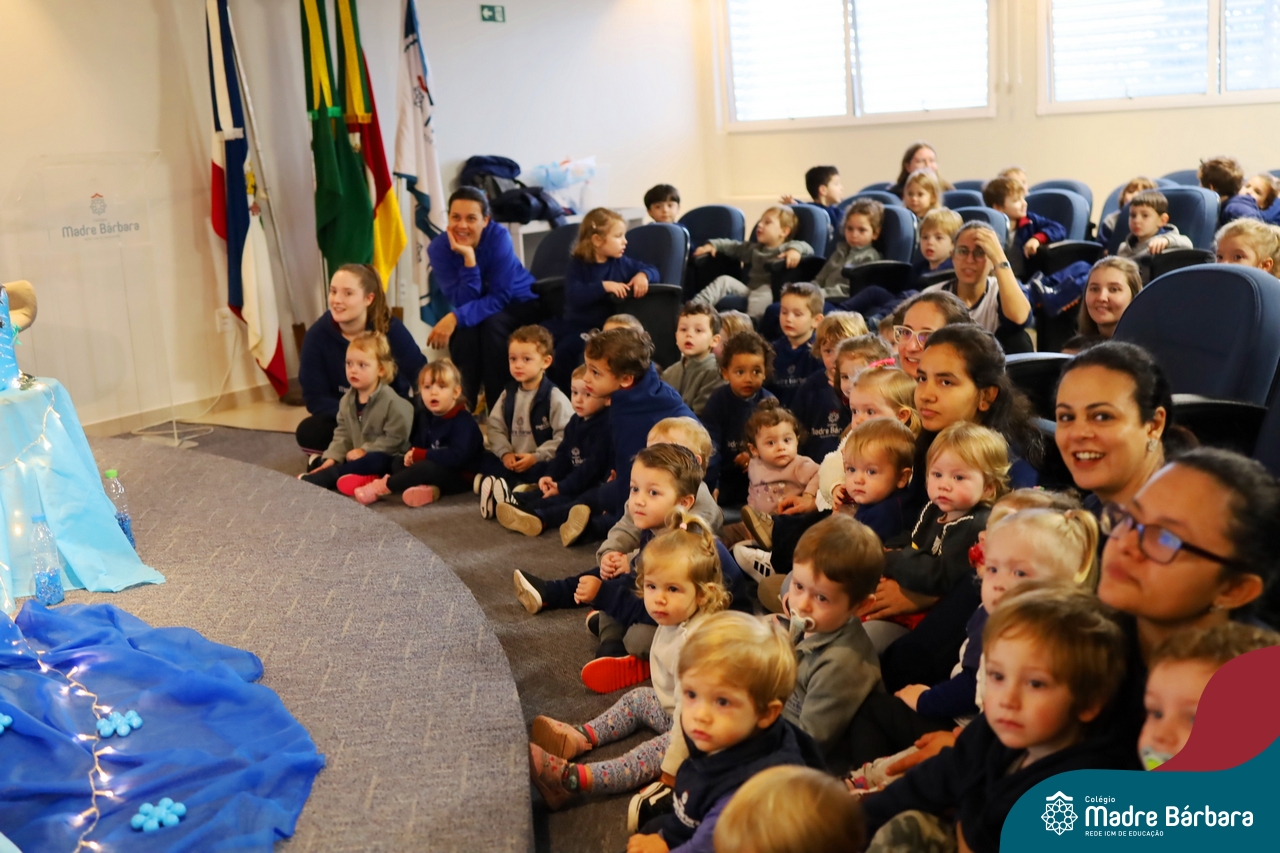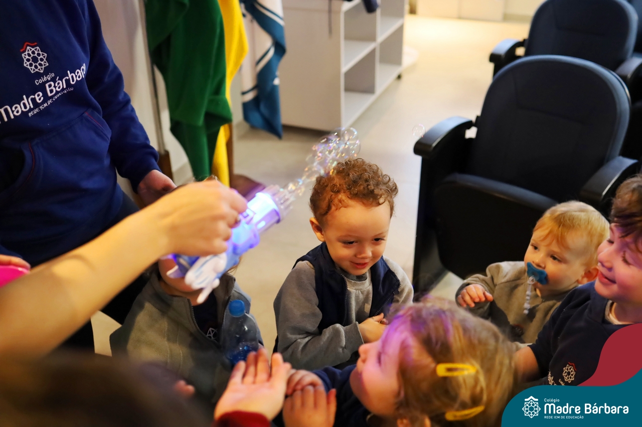 Hoje (17.07) pela manhã as turmas da Educação Infantil do Colégio Madre Bárbara assistiram o teatro que envolveu a história “A Baleia na Banheira”, da autora Susane Straber. A história foi dramatizada por um grupo de professoras e encantou às crianças.