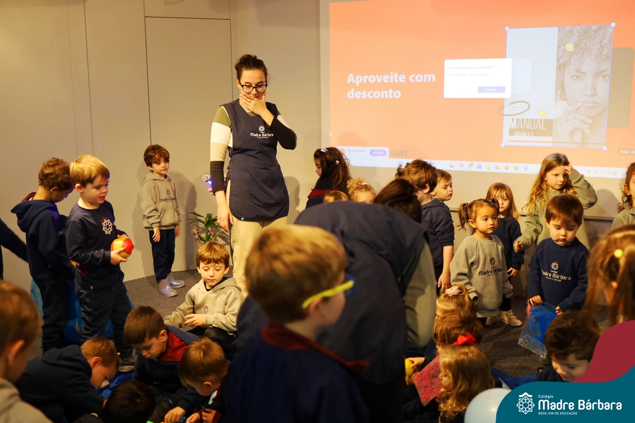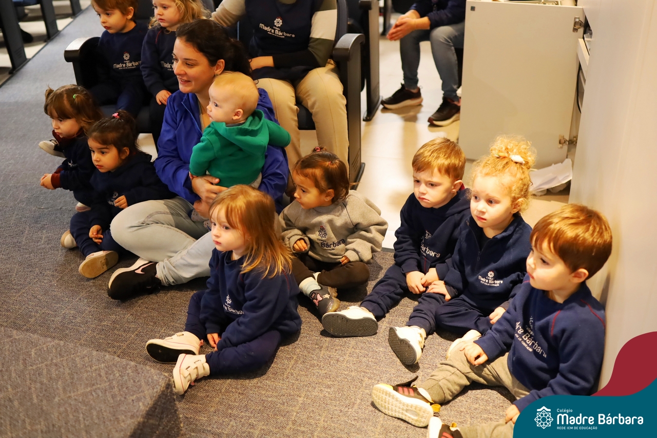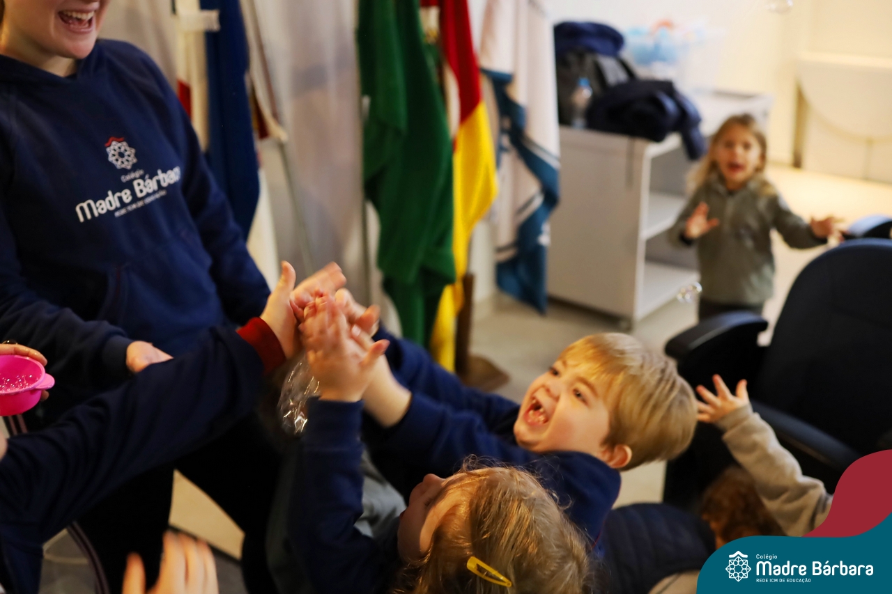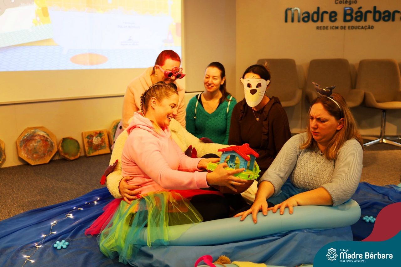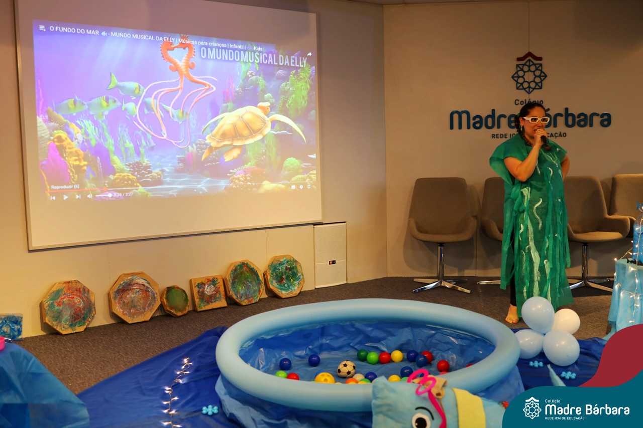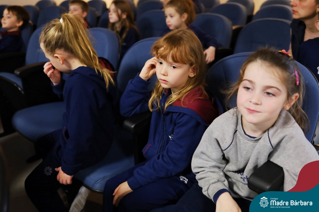 Hoje (17.07) pela manhã as turmas da Educação Infantil do Colégio Madre Bárbara assistiram o teatro que envolveu a história “A Baleia na Banheira”, da autora Susane Straber. A história foi dramatizada por um grupo de professoras e encantou às crianças.