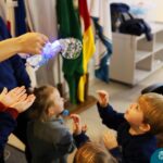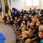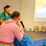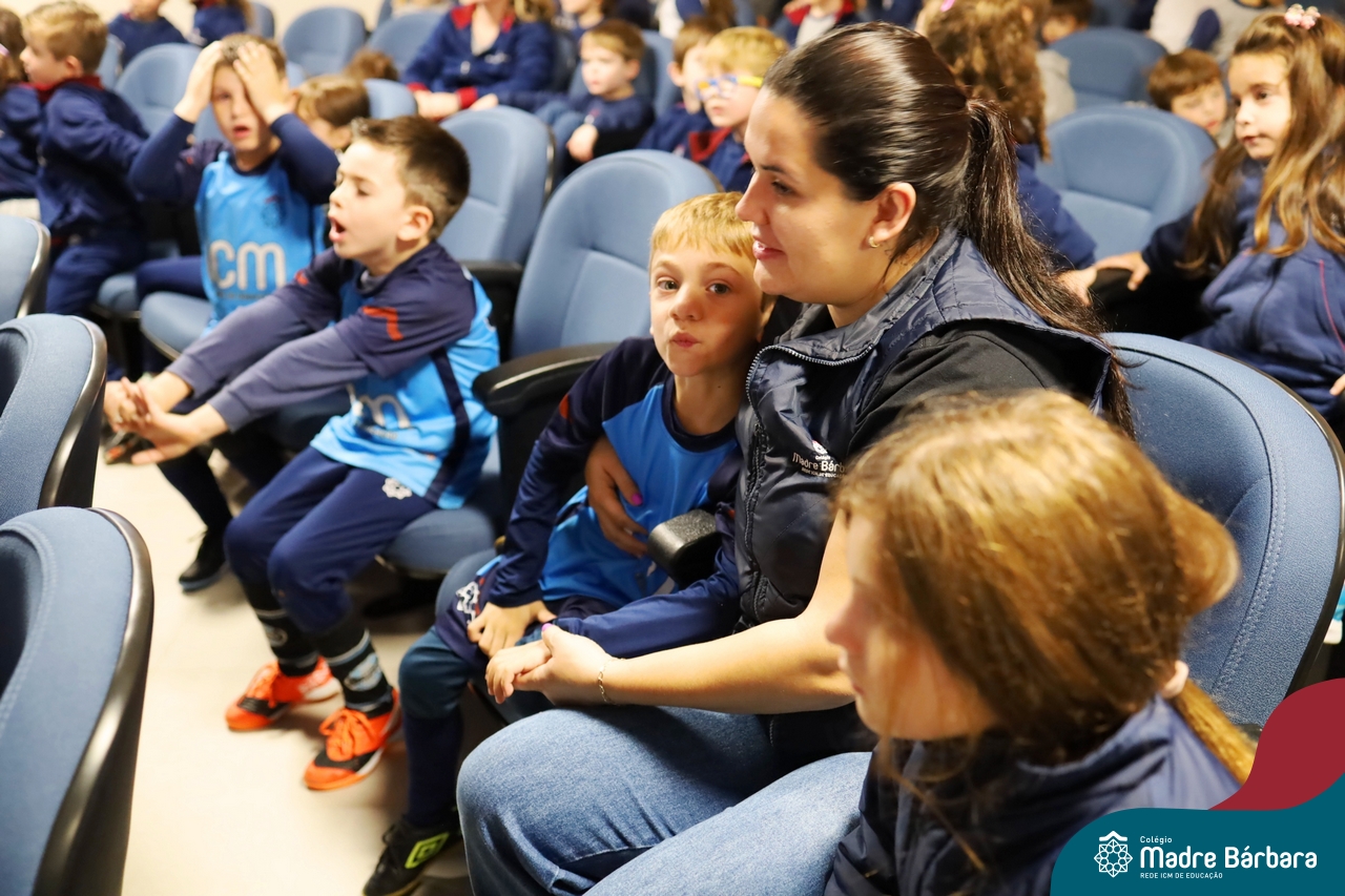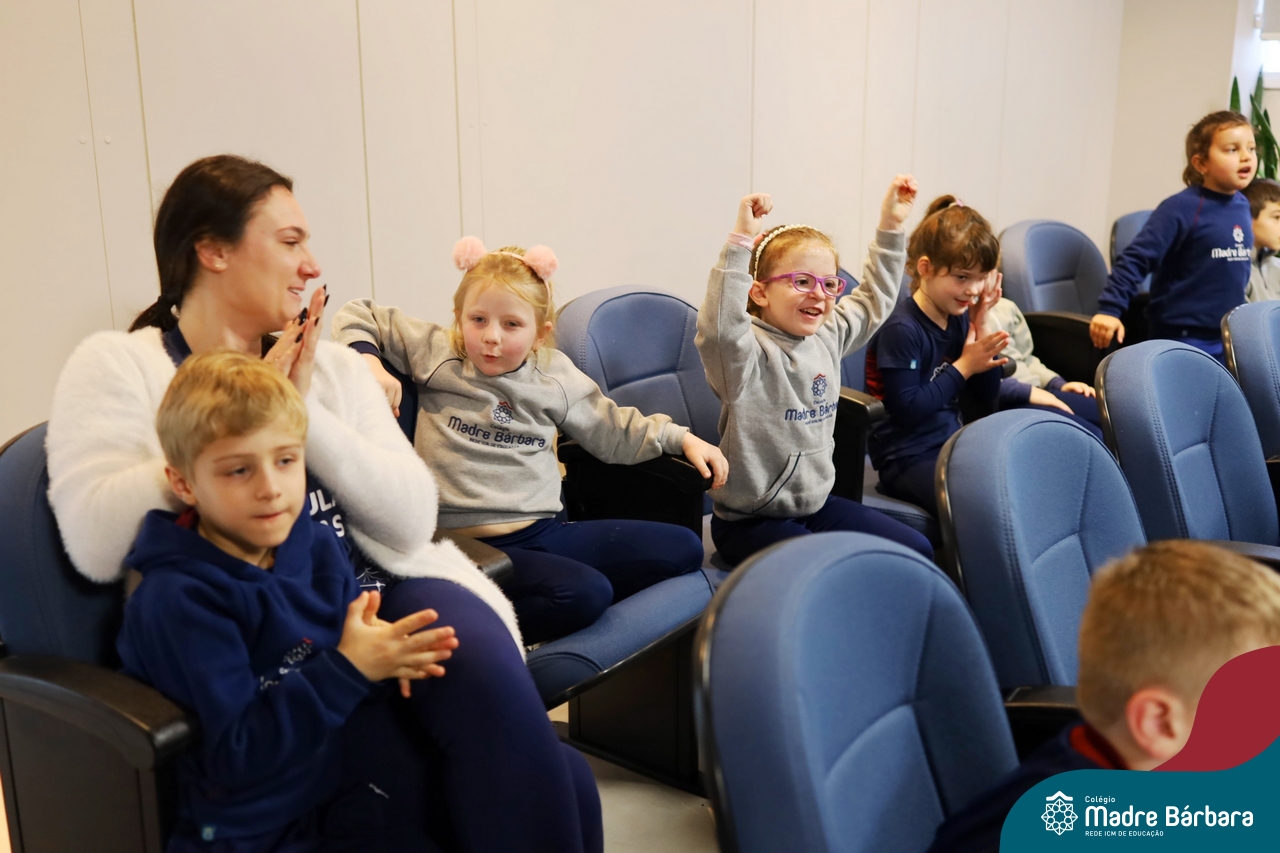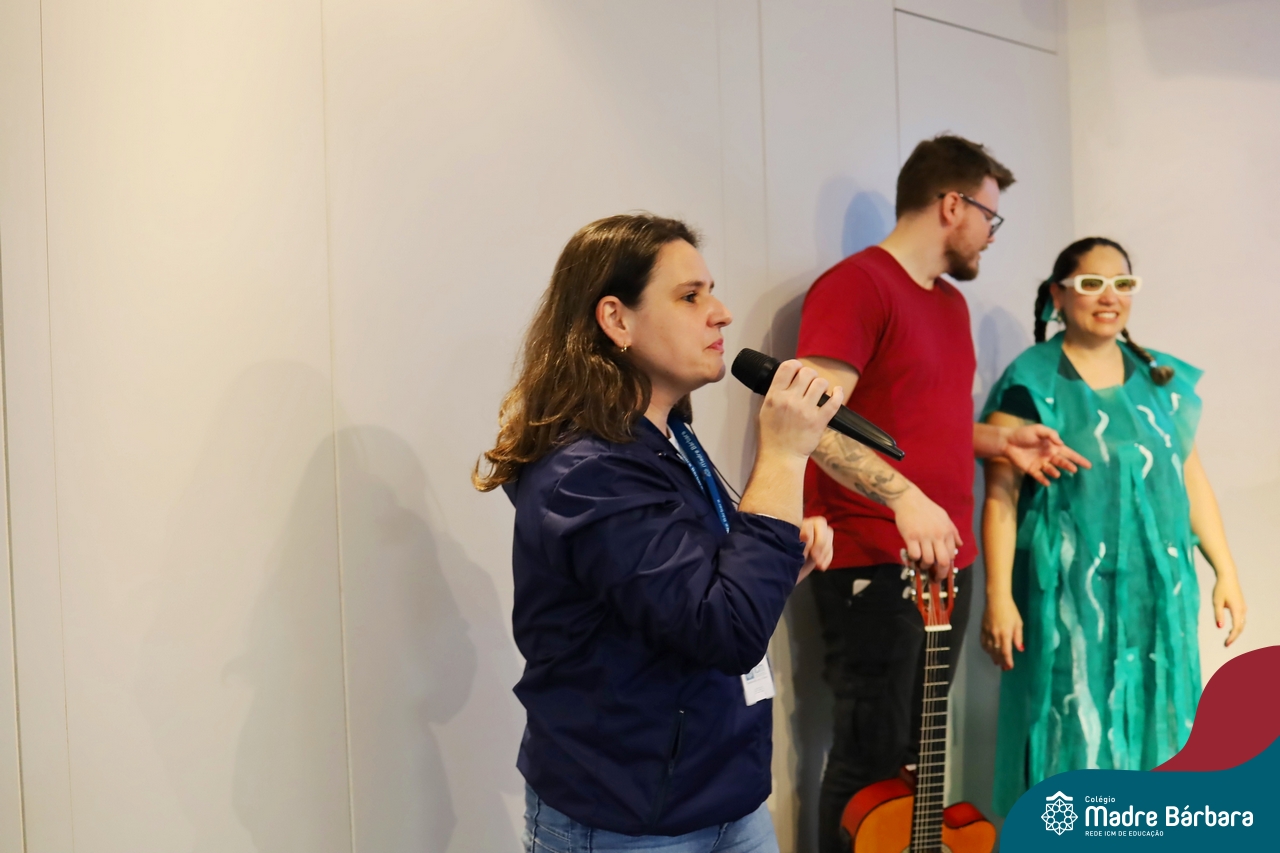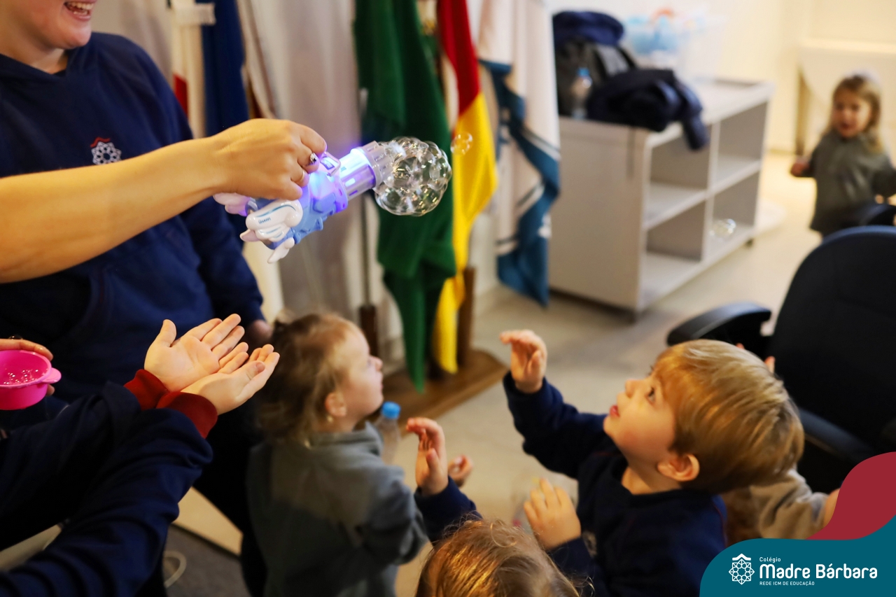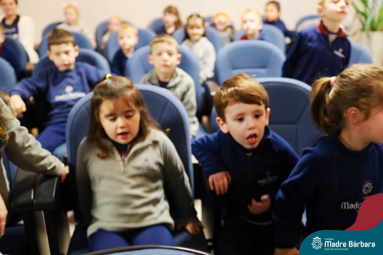 Hoje (17.07) pela manhã as turmas da Educação Infantil do Colégio Madre Bárbara assistiram o teatro que envolveu a história “A Baleia na Banheira”, da autora Susane Straber. A história foi dramatizada por um grupo de professoras e encantou às crianças.