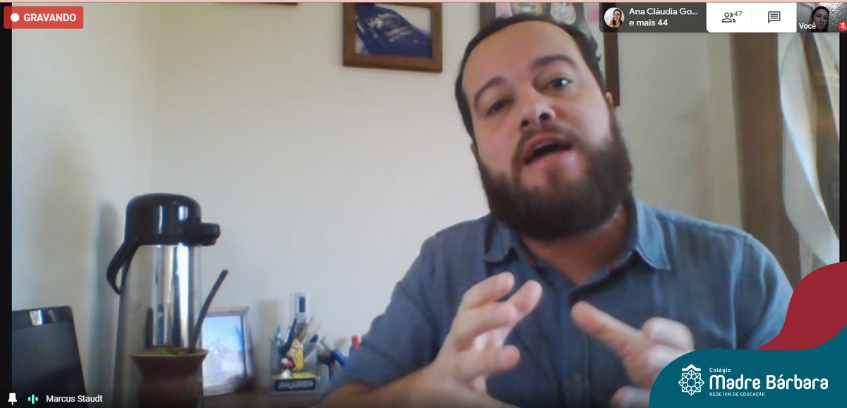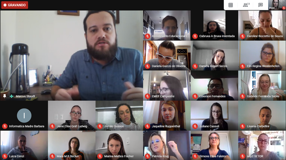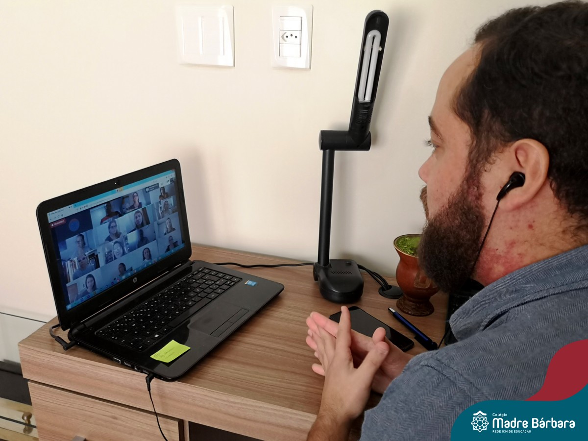 Na manhã deste sábado (25) os professores do Colégio Madre Bárbara – Rede ICM participaram de maneira remota, através do Google Meet da Capacitação “Como usar o vídeo enquanto recurso para o ensino” com o jornalista e professor Marcus Staudt. As palestras foram divididas pelos níveis de ensino: Educação Infantil, Anos Iniciais e Anos Finais/Ensino Médio. Entre os assuntos abordados, estiveram questões ligadas a produção audiovisual, orientações quanto às formas e os conteúdos a serem utilizados, desenvolvimento de habilidades frente às novas tecnologias, assim como o uso de plataformas e dispositivos para auxiliarem nas produções, respeitando as especificidades de cada nível de ensino.