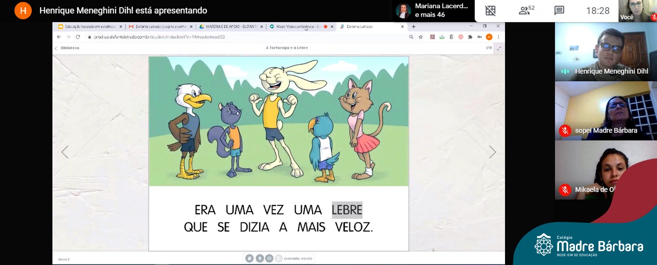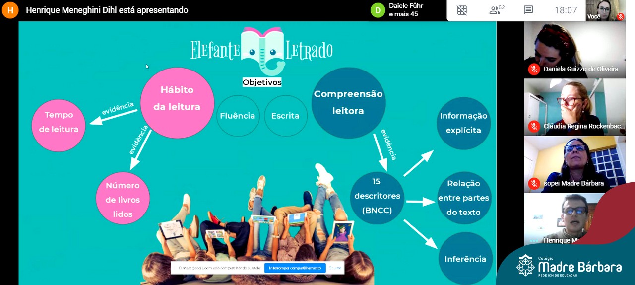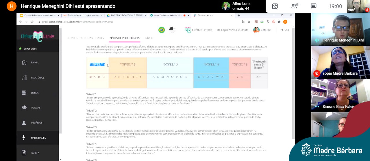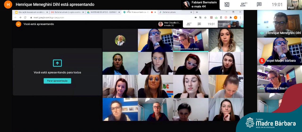 A Rede ICM de Educação e Assistência Social firmou parceria com a plataforma Elefante Letrado, que desenvolve o hábito da leitura das crianças de uma forma divertida e inovadora e ainda acompanha o desempenho das turmas em tempo real. Para consolidar, no fim de tarde dessa segunda-feira (03.08) ocorreu uma capacitação sobre a plataforma com coordenação pedagógica, professores e monitores da Educação Infantil e Anos Iniciais.
