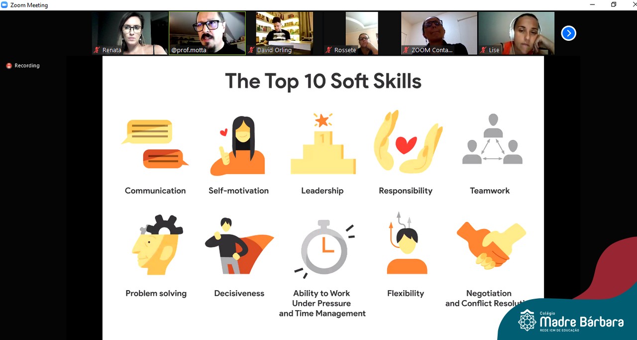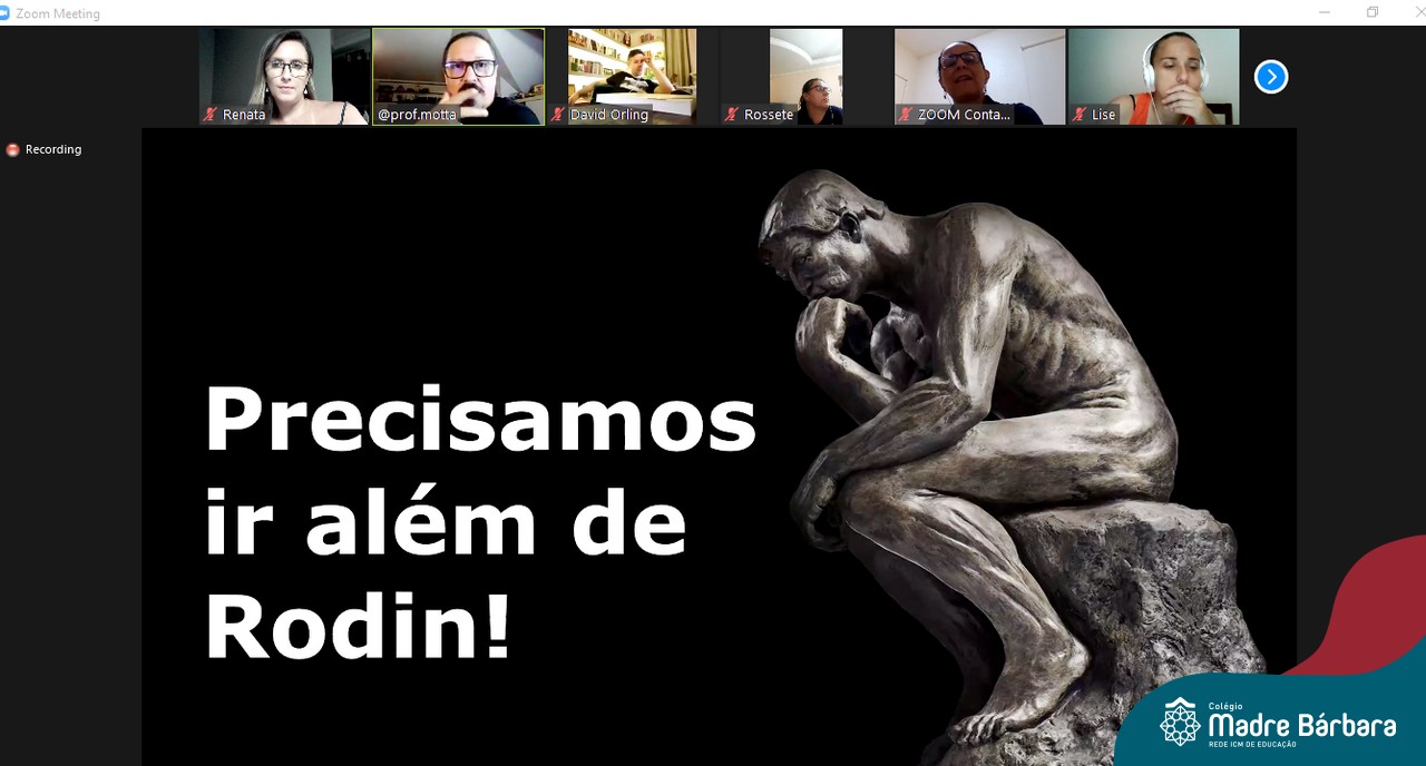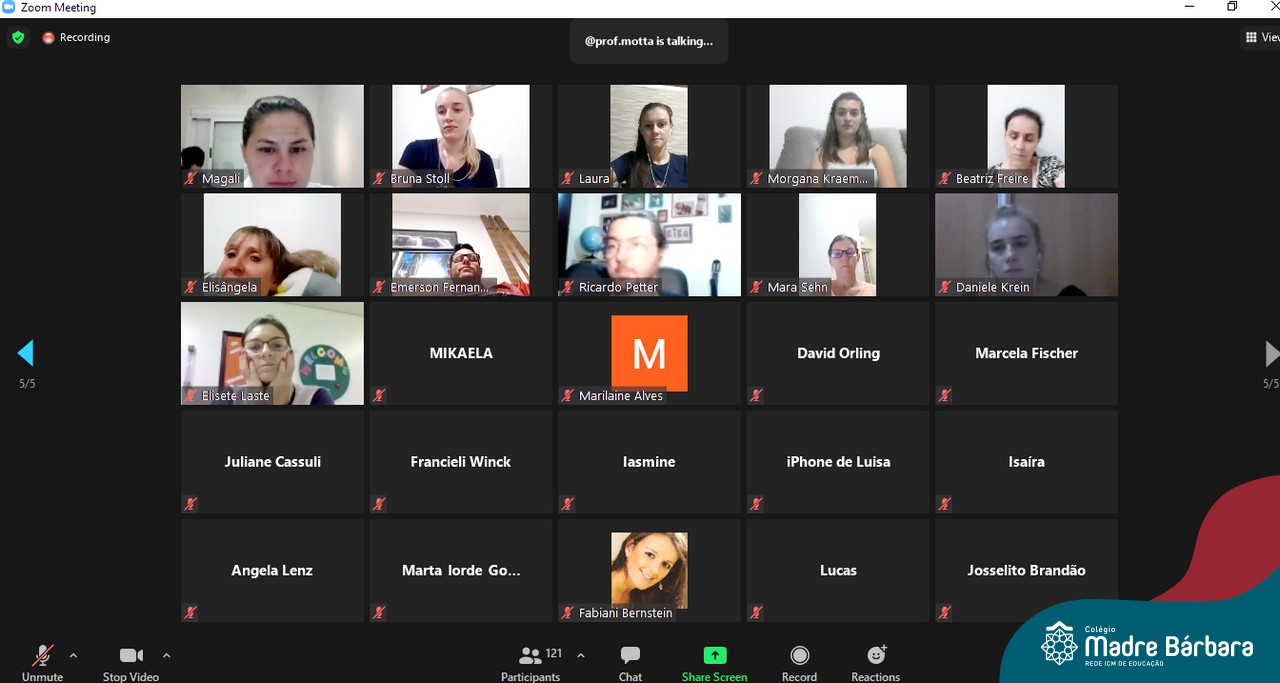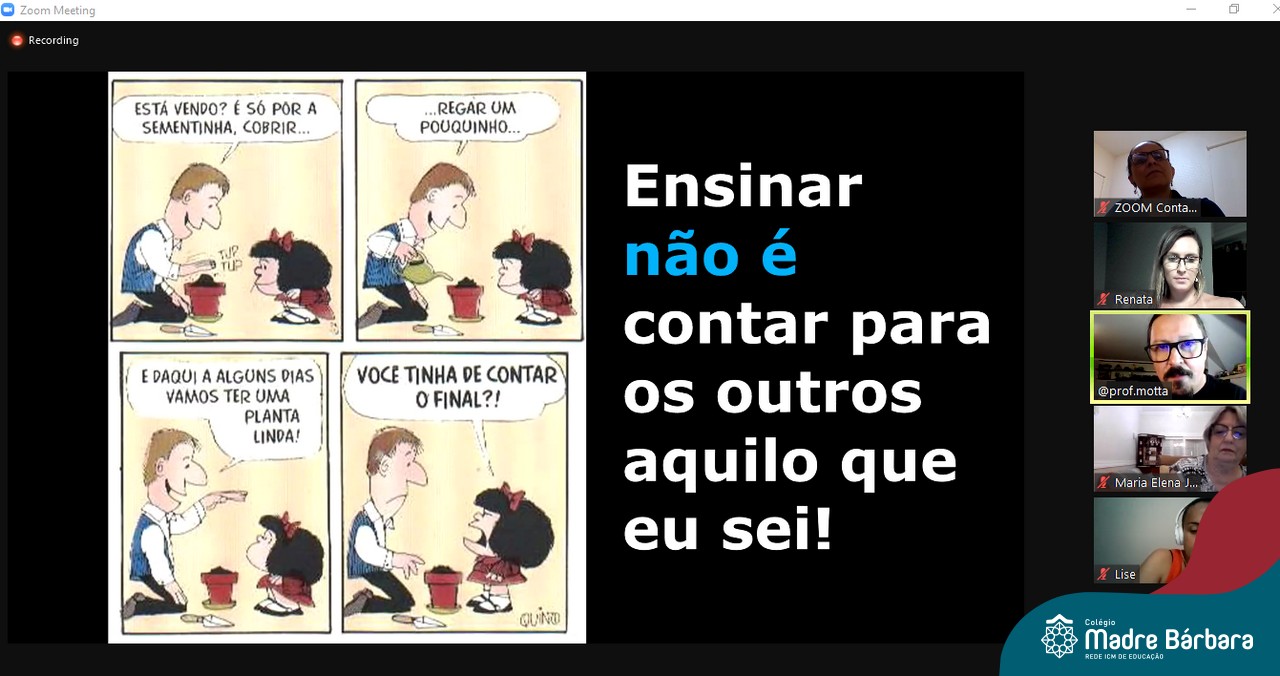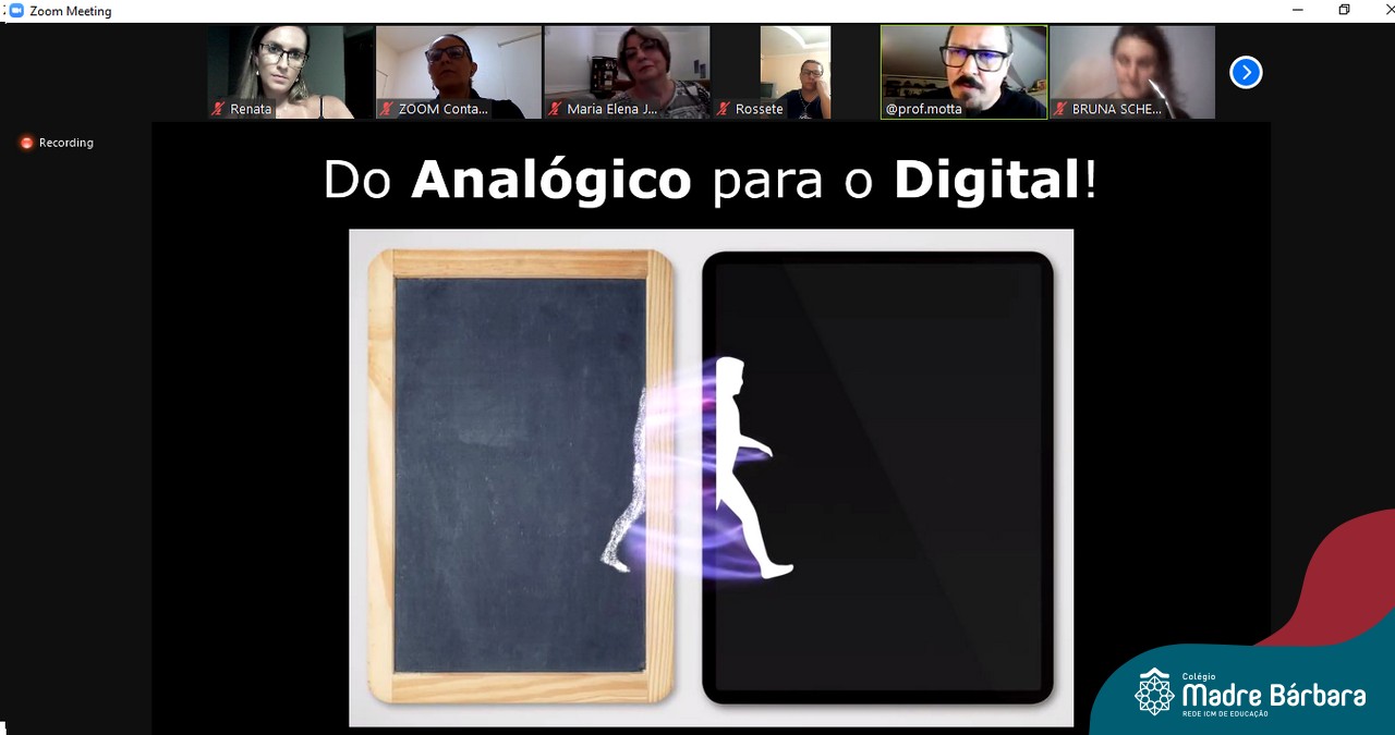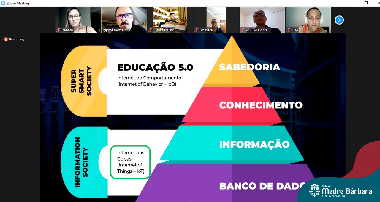 Na noite de segunda-feira (01) os professores de todos os níveis de ensino do Colégio Madre Bárbara – Rede ICM participaram do encontro com o professor José Motta Filho sobre “A educação para um mundo exponencial”. A palestra ocorreu através da plataforma Zoom com quase três horas de duração e foi o encerramento da Jornada Pedagógica da instituição.