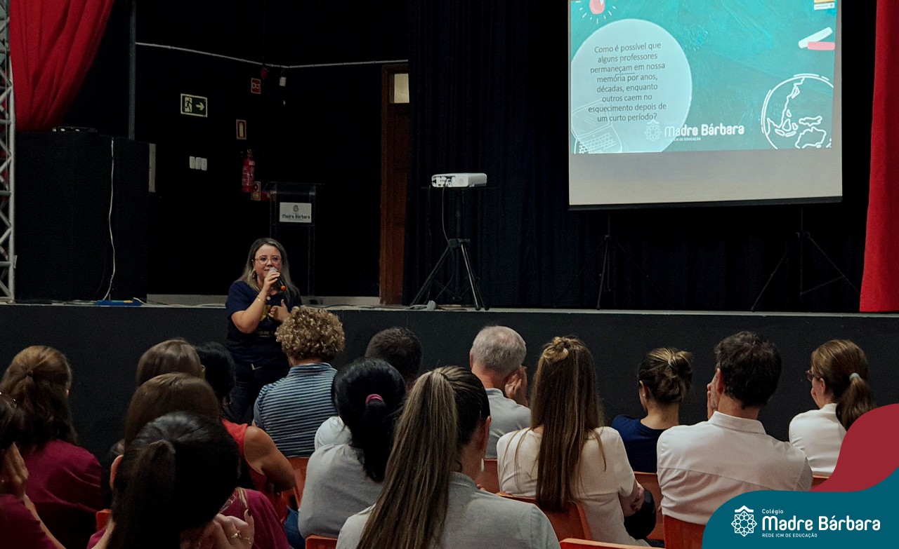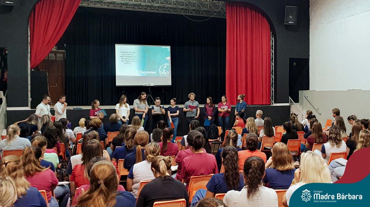 Na noite de segunda-feira (06.03) todos os professores e monitores do Colégio Madre Bárbara – Rede ICM se reuniram para participar do Seminário Pedagógico que tem como foco central o livro “10 Princípios para a Aprendizagem Visível”. Como forma de provocar a discussão uma questão central foi lançada: “Qual é o(a) professor(a) que mais marcou a sua vida acadêmica? Algum professor que tenha sido memorável para você? Quais eram as características desse(a) professor(a)?” O livro dos autores: John Hattie e Klaus Zierer, será trabalhado durante o primeiro semestre de 2023 pelos educadores, com culminância na reunião pedagógica do dia 07 de agosto, onde todo o grupo será reunido novamente. Até lá o livro será estudo em cada curso.